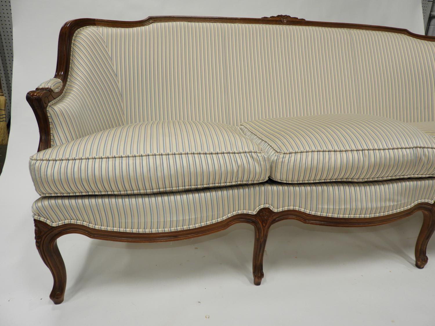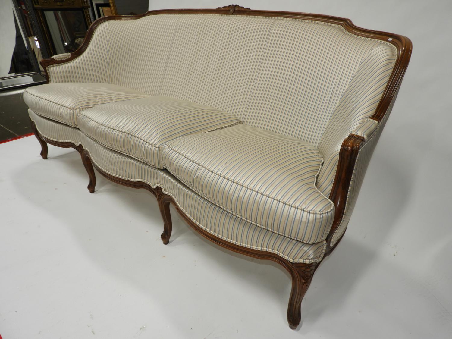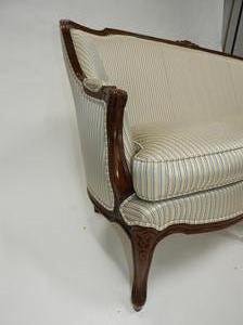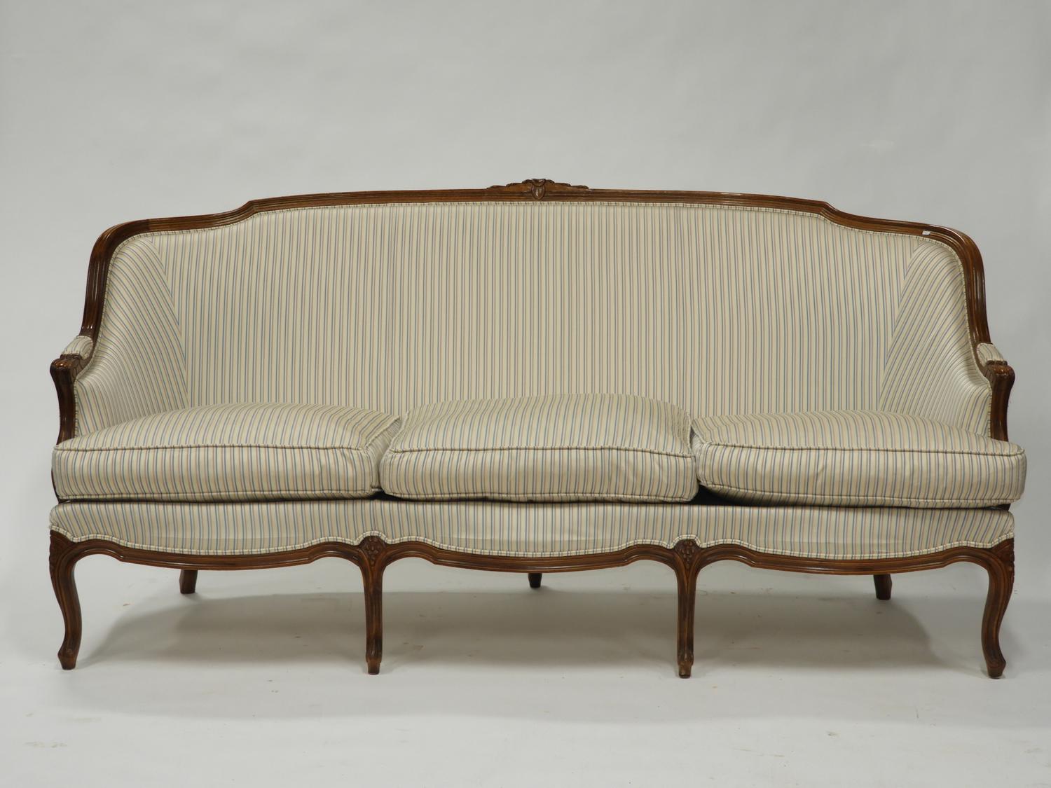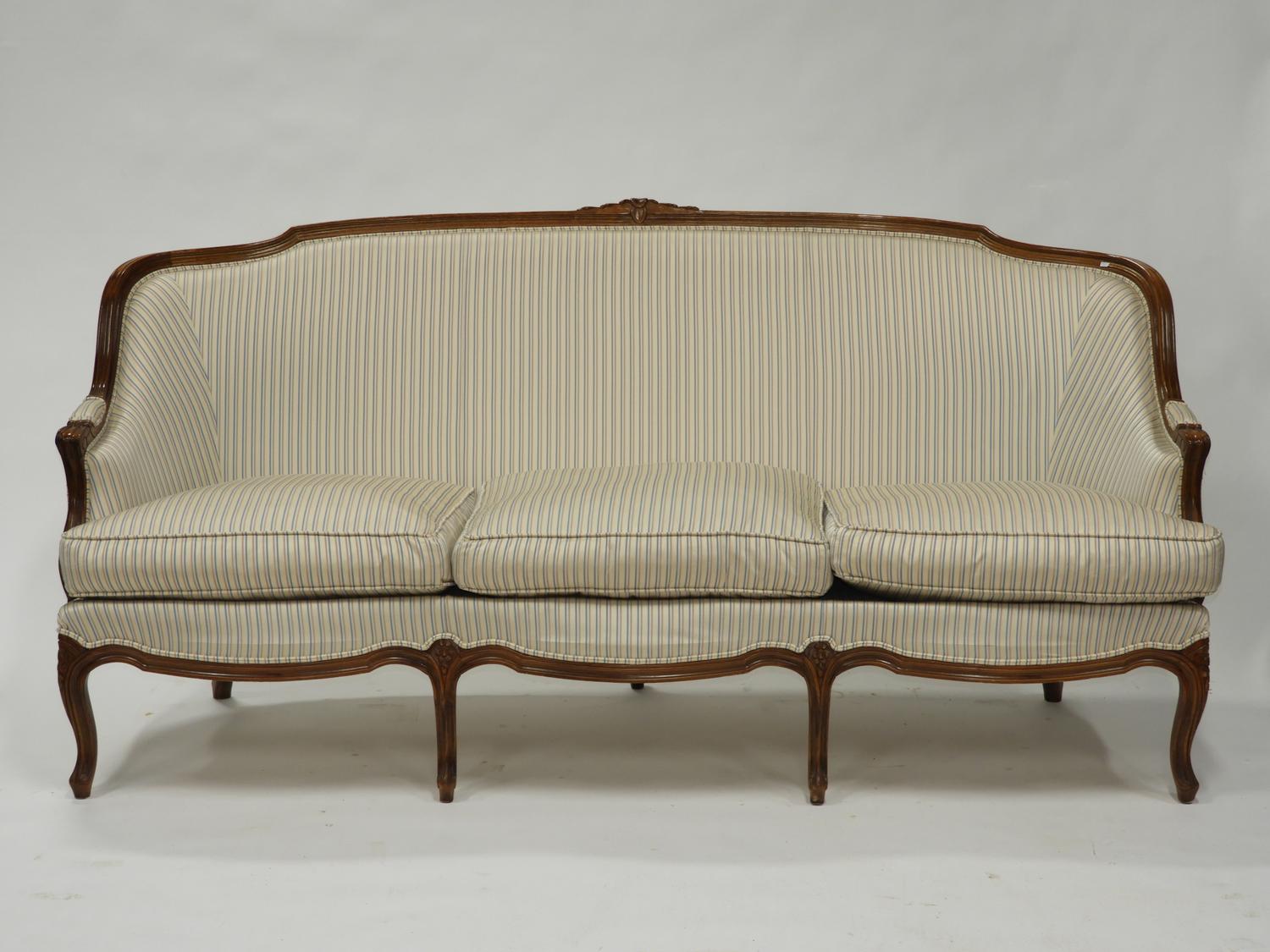 louis xv-style upholstered beechwood settee, 20th century, 34" x 76" x 34"