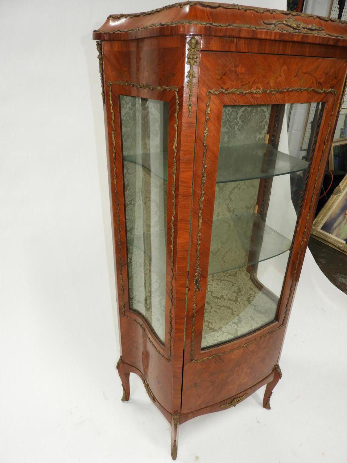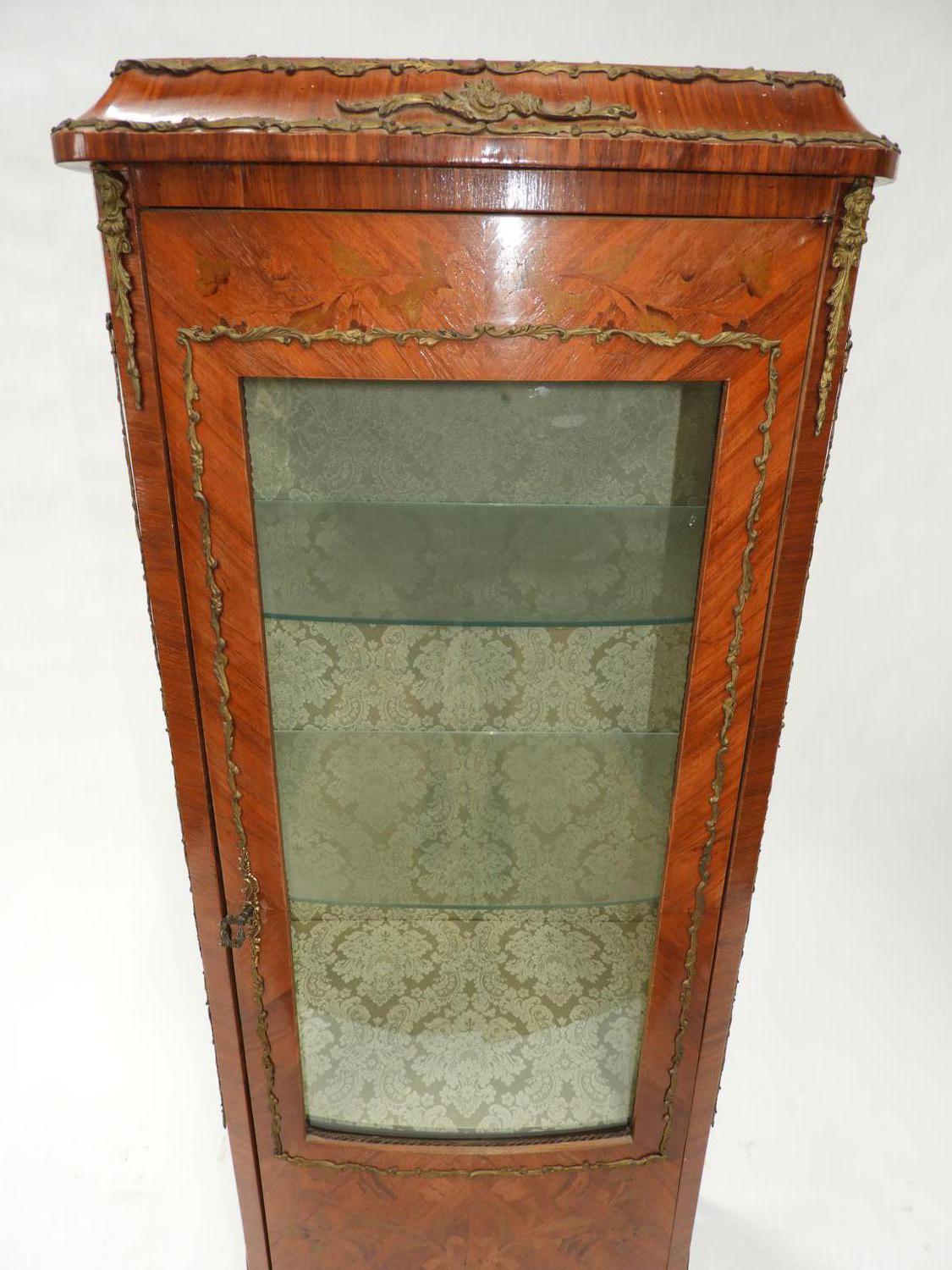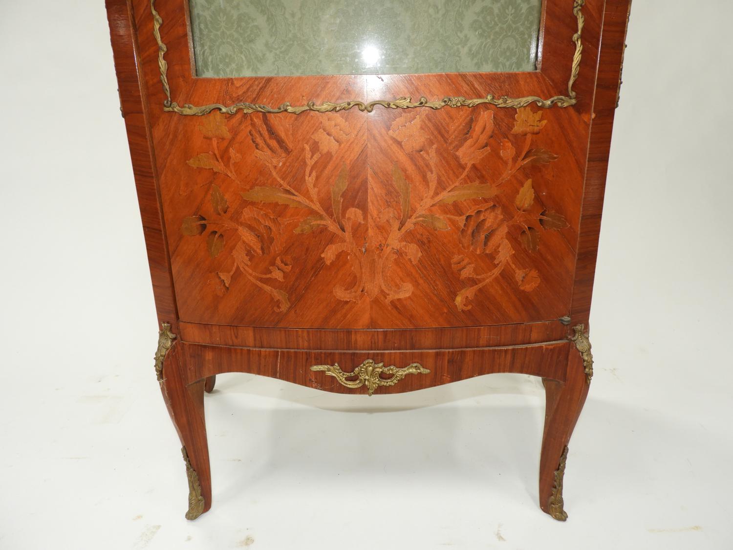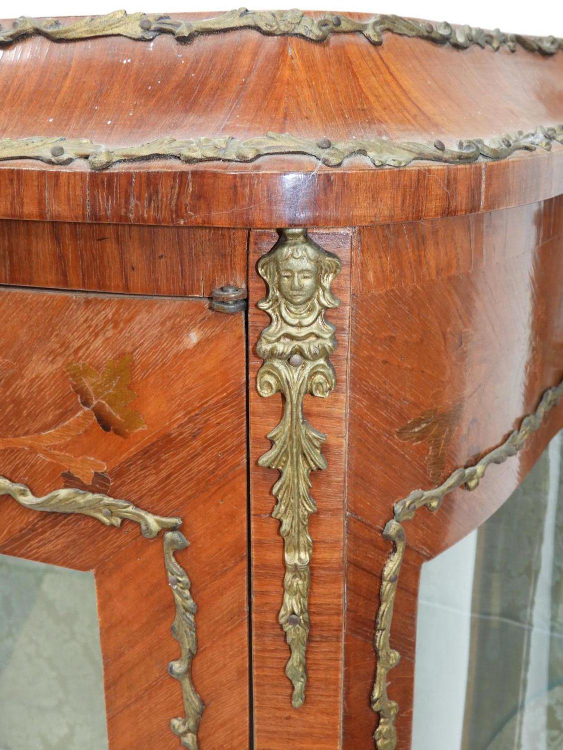 louis xv-style marquetry inlaid curio cabinet with gilt mounts, early 20th century, 37 1/2" x 26" x 15"