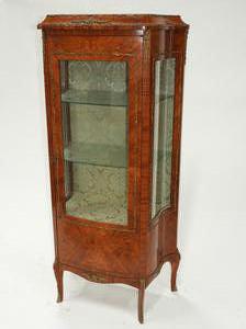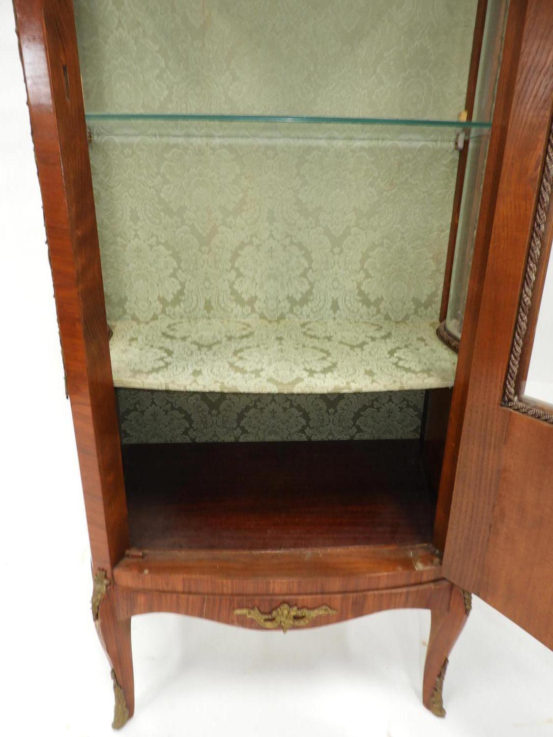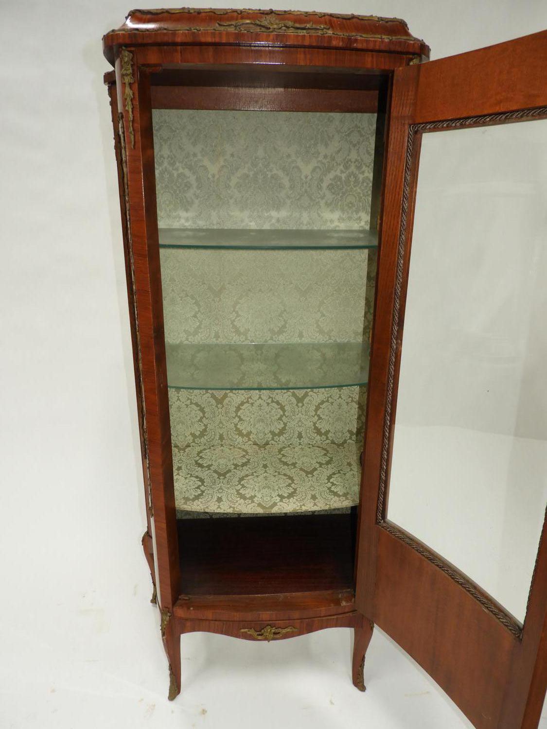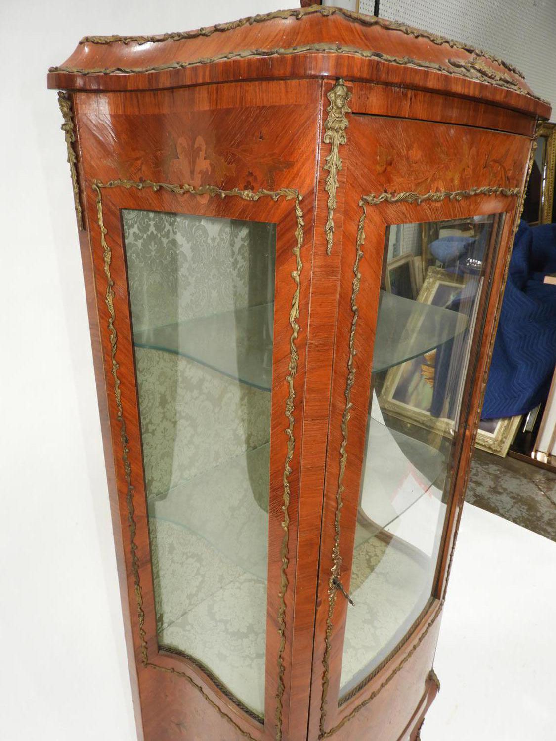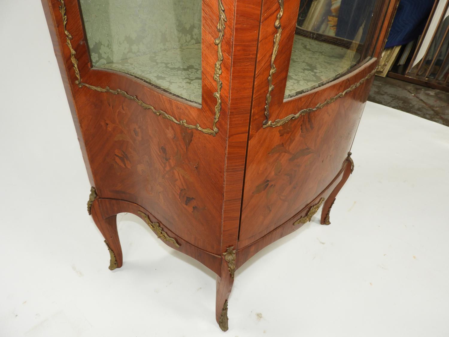 louis xv-style marquetry inlaid curio cabinet with gilt mounts, early 20th century, 37 1/2" x 26" x 15"