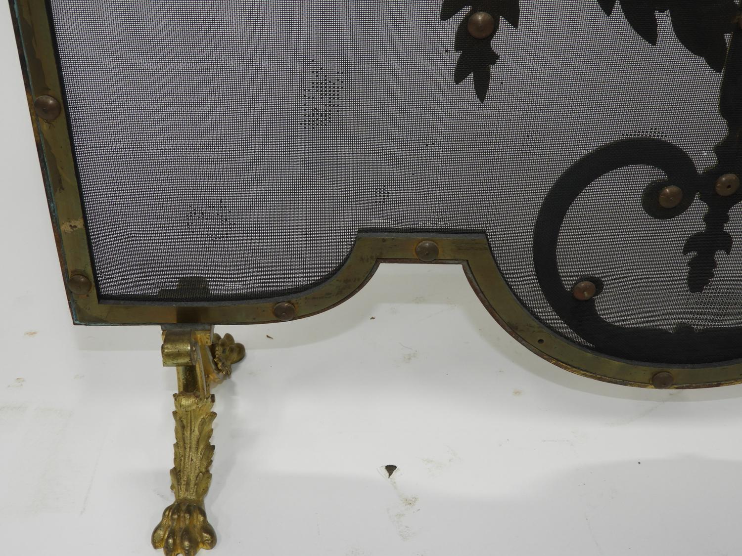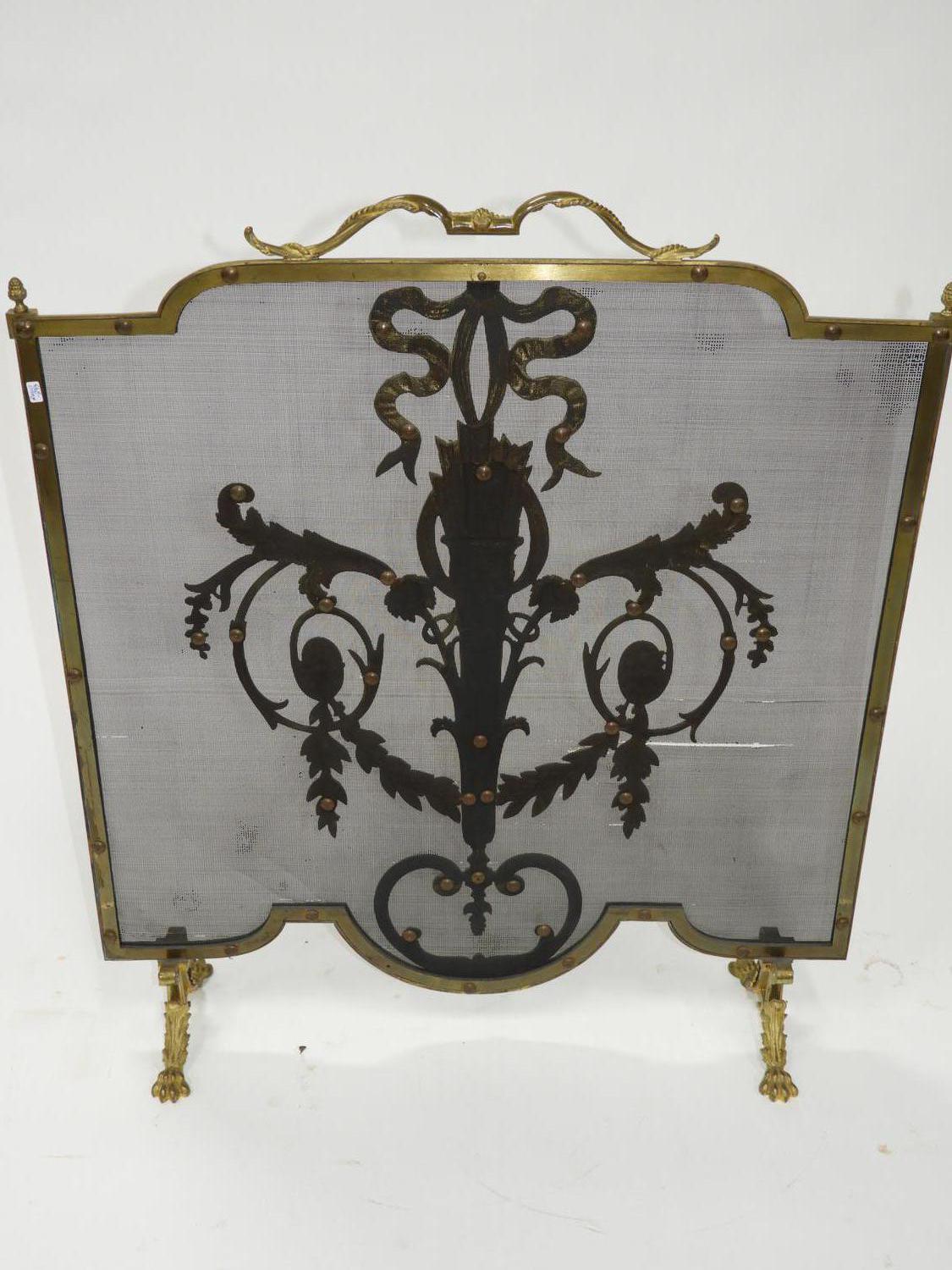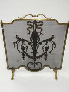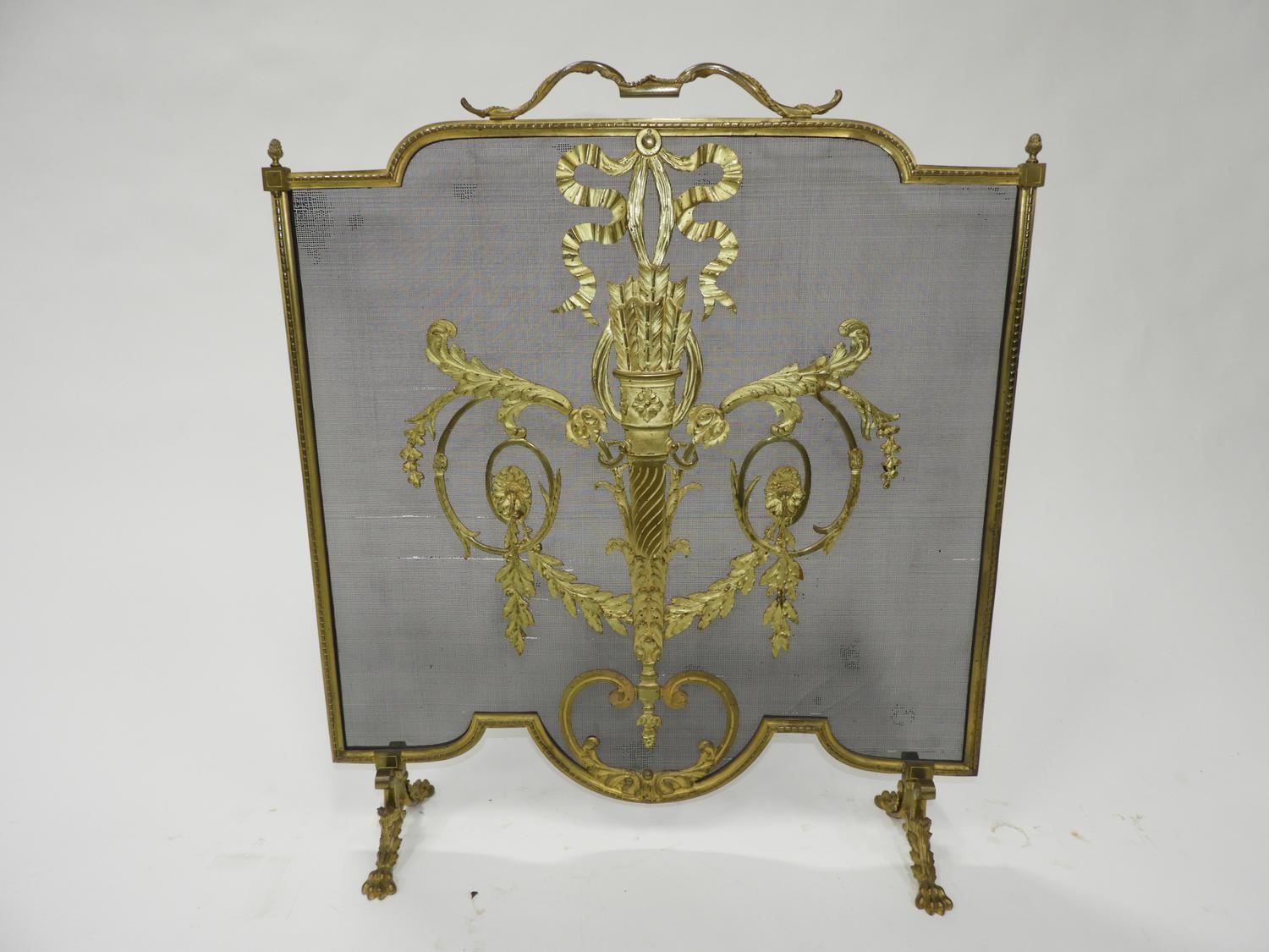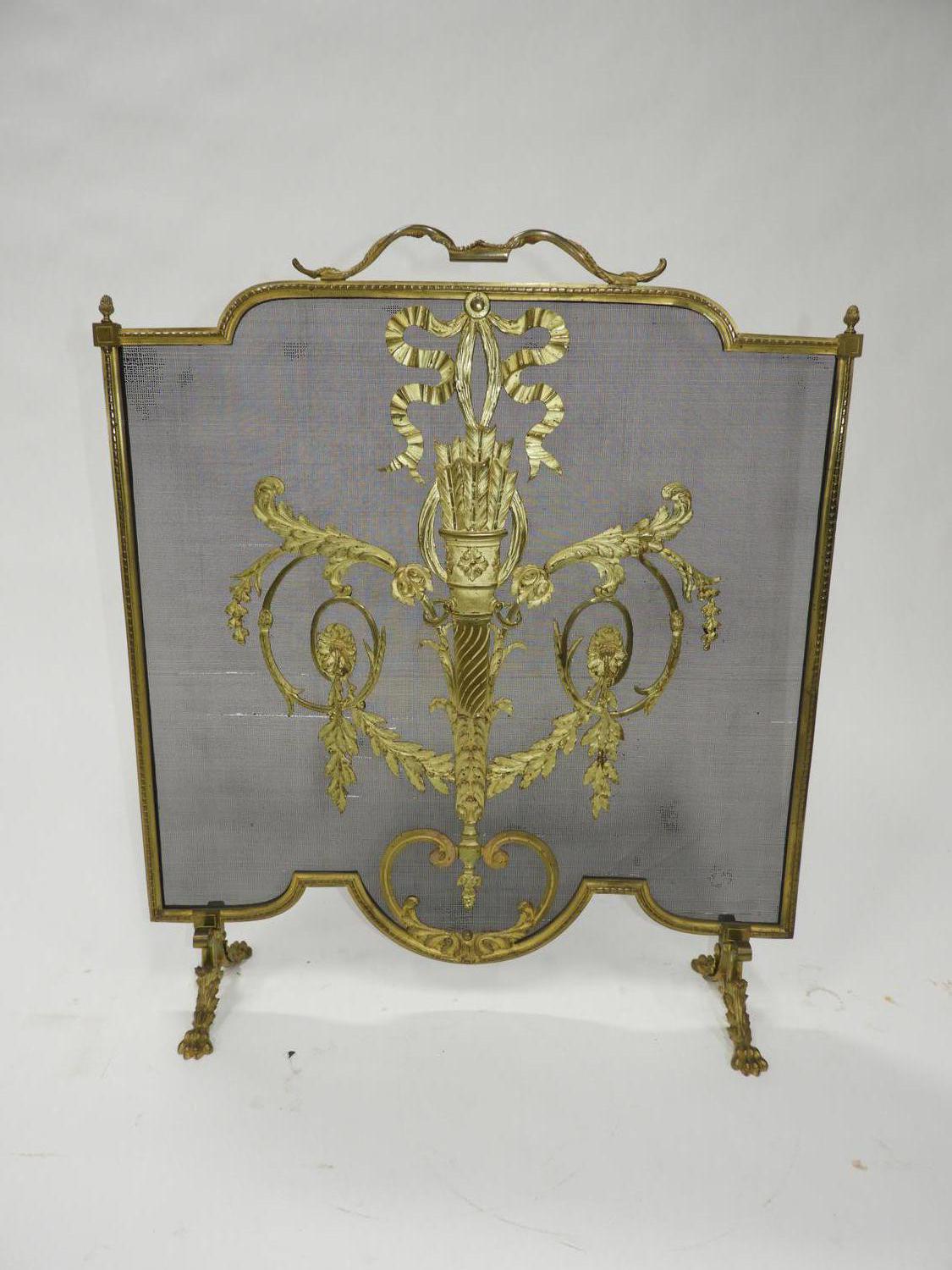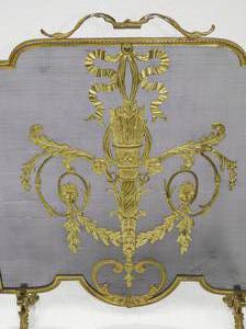 classical louis xvi-style brass fire screen, 31" x 27" x 8"
