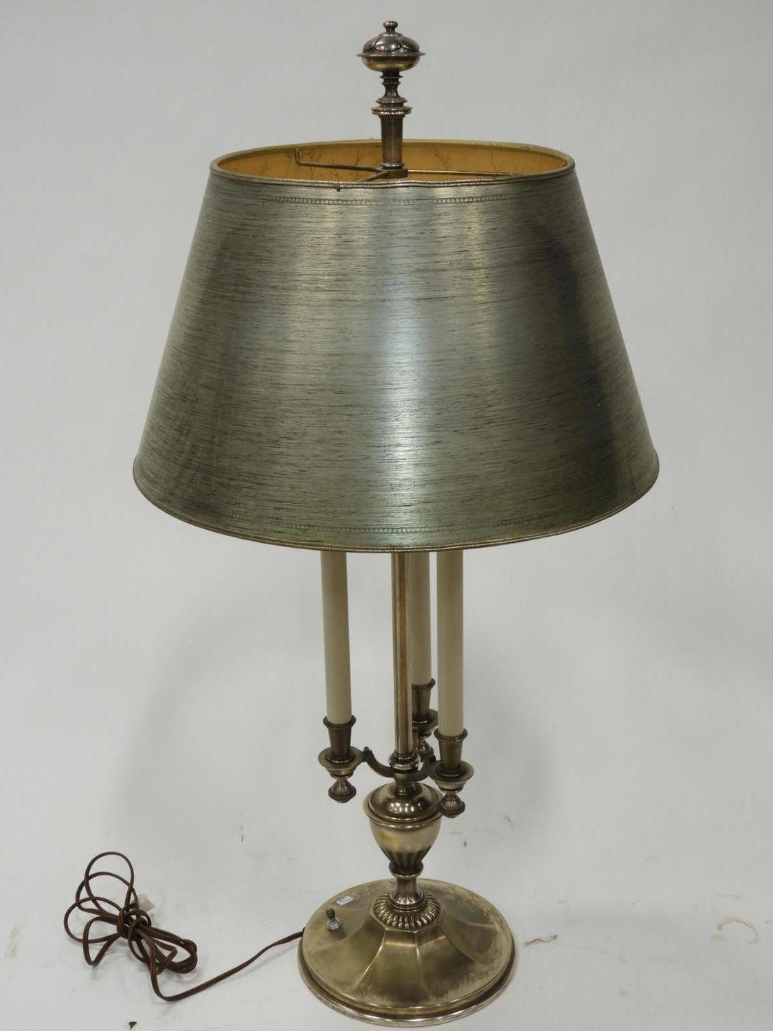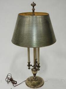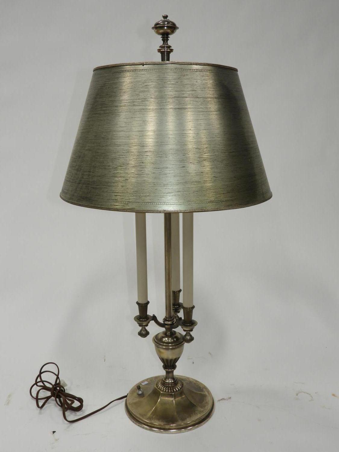 brushed steel table lamp with shade, ht. 34"