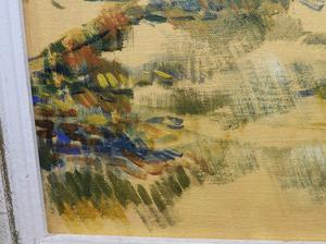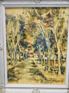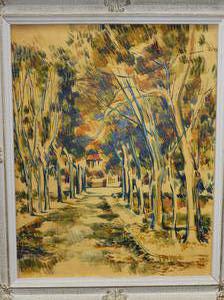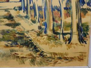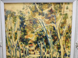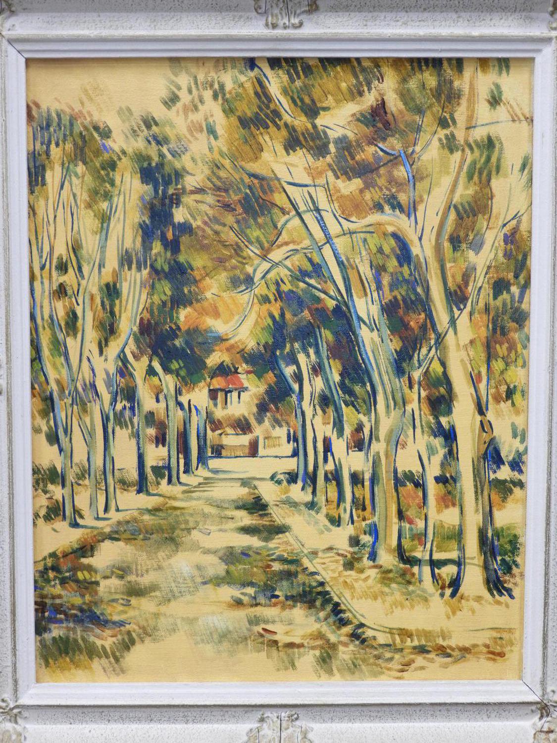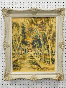 unsigned oil on canvas, 20" x 16", "landscape with treed path"