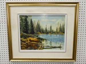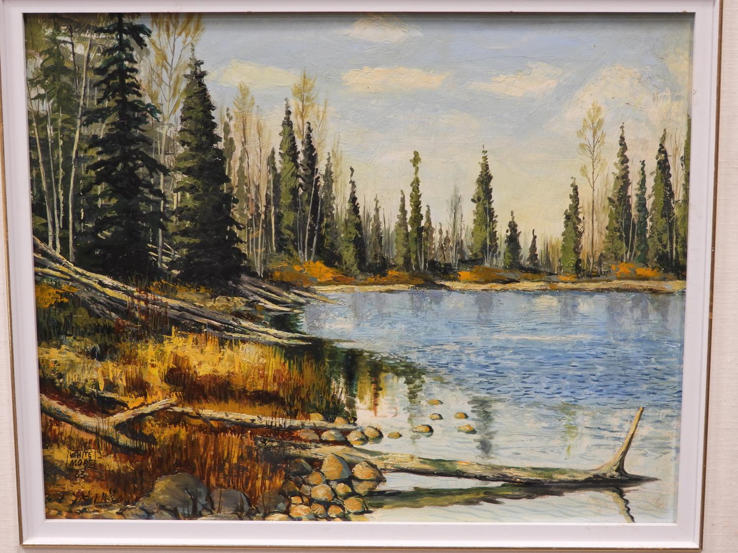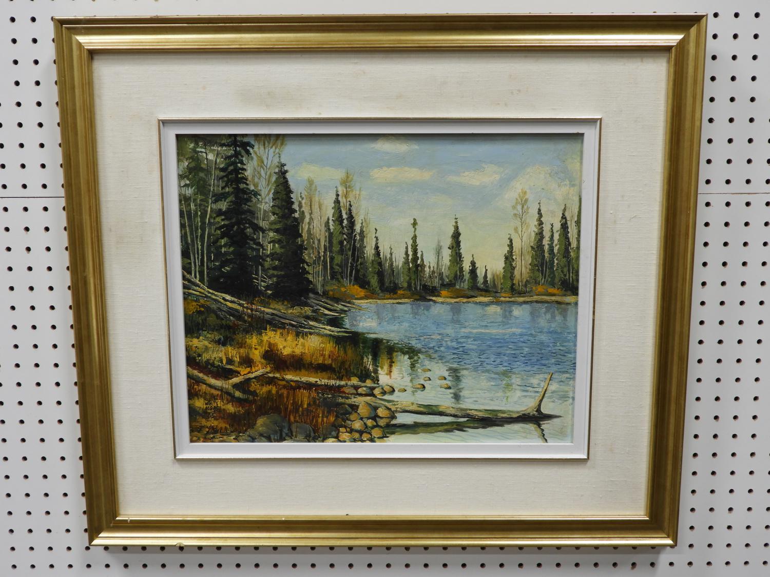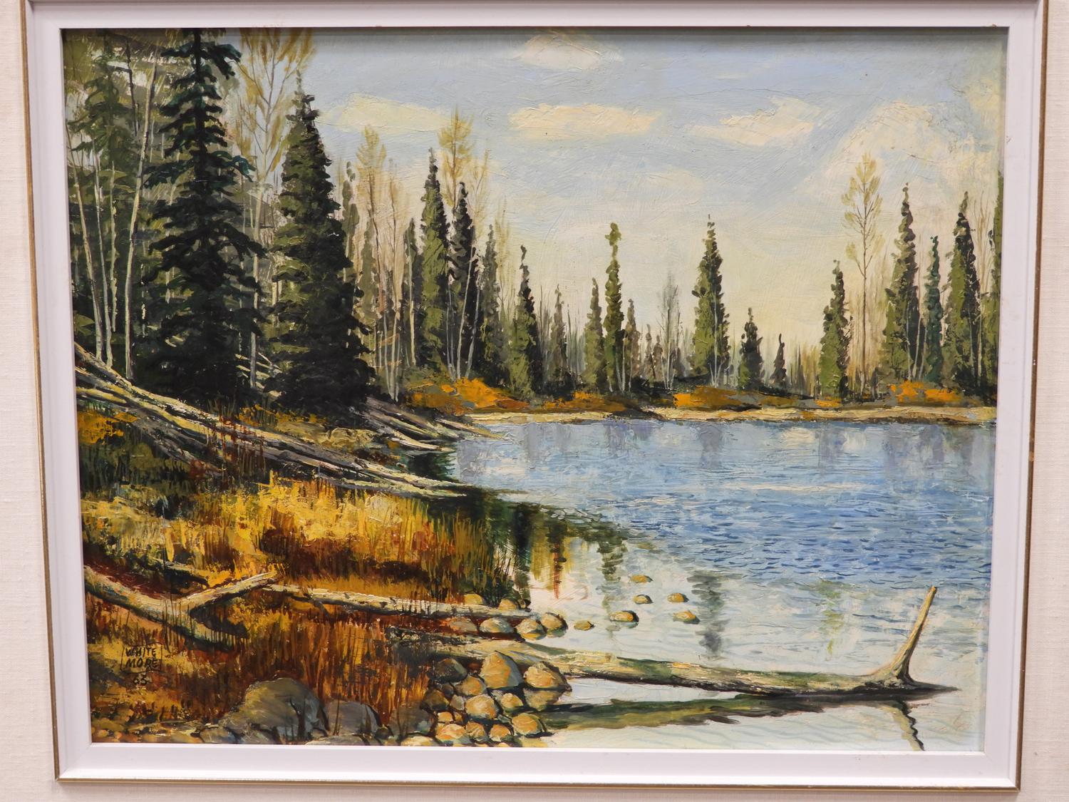 john whitemore, oil on board, d. 1963, 16" x 20", "ada lake, algoma"