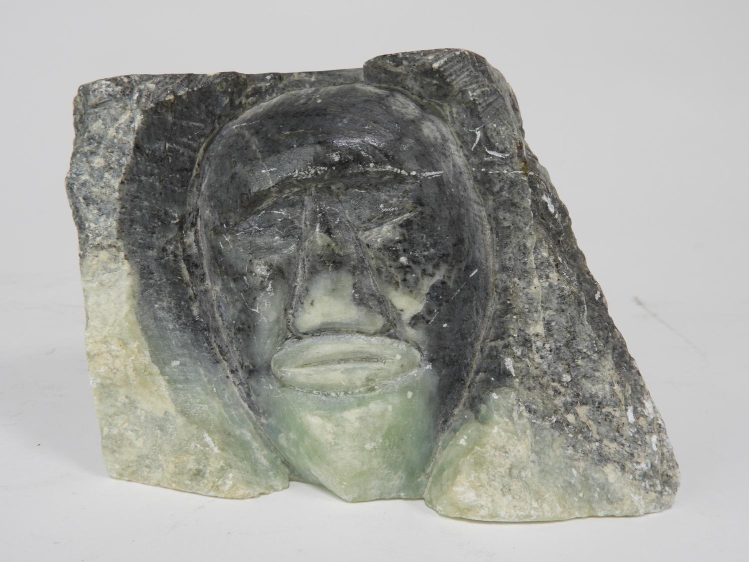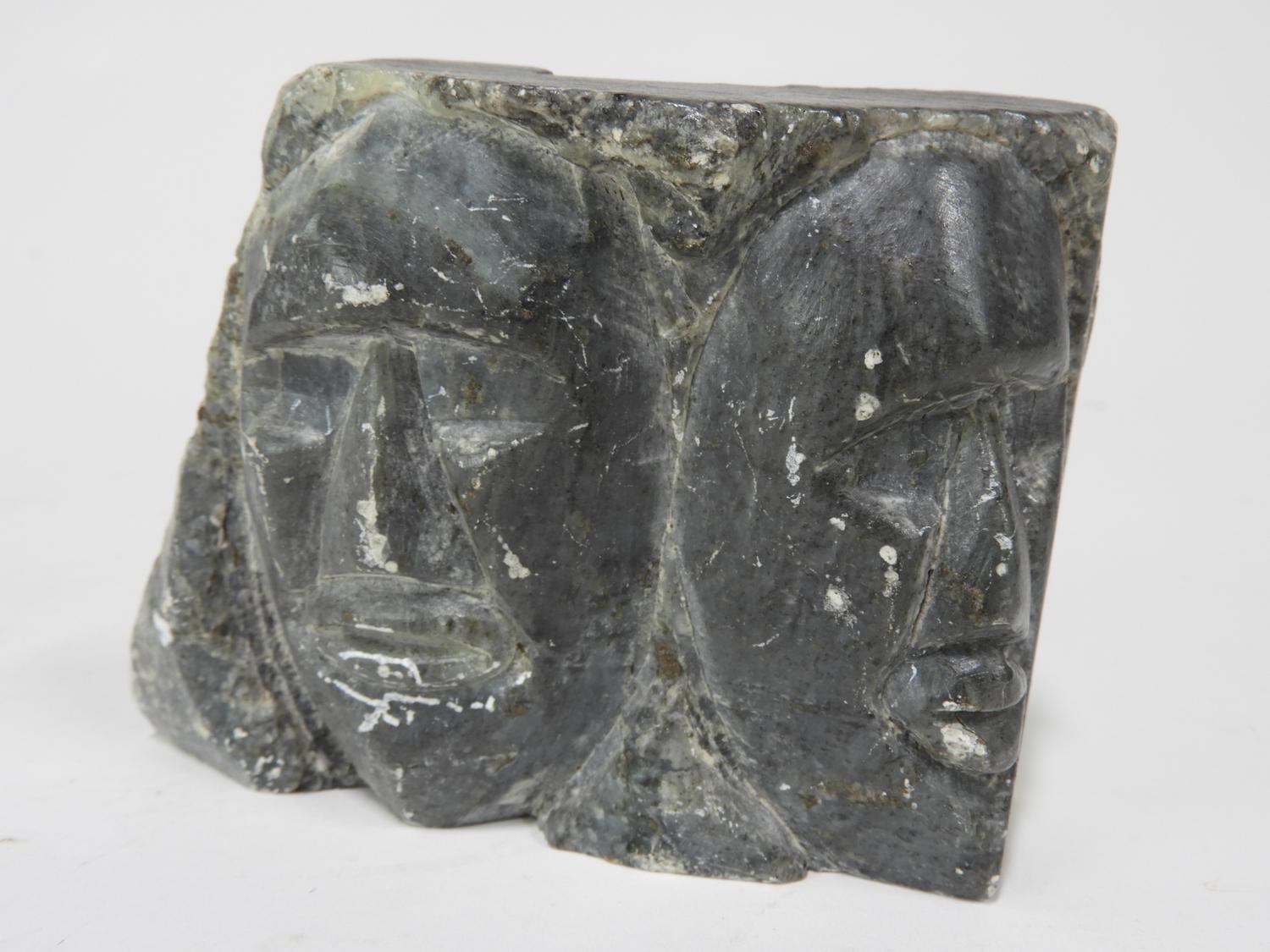 inuit carved stone faces, signed and numbered, 4" x 5 1/2"