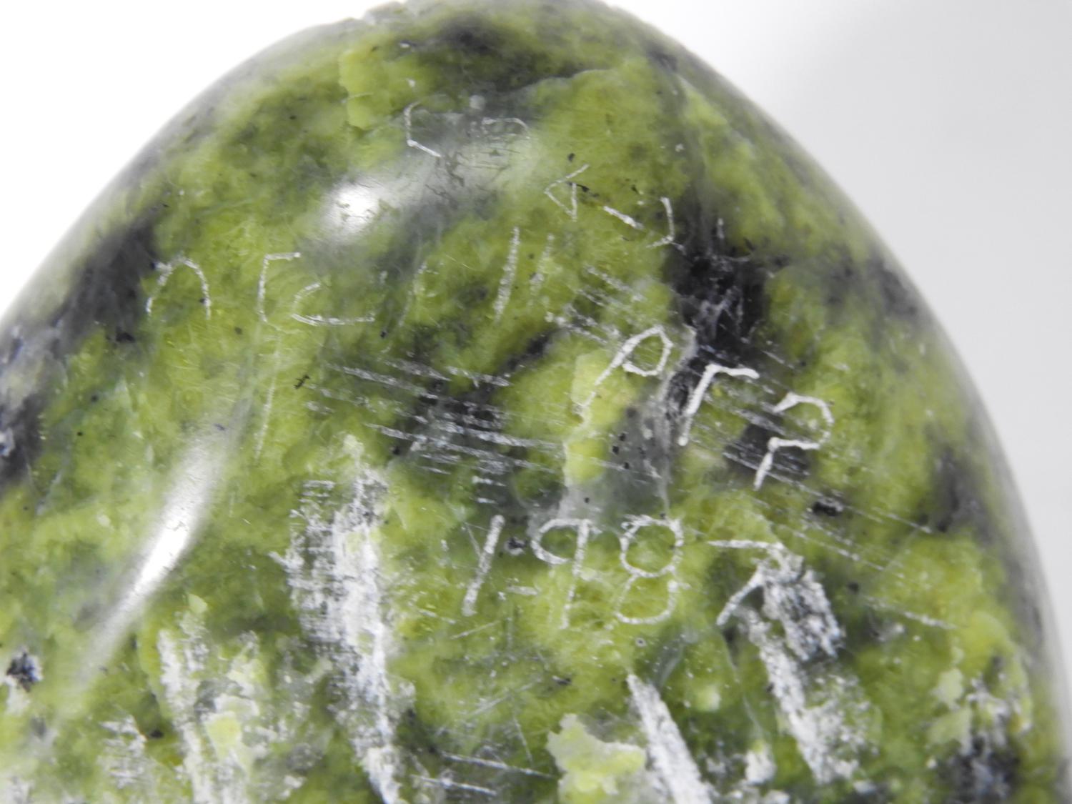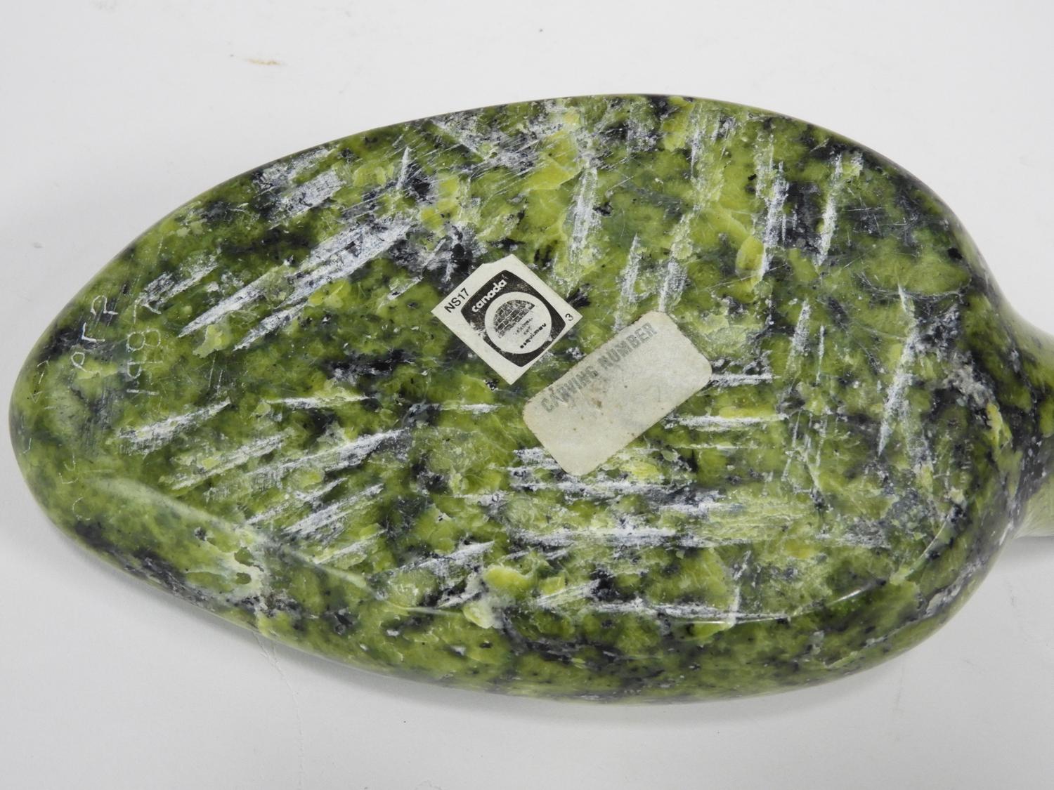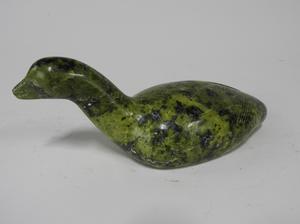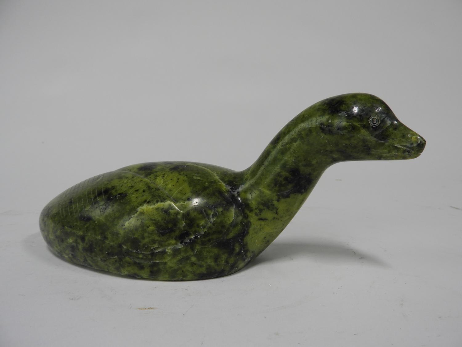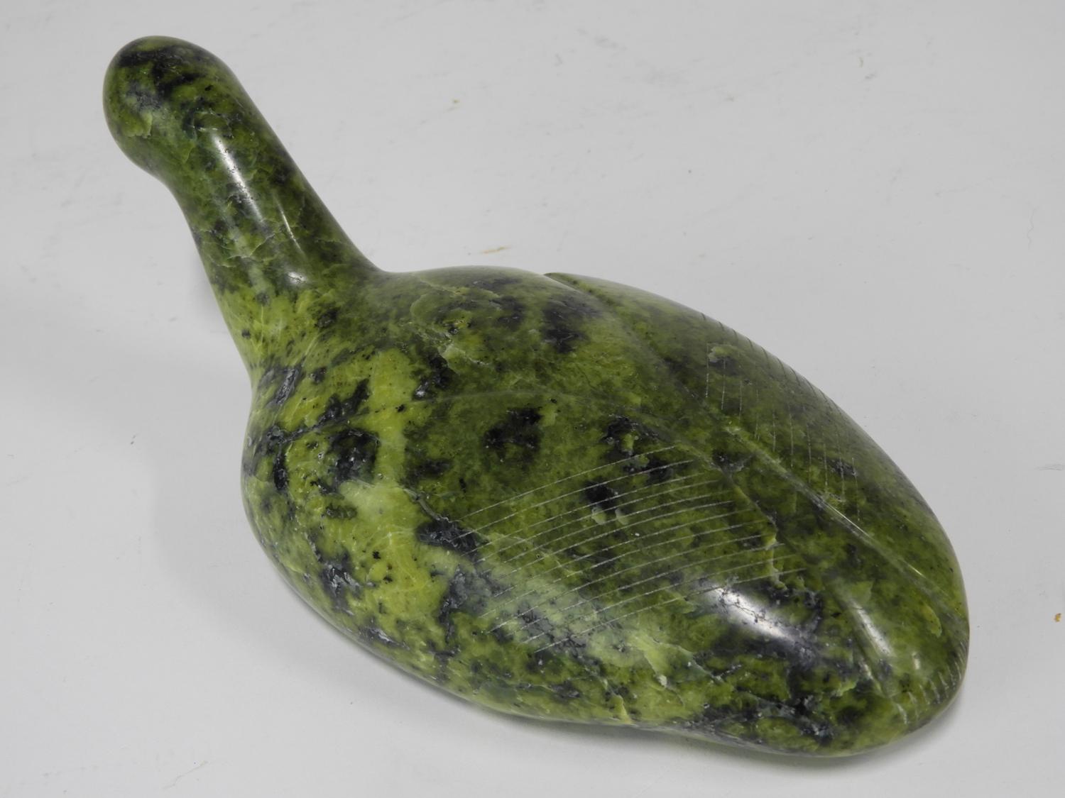 inuit carved green stone goose, d. 1987, 4" x 10" x 4 1/2"