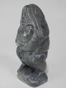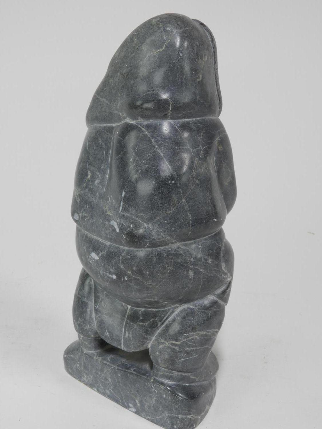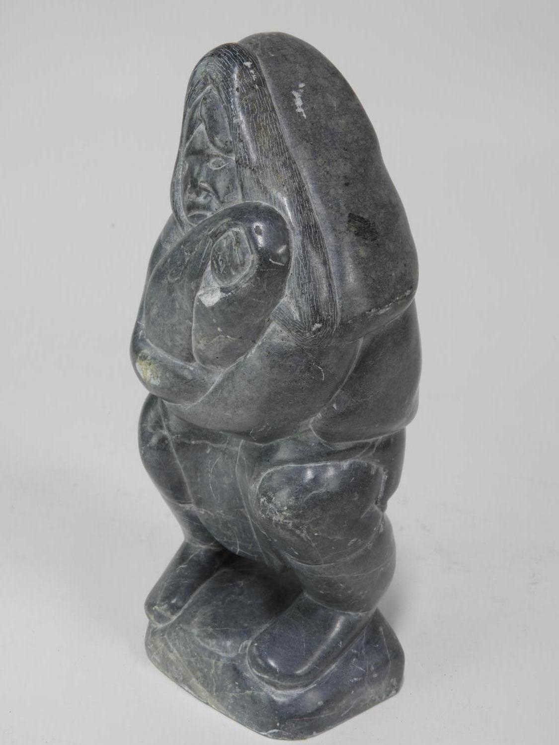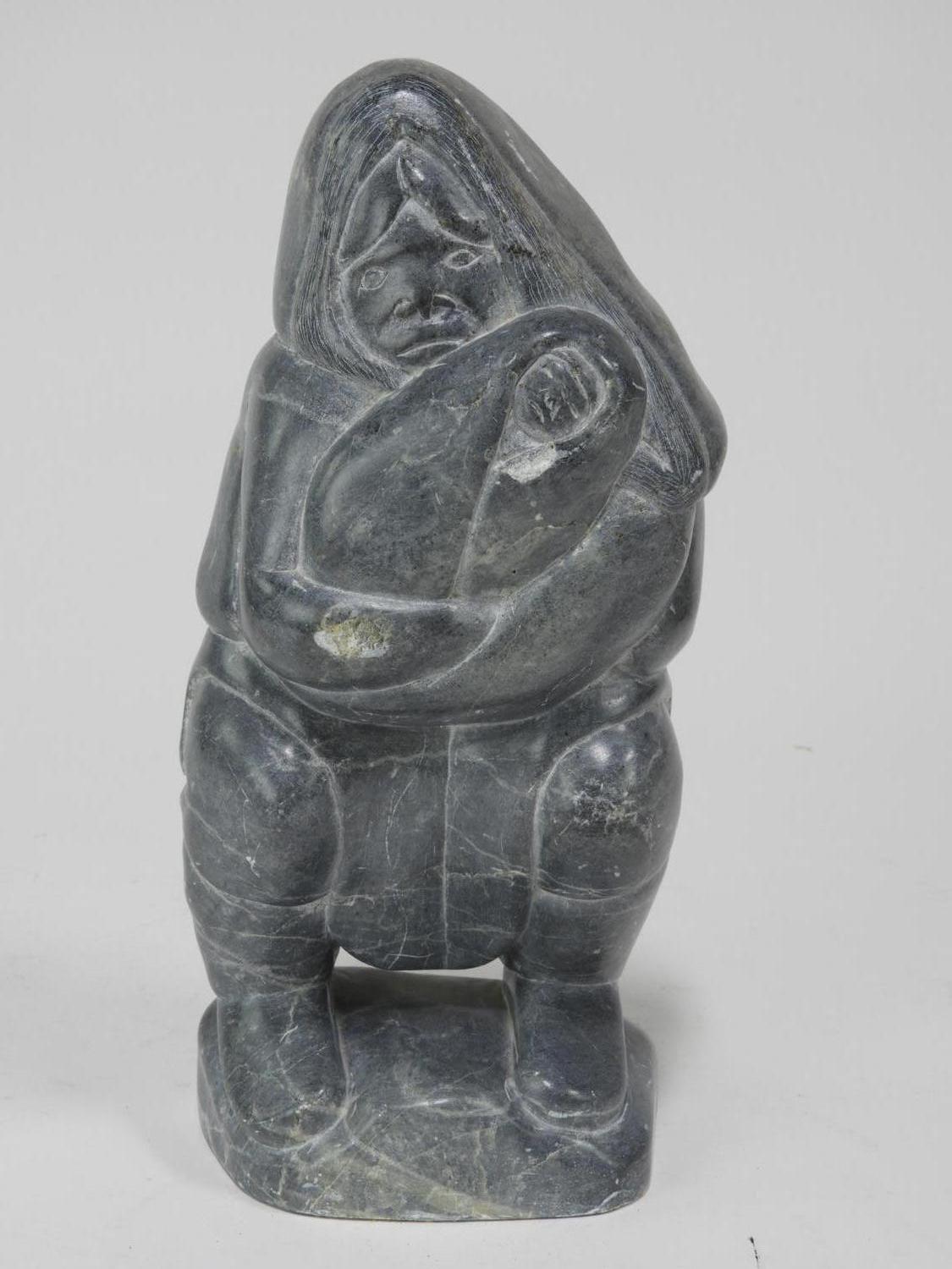 inuit carved grey stone figure of a mother and child, 12 1/2" x 5 1/2"