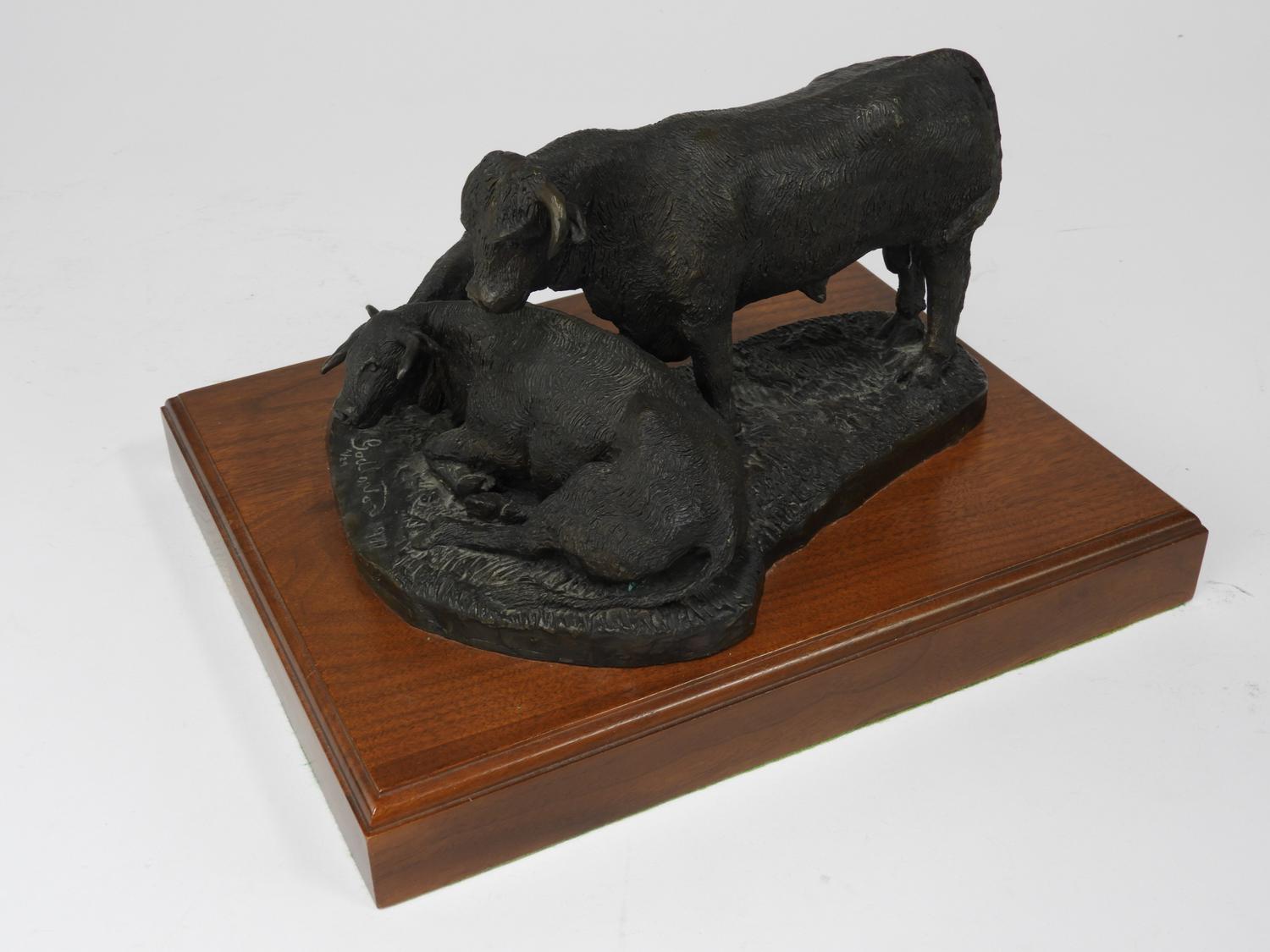 bill godlonton, d.1977, bronze, #4/24, 6" x 11" x 10", on base, "the family of beef"