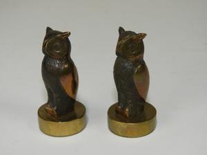 jose luis fernandez (b. 1943), bronze, ht 2 1/4" each, "owls"
