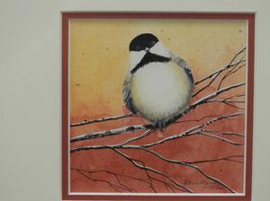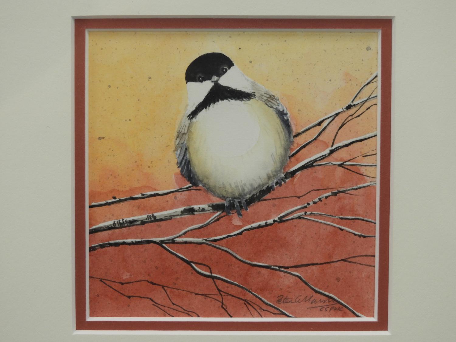 peter a. marsh, watercolour, 3 3/4" x 3 3/4", "black cap chickadee"