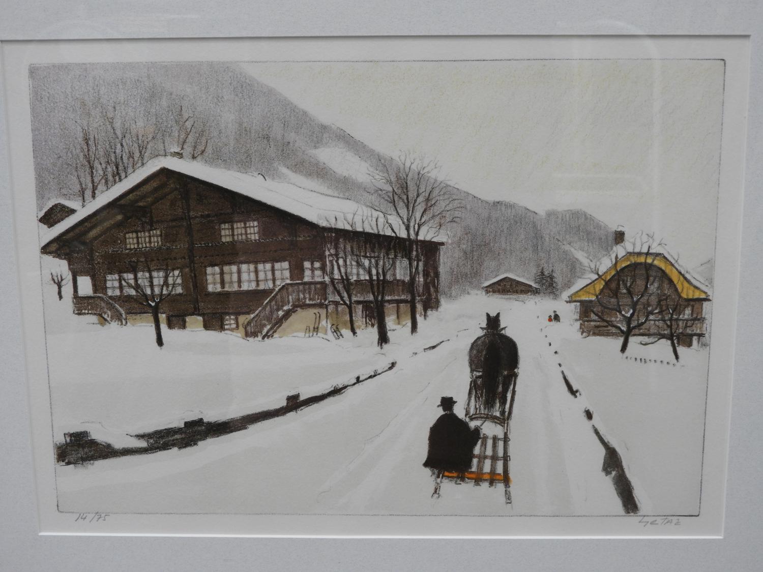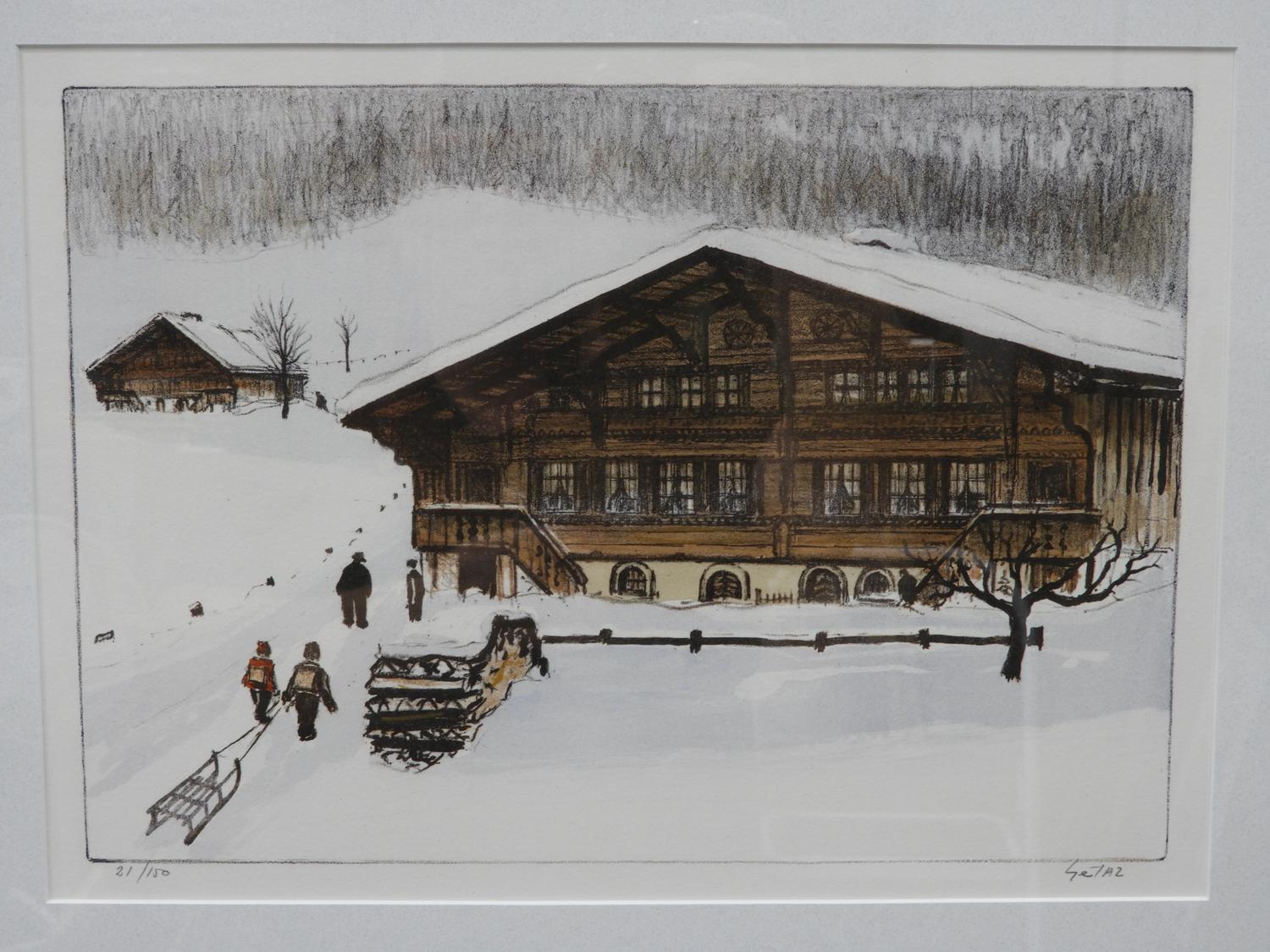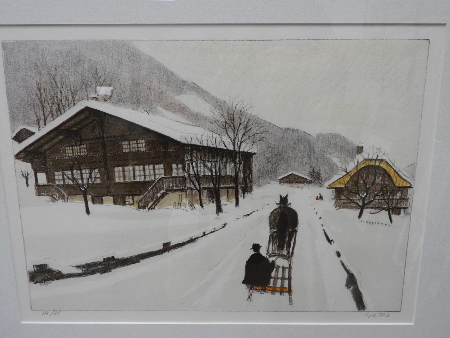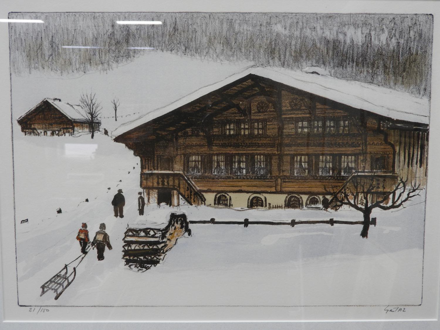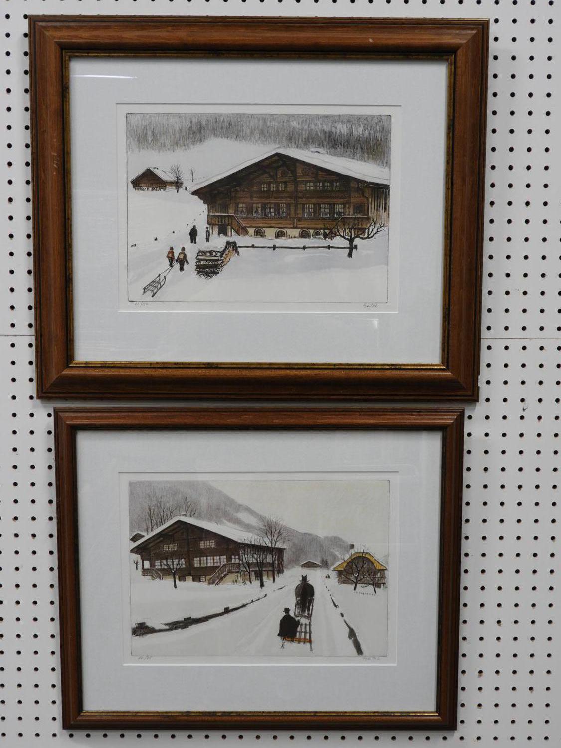 jean louis getaz (1931-2002), two limited edition prints, 14/75, 21/150, 11" x 15", "winter scenes"