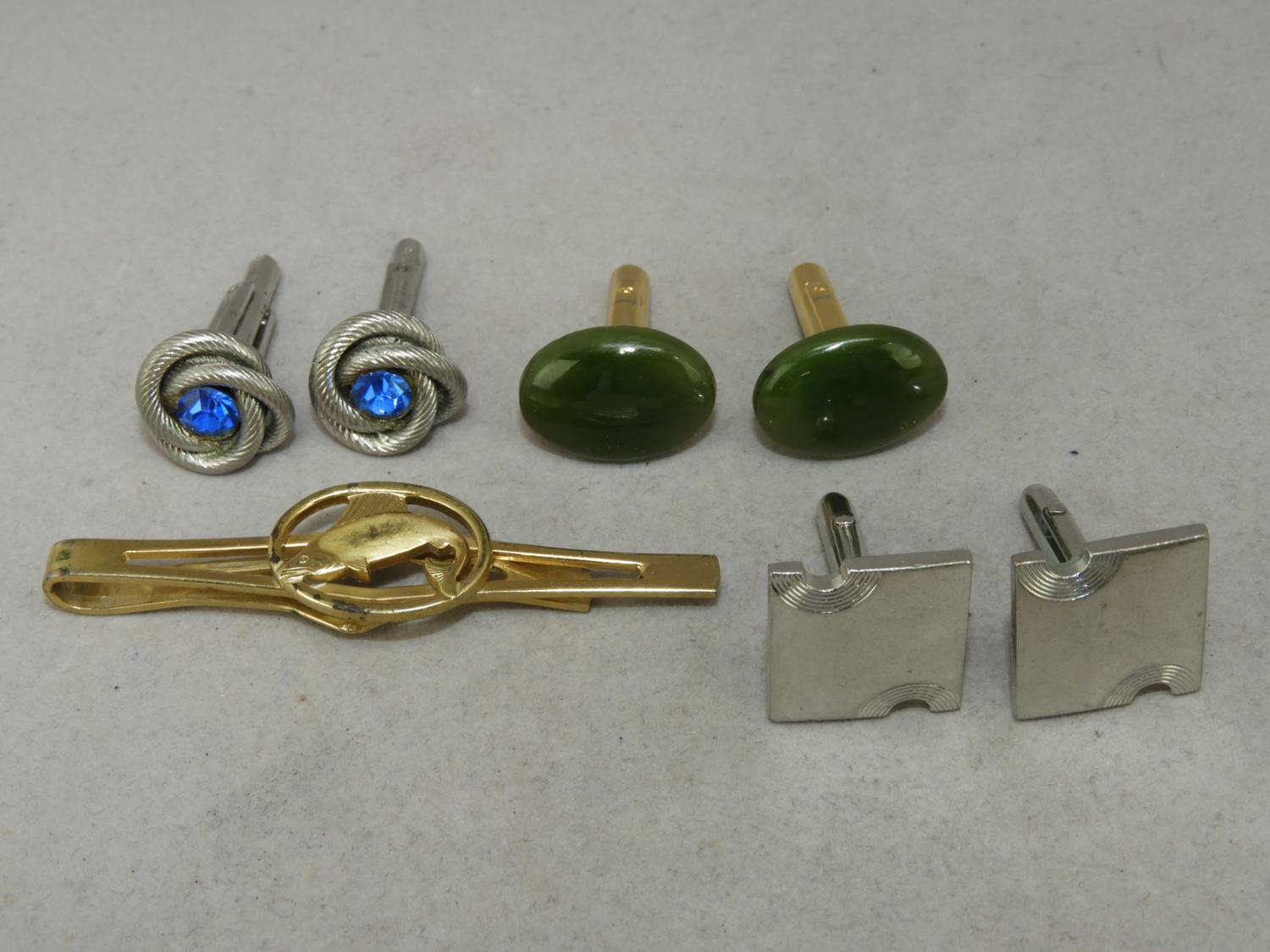 gents nephrite, swank, rhinestone cufflinks with fish tie bar