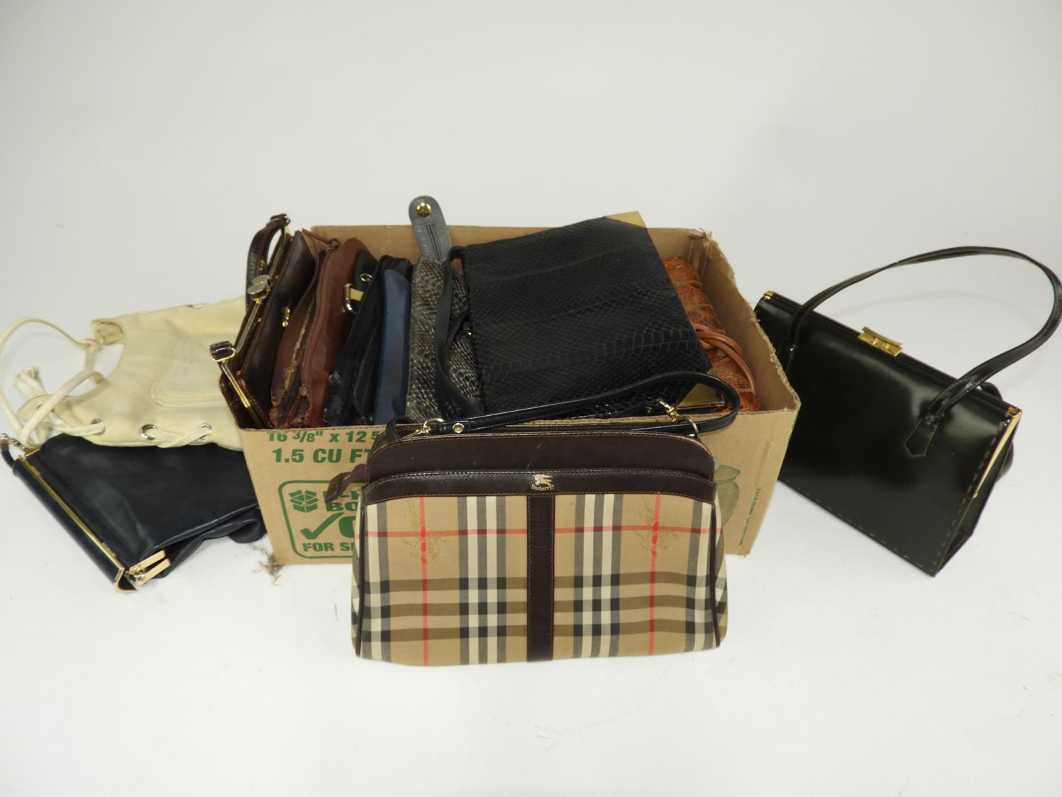 lot of vintage handbags, including burberry