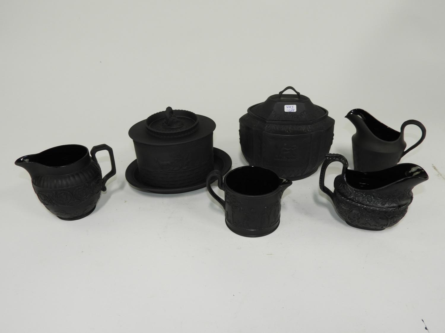 wedgewood black basalt tea wares, condition noted on one