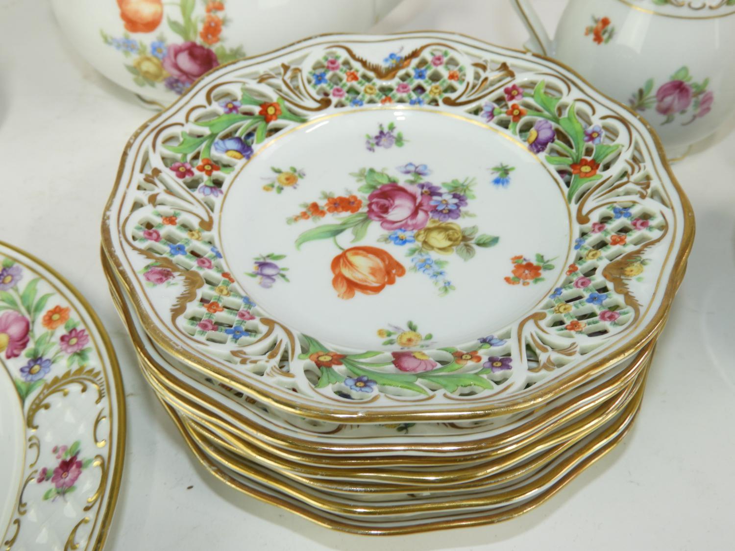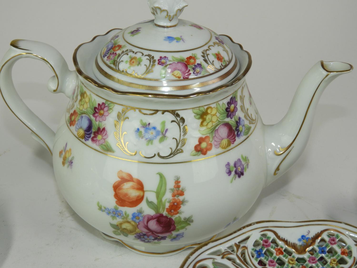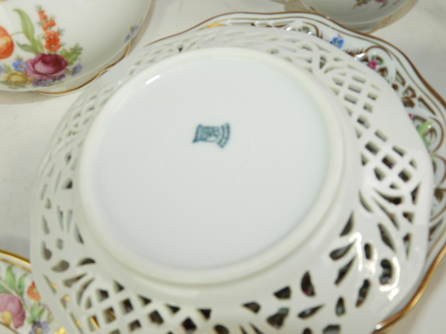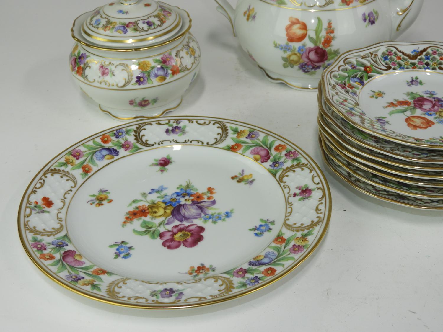 lot of bavarian porcelain "dresden line" pattern tea wares with similar nortake cups and saucers