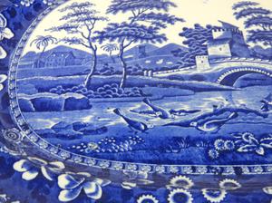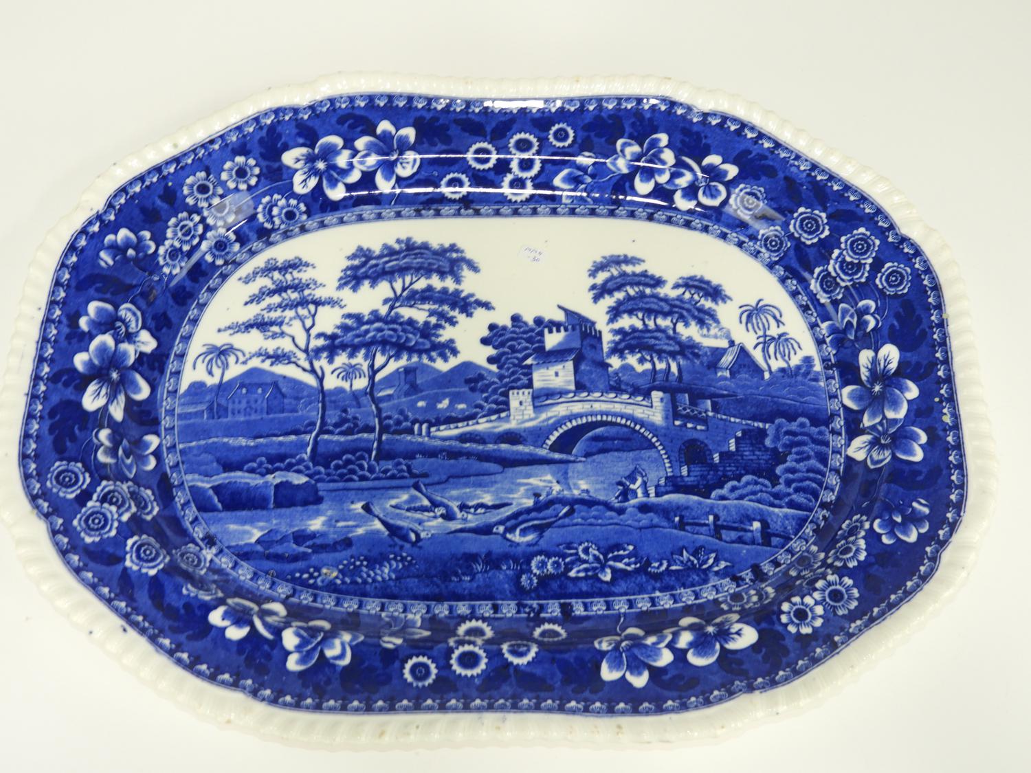 copeland "spodes tower" pattern blue and white platter, length 19 1/2"