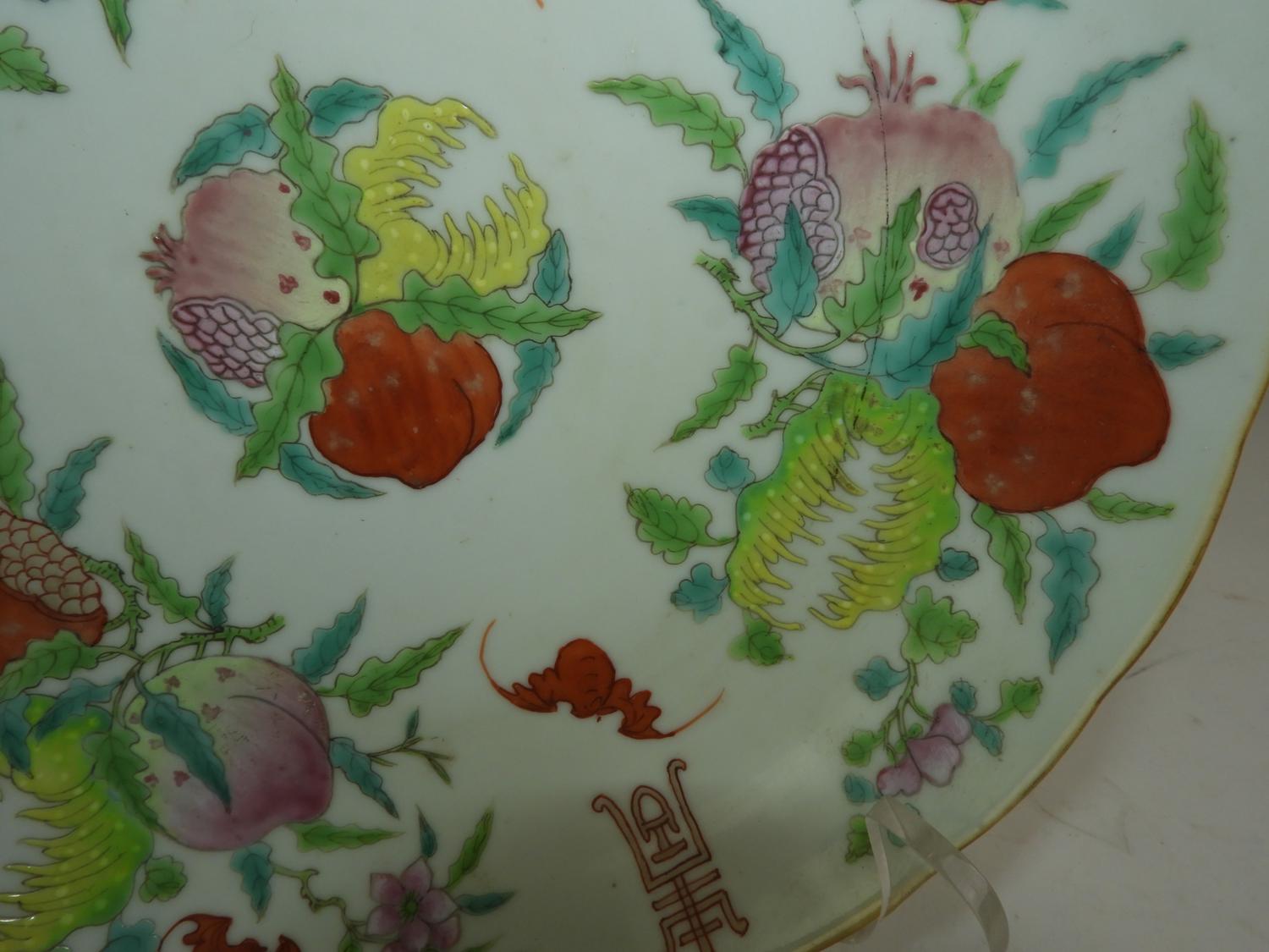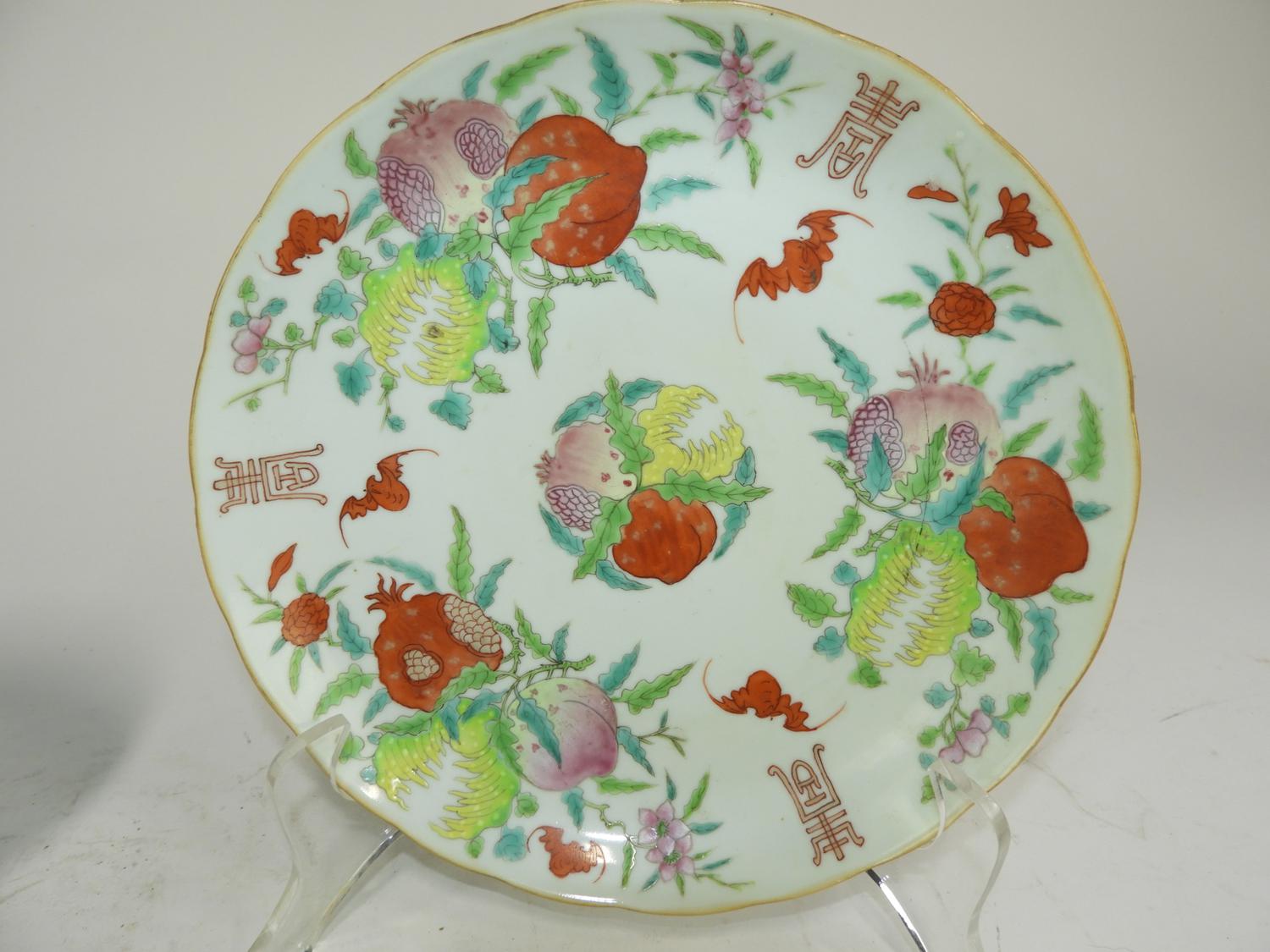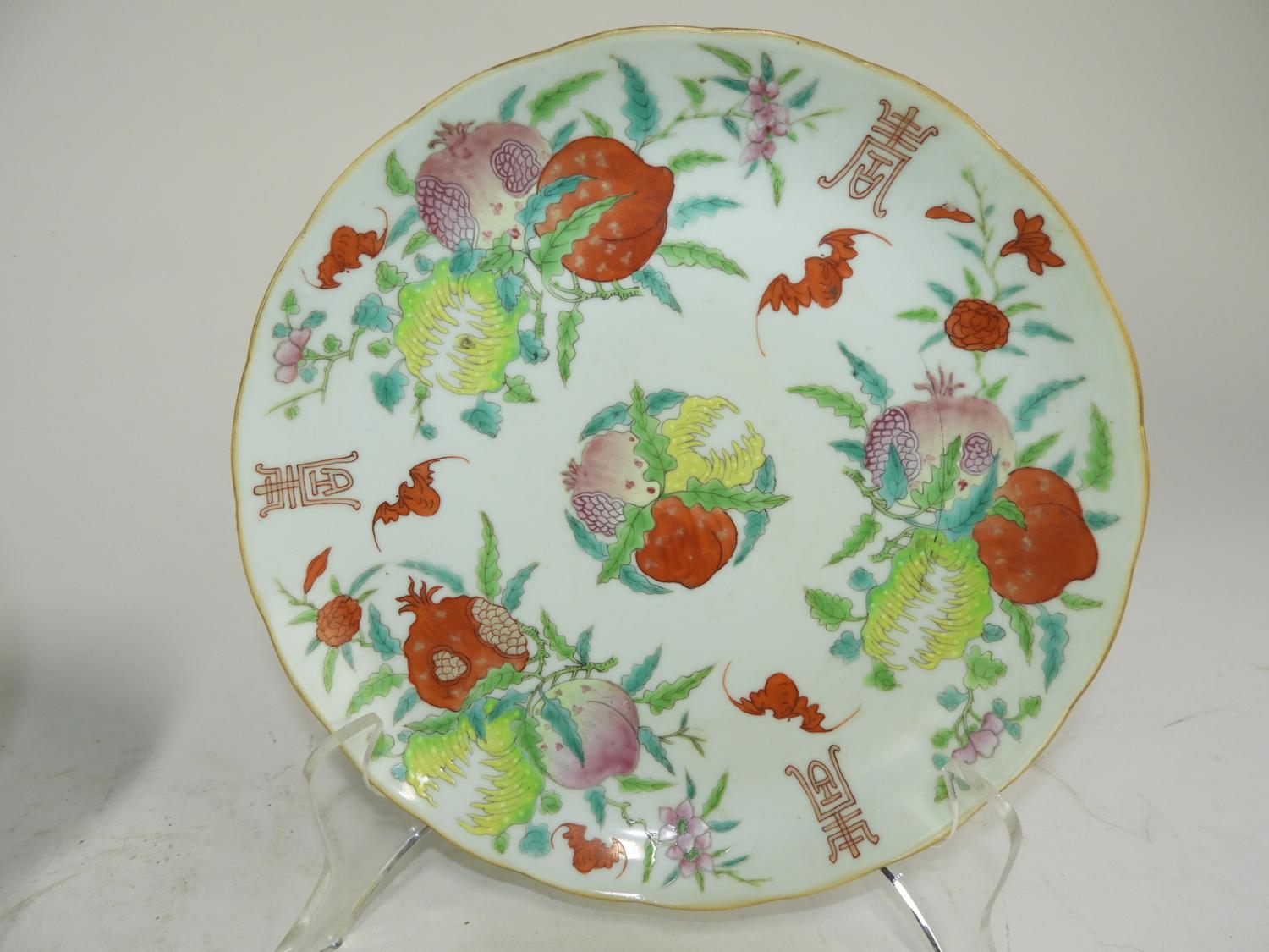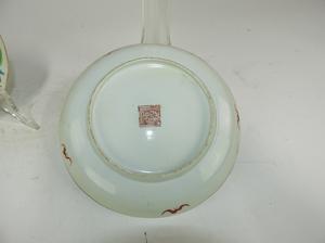 pair of chinese porcelain hand painted plates with six character mark, dia. 9 1/2"