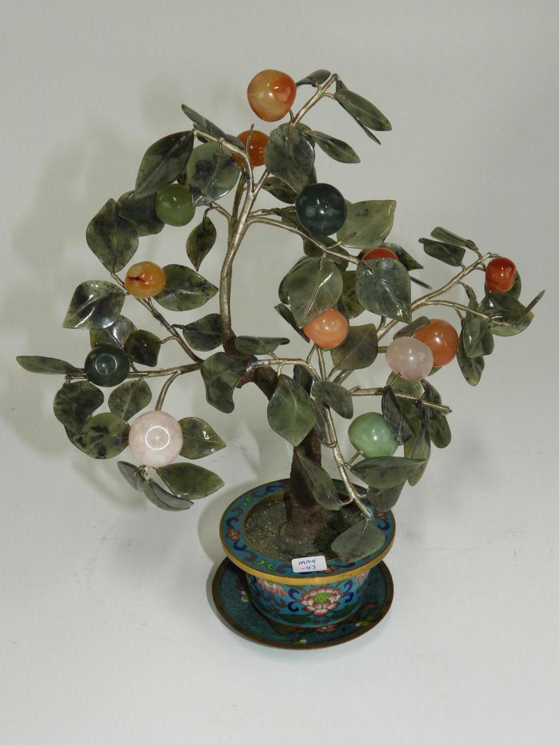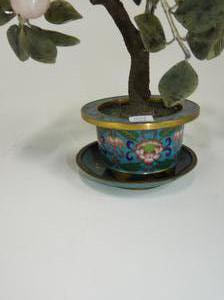 chinses cloisonnne vase with hardstone tree