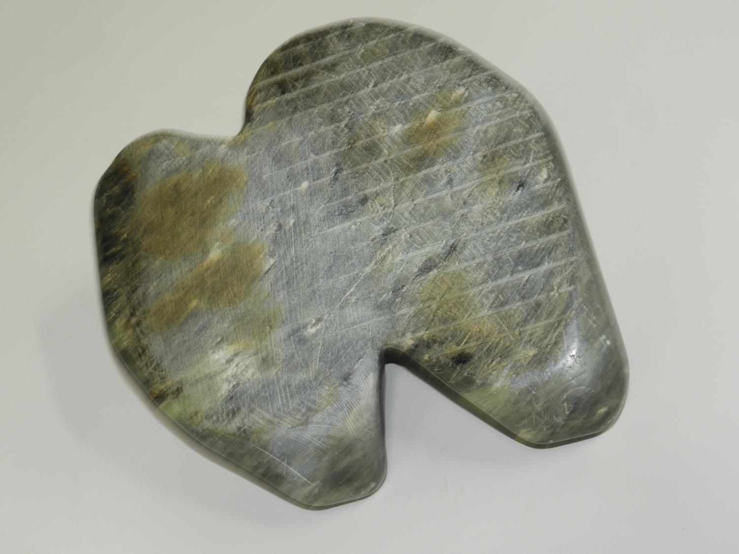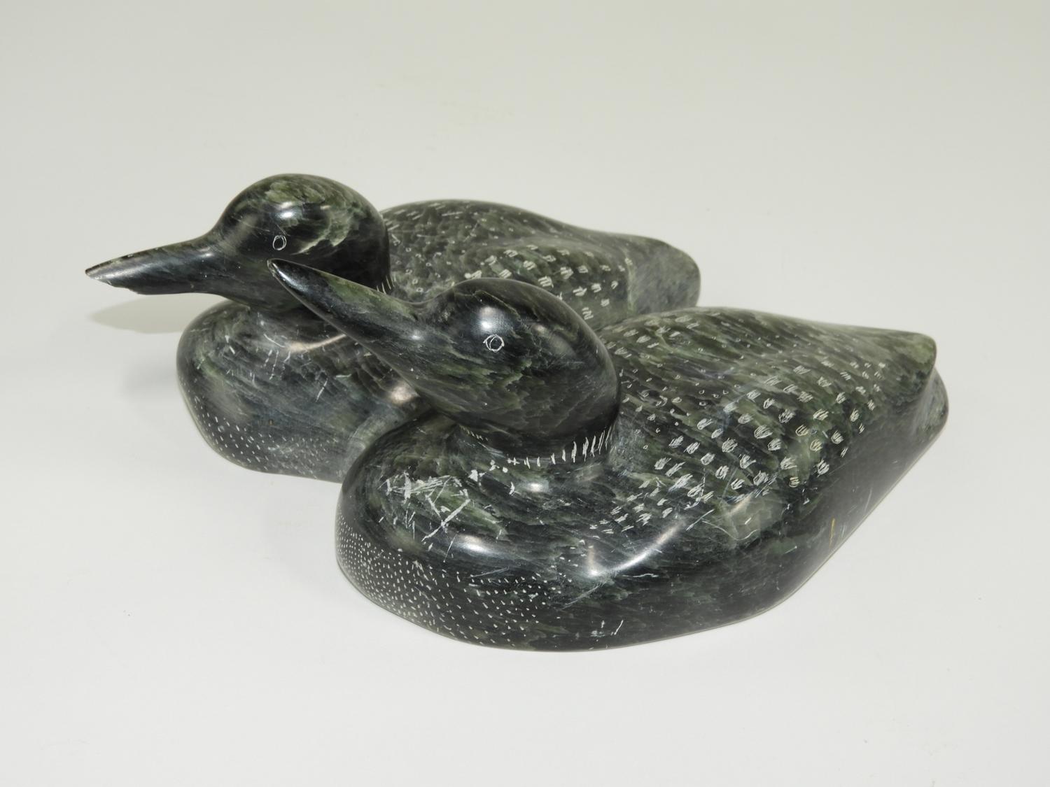 two carved soap stone loons