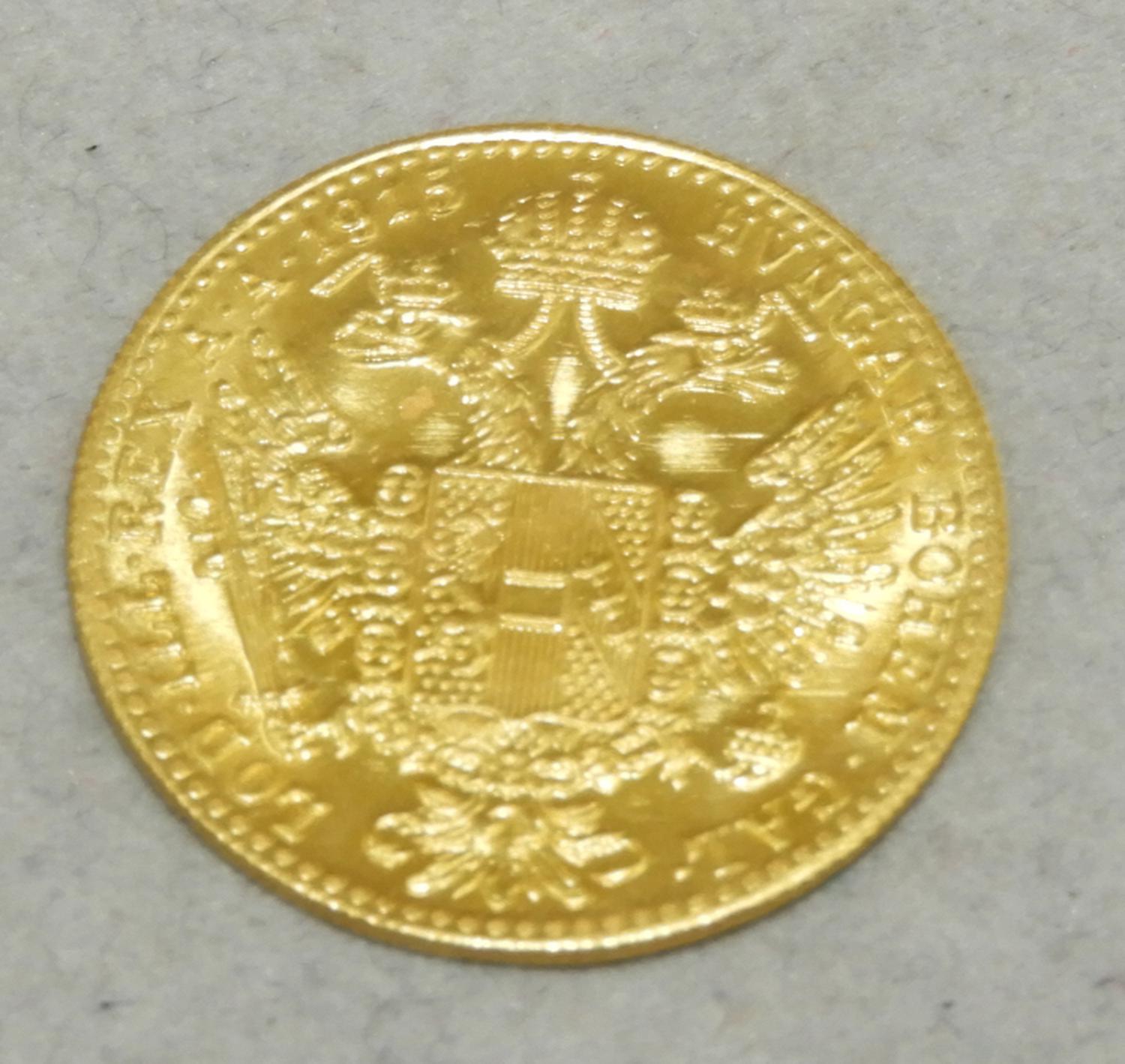 1915 1 Ducat Austrian gold coin, diameter 19mm, w/a 3.6grams, fine gold No tax
