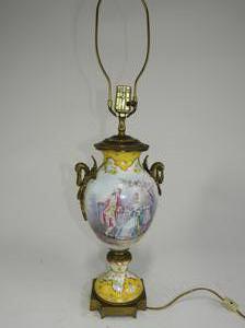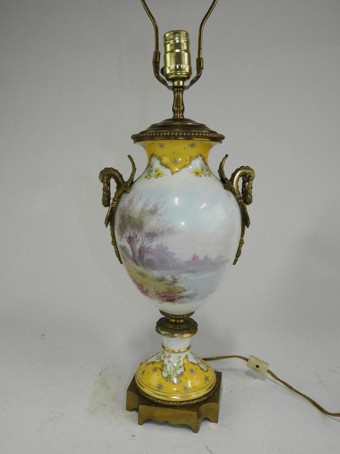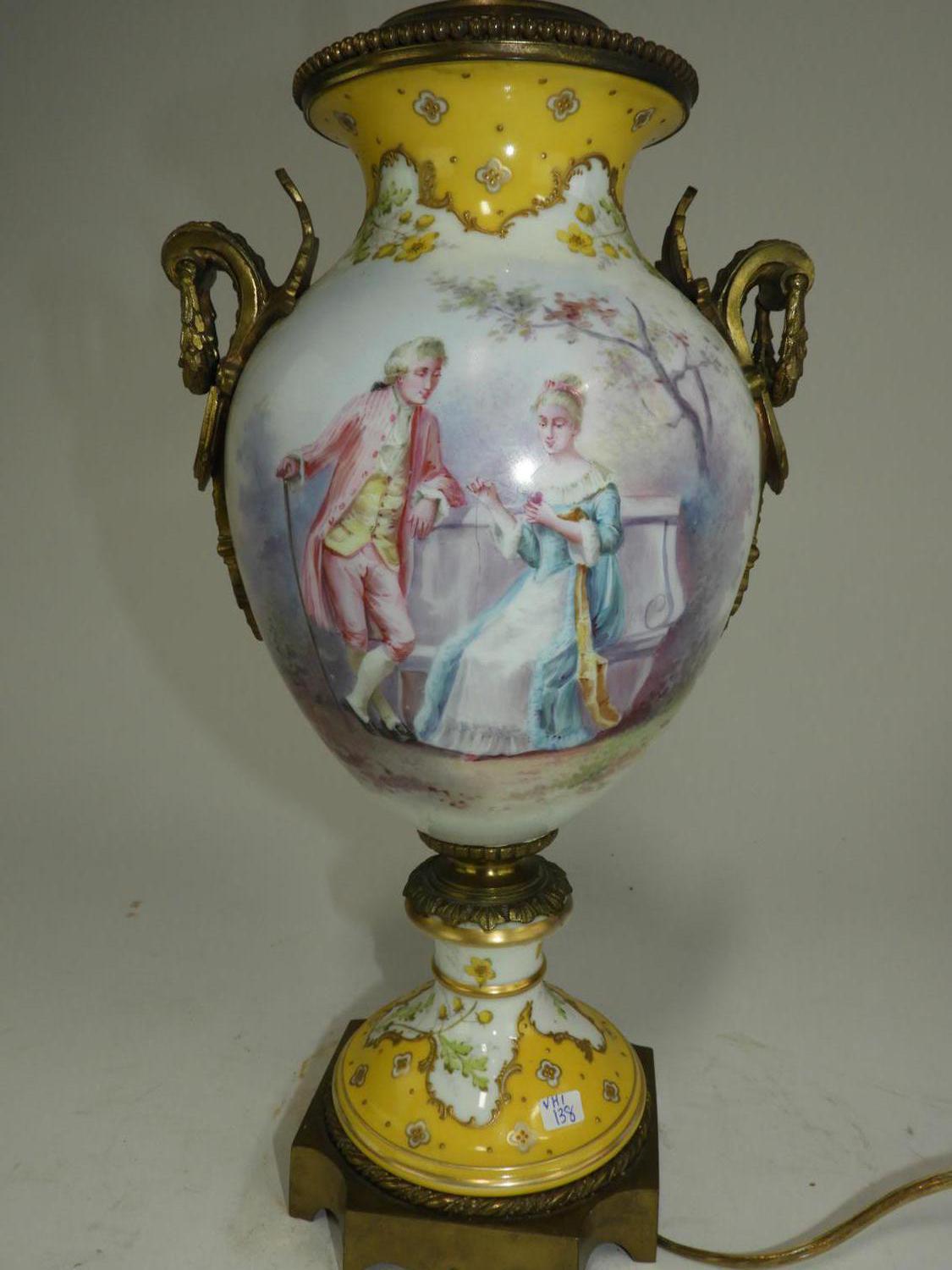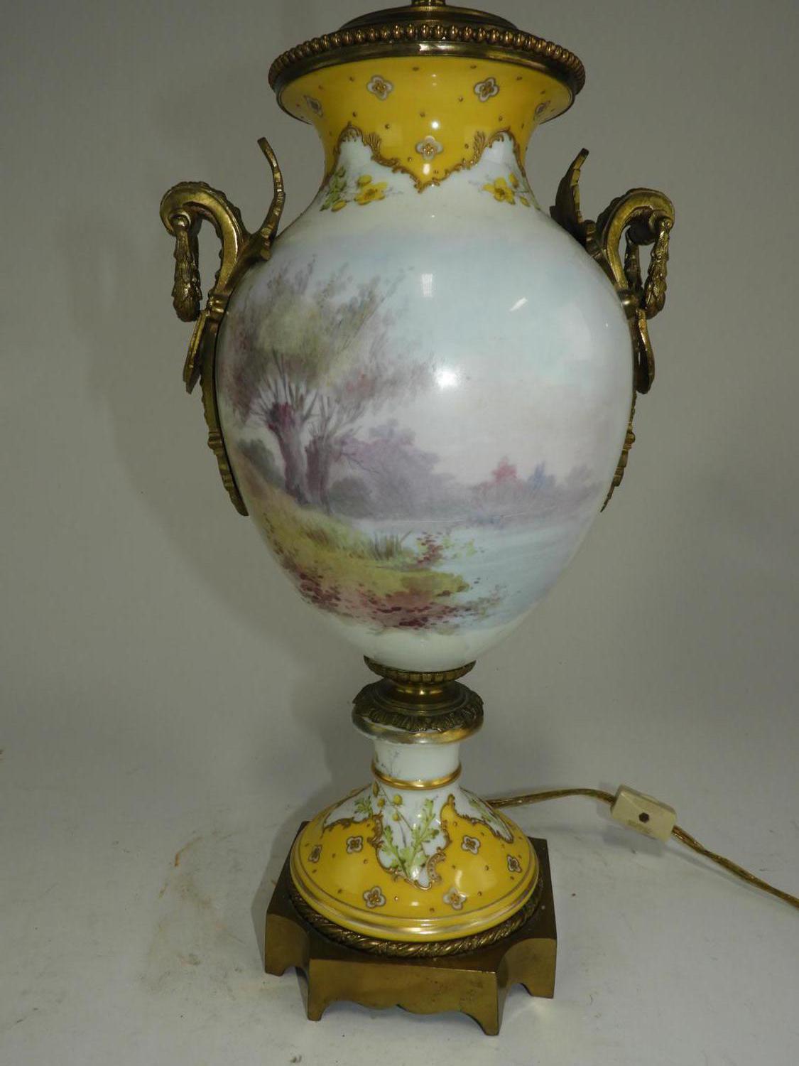 gilt mounted table lamp with hand painted decoration signed c. velly