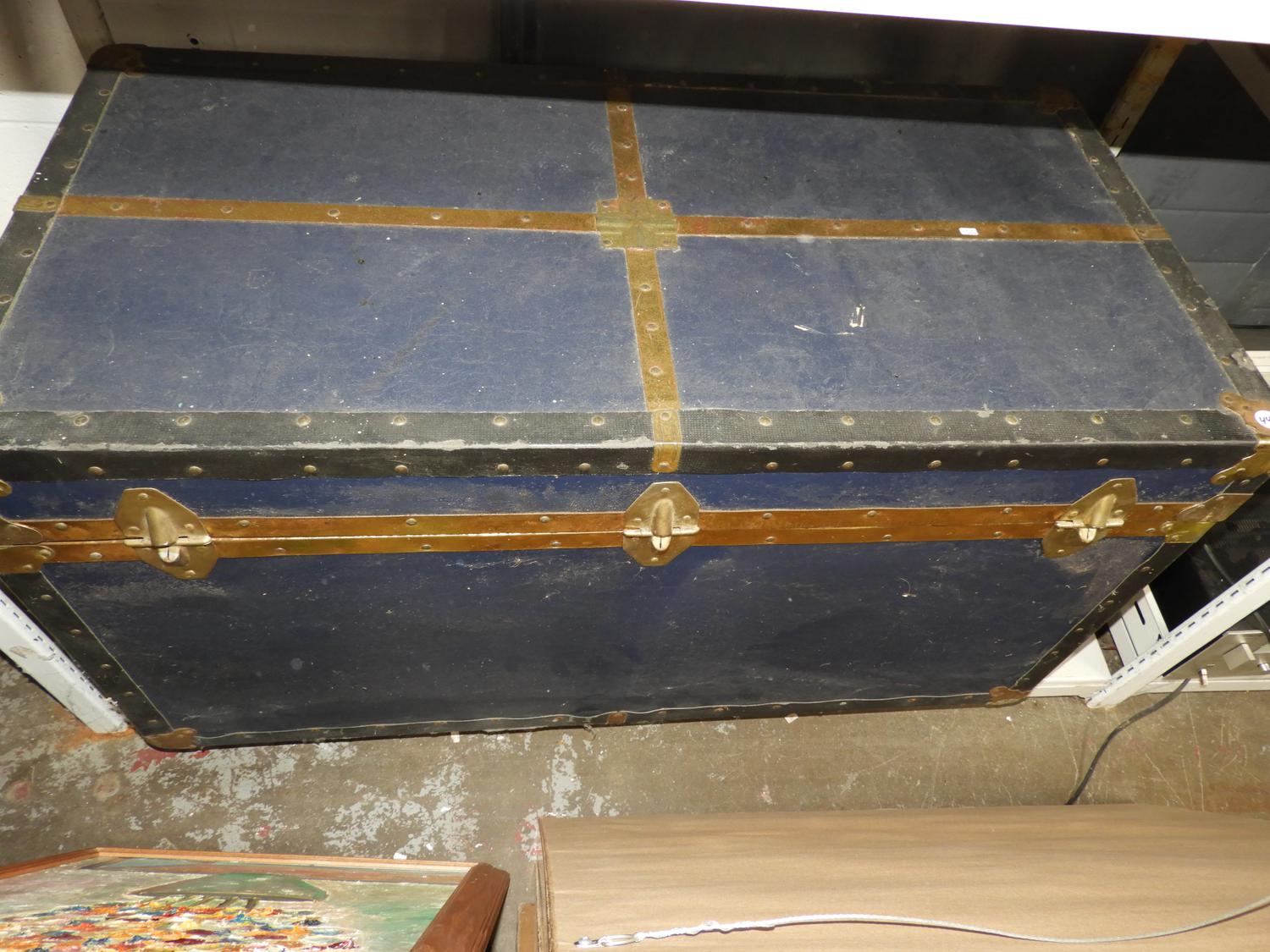 blue steamer trunk, 20 1/2" x 40" x 20"