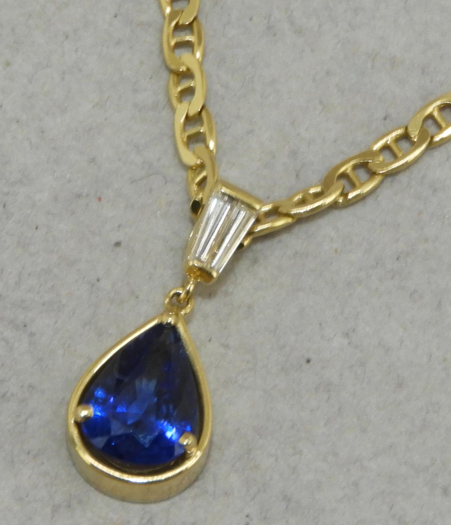 sapphire diamond 18k yellow gold pendant, 2.82cts sapphire, chain w/a 9.1grams