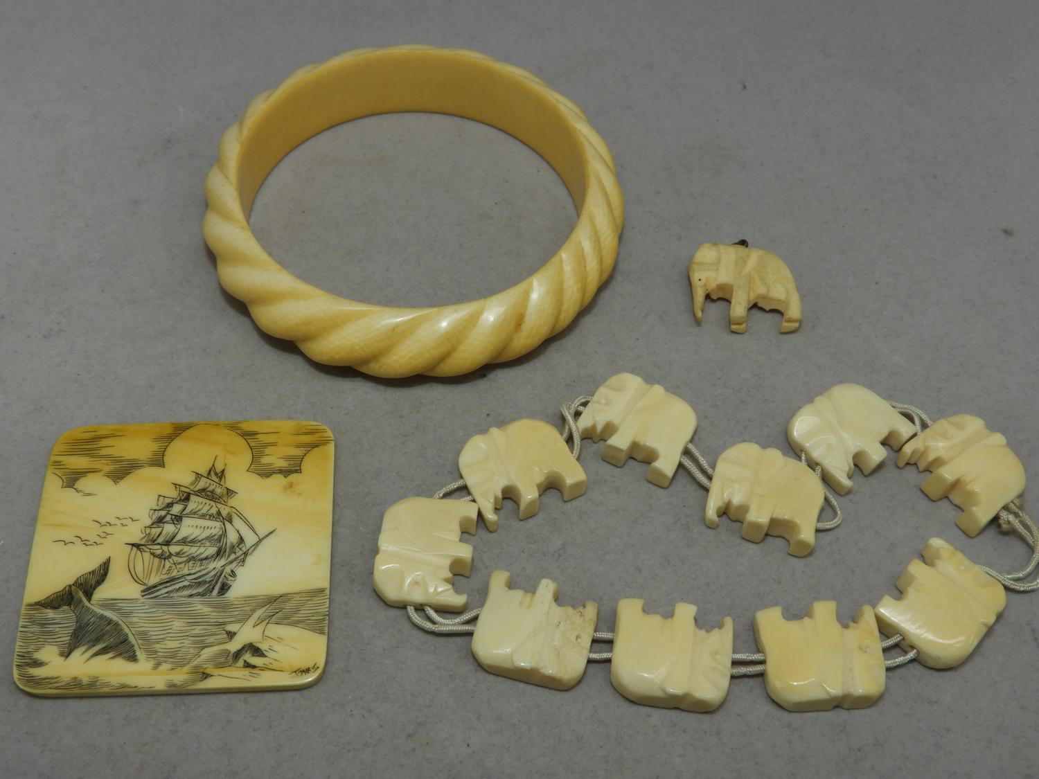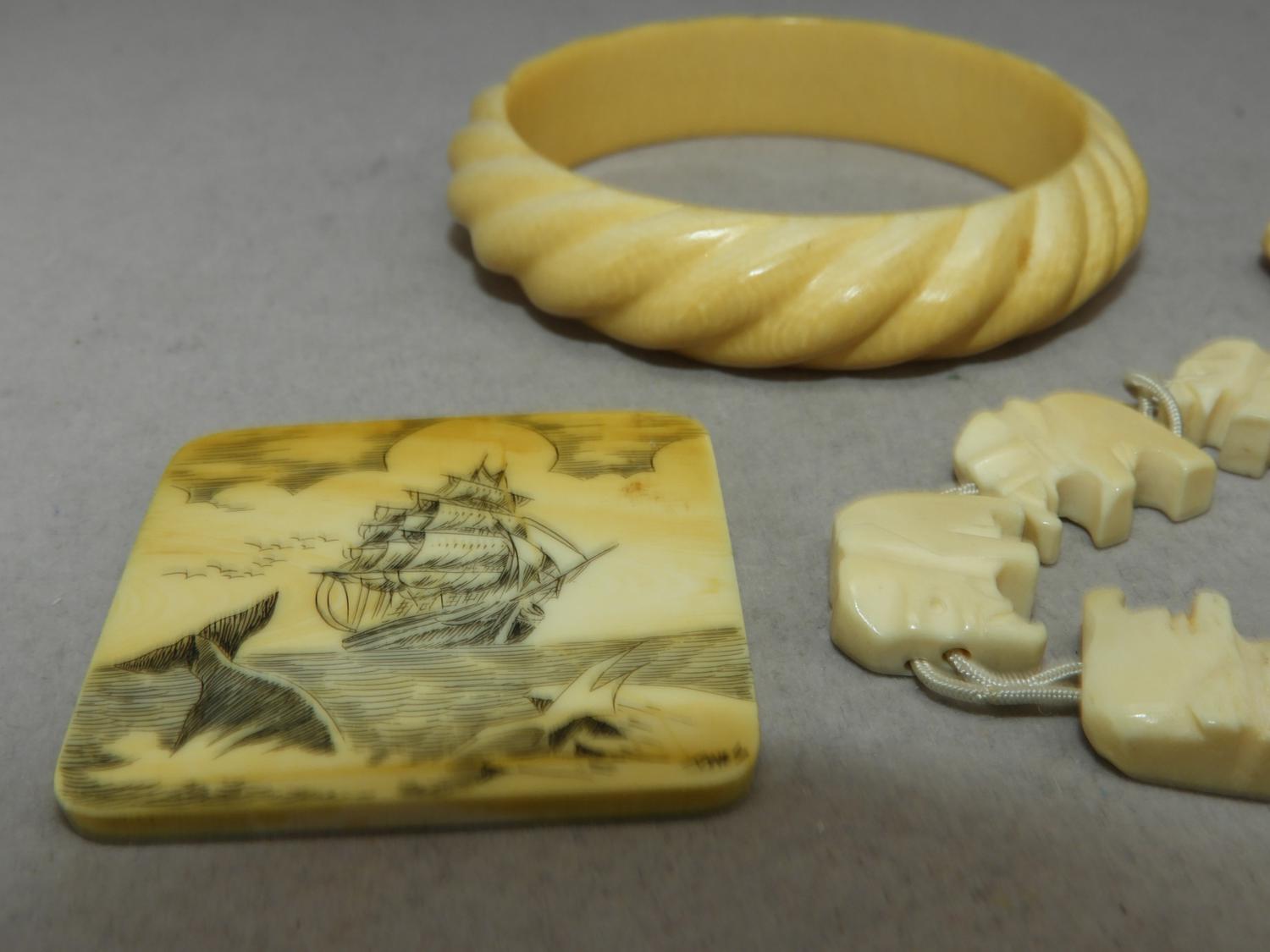 ivory bangle, bracelet, french ivory etched panel