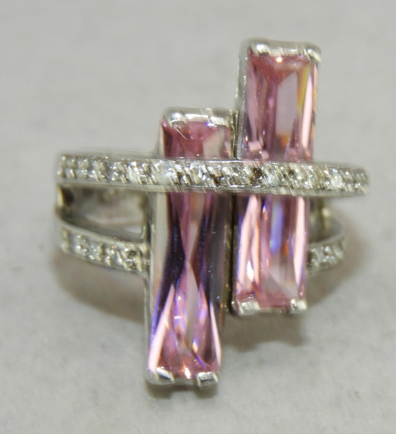 sterling silver pink crystal ring