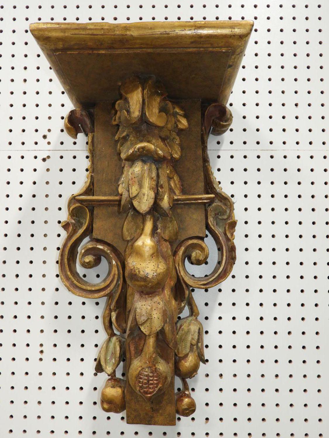 continental carved and gilded wall bracket, 19th century, 24" x 12" x 9"