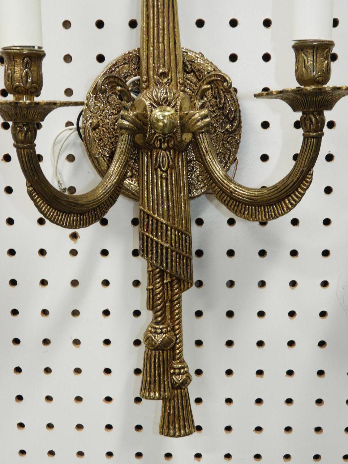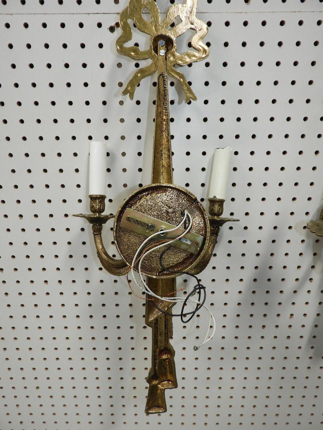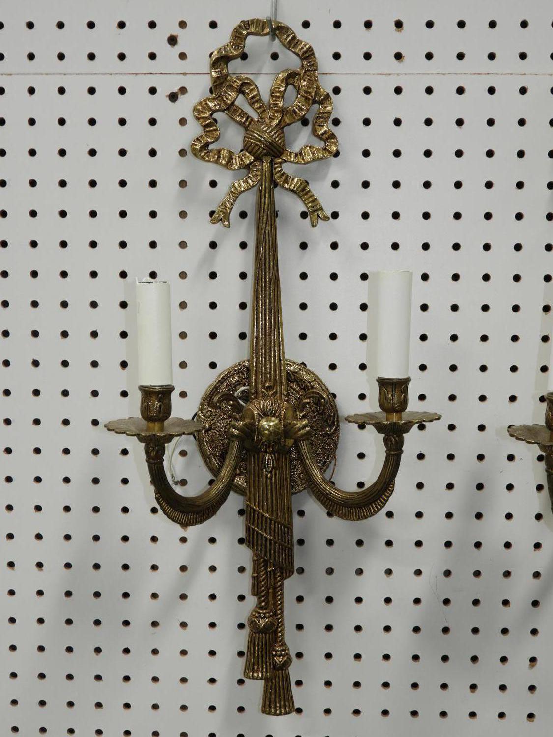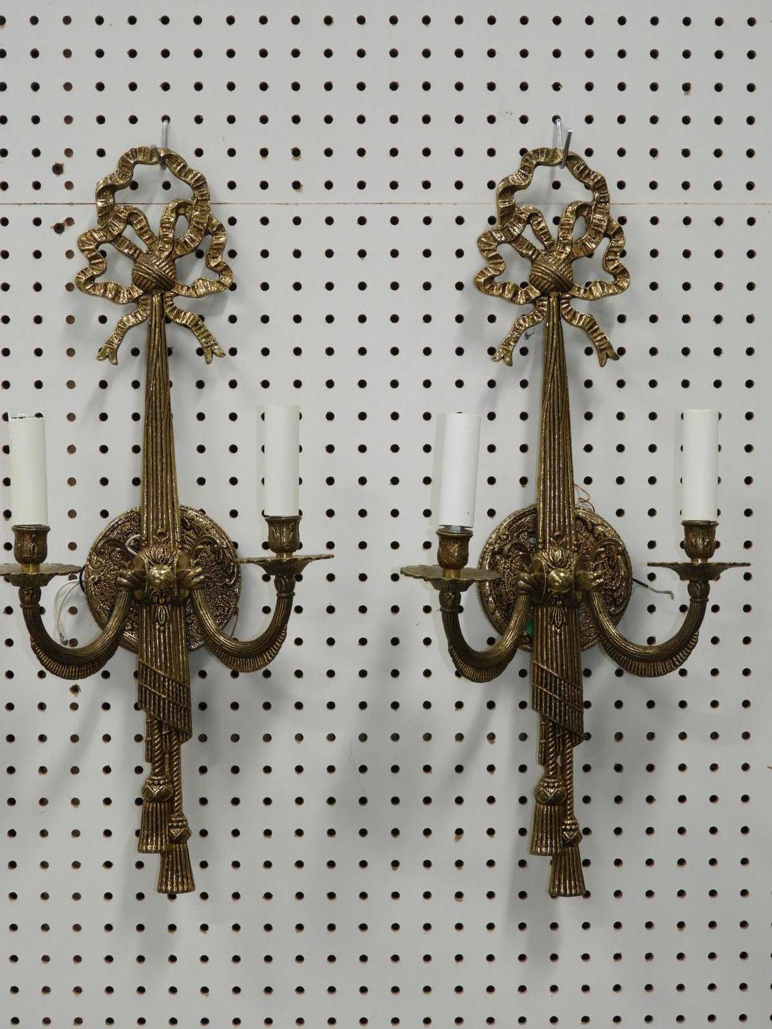 pair of louis xvi style two branch wall sconces, 20th century, 22" x 10" x 5"