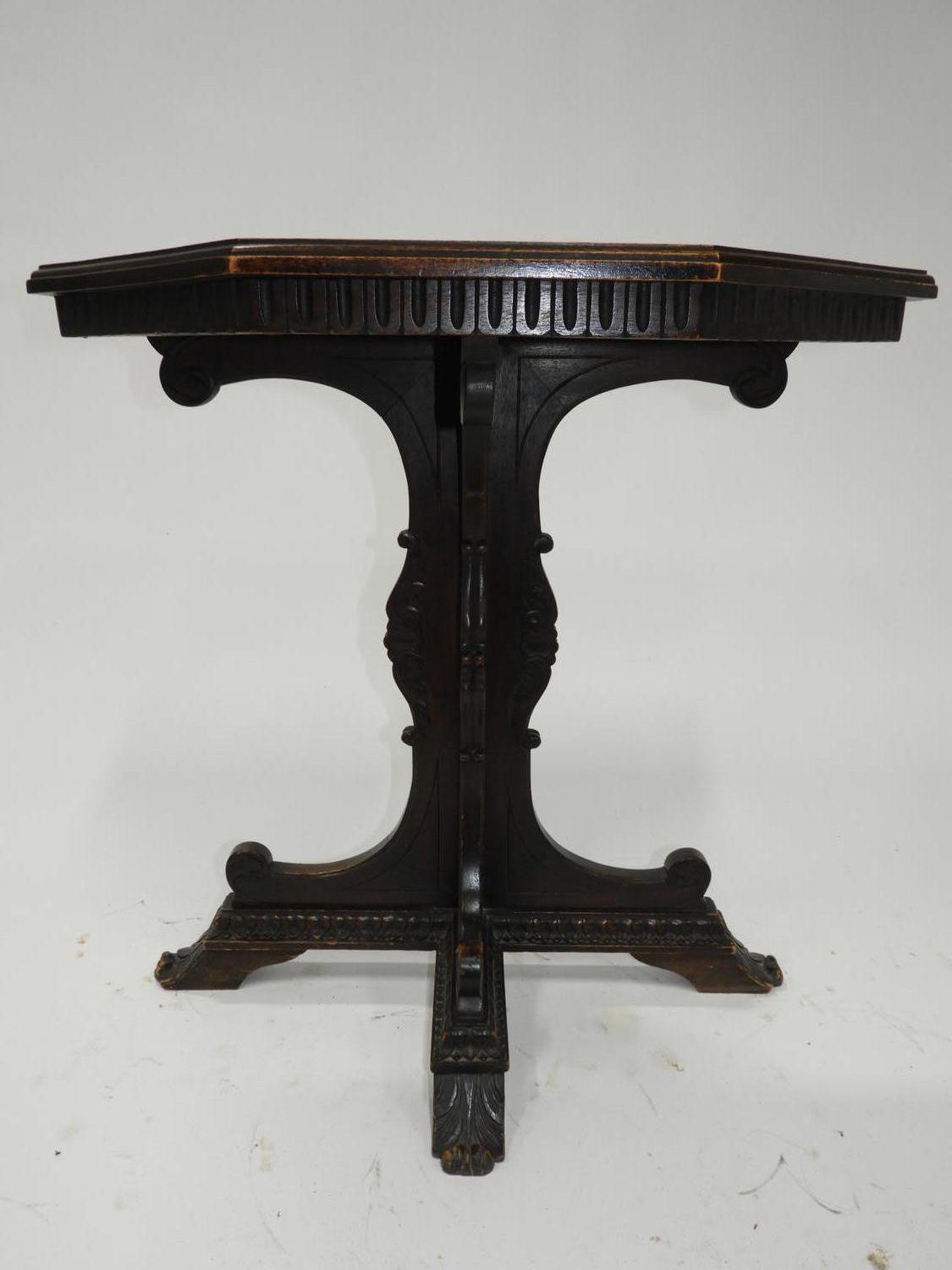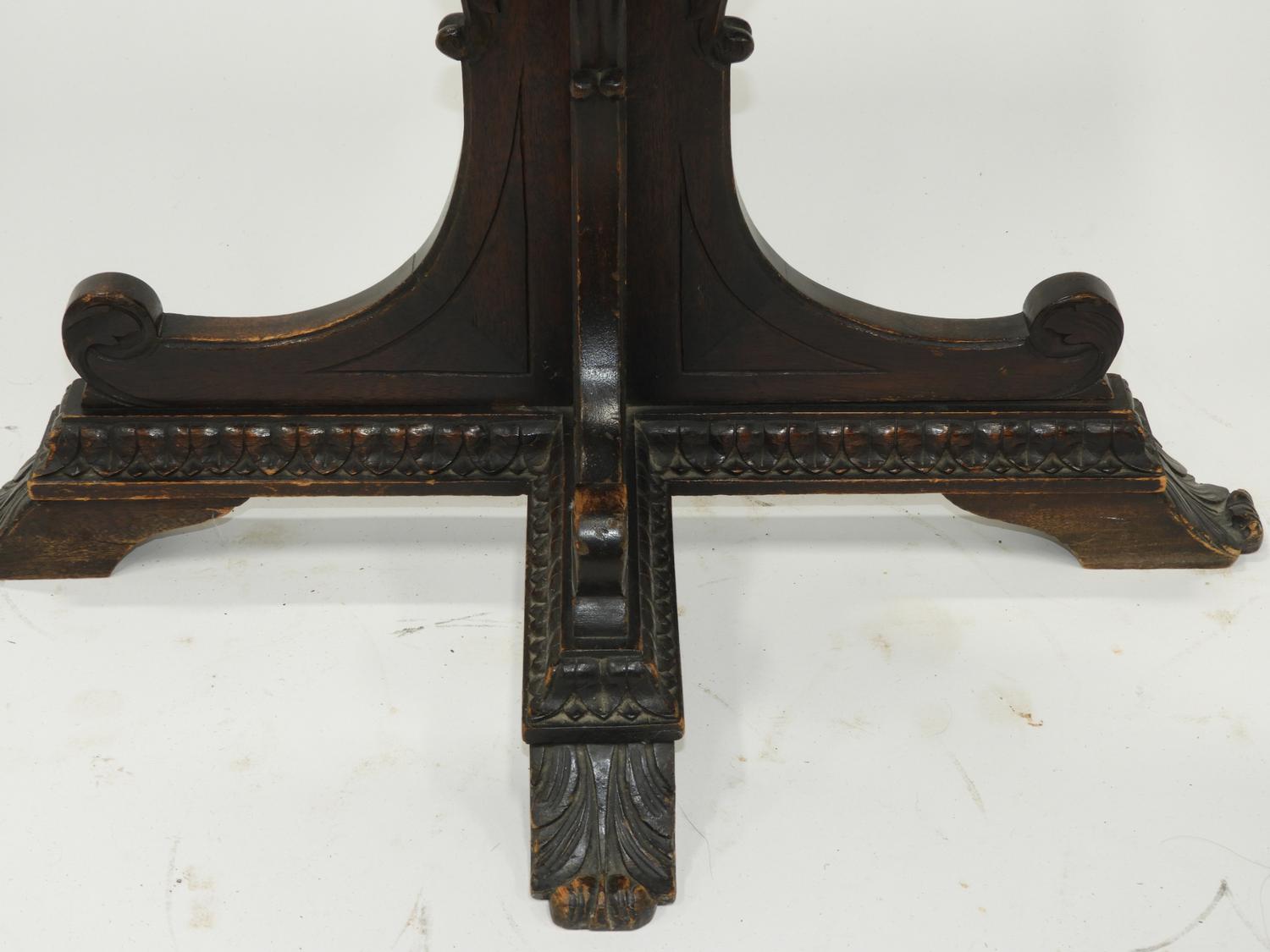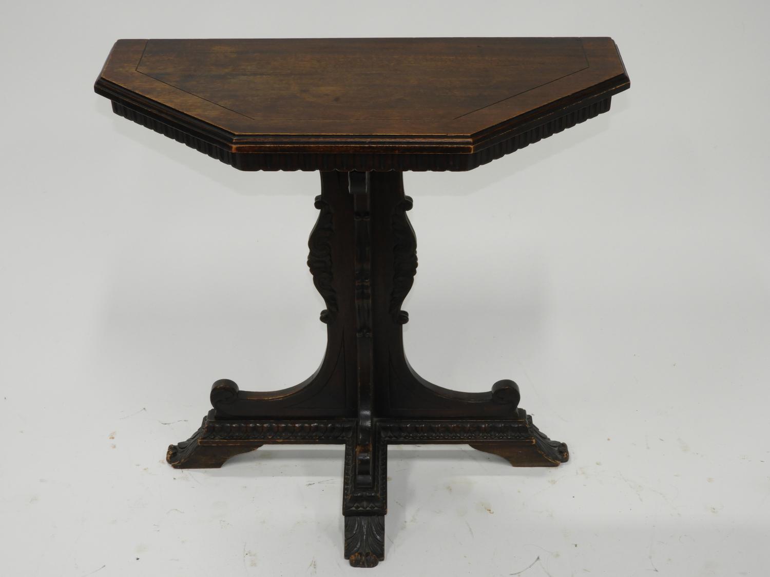 carved oak pedestal console table, early 20th century, 25" x 25 1/2" x 12 1/2"