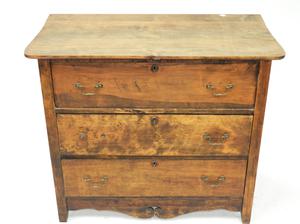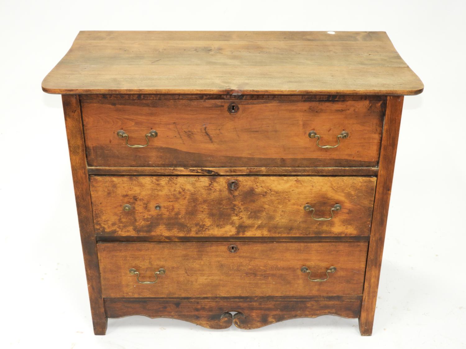 fruitwood three drawer chest of drawers, late 19th century, 30" x 35" x 18 1/2"