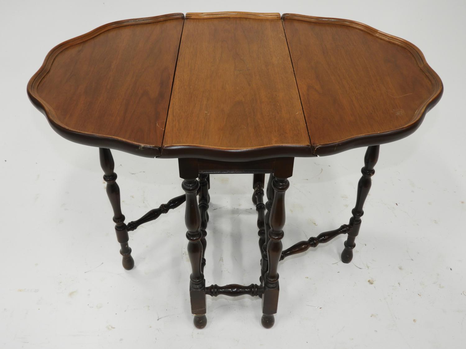 walnut drop leaf gate leg side table, mid 20th century, 20" x 27" x 20"