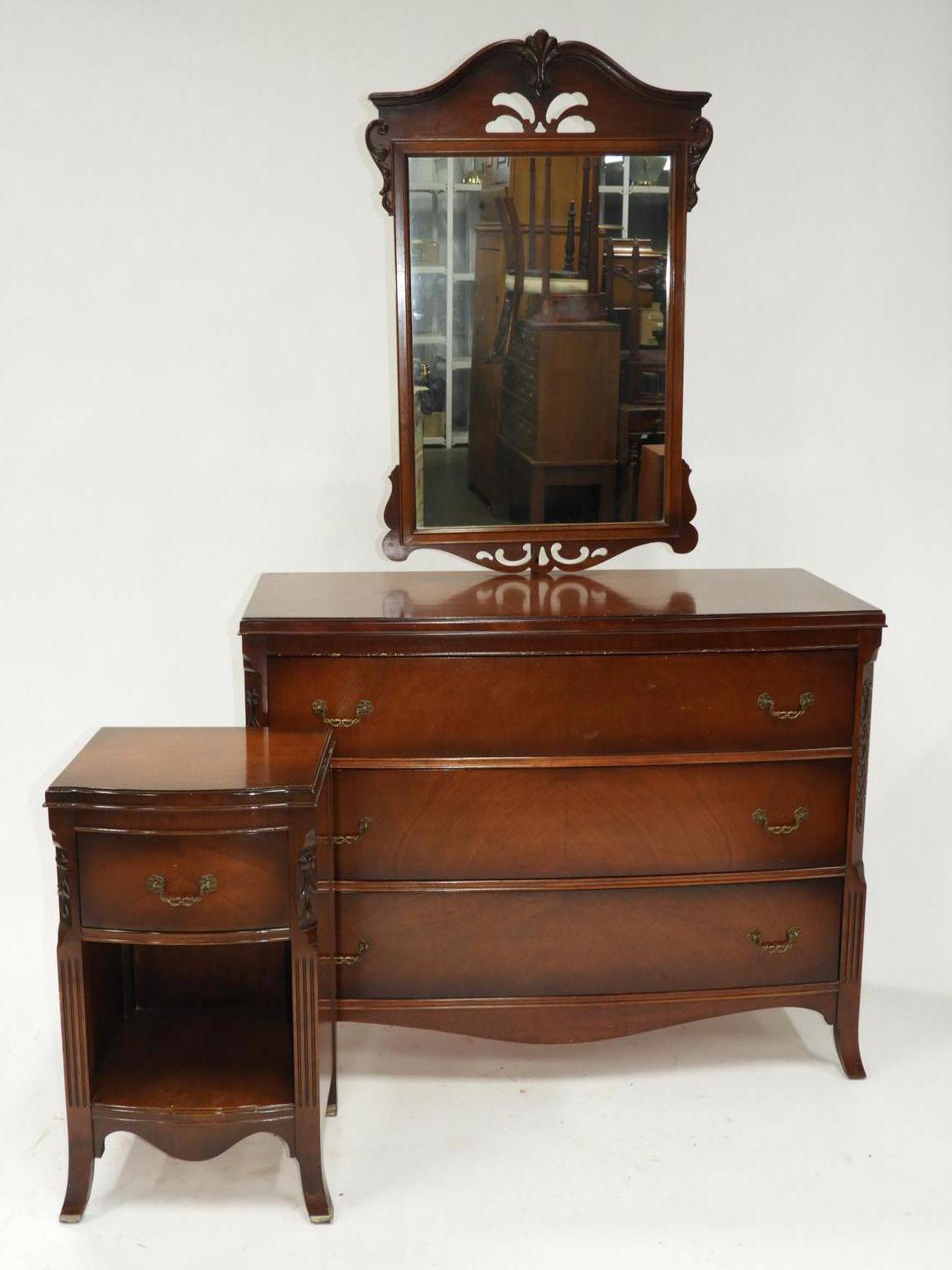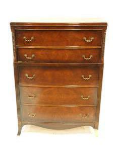 gibbard walnut bedroom suite, dresser, bedside table, hiboy, complete 54" bed frame
