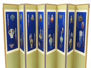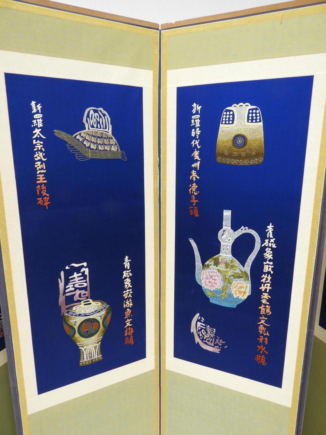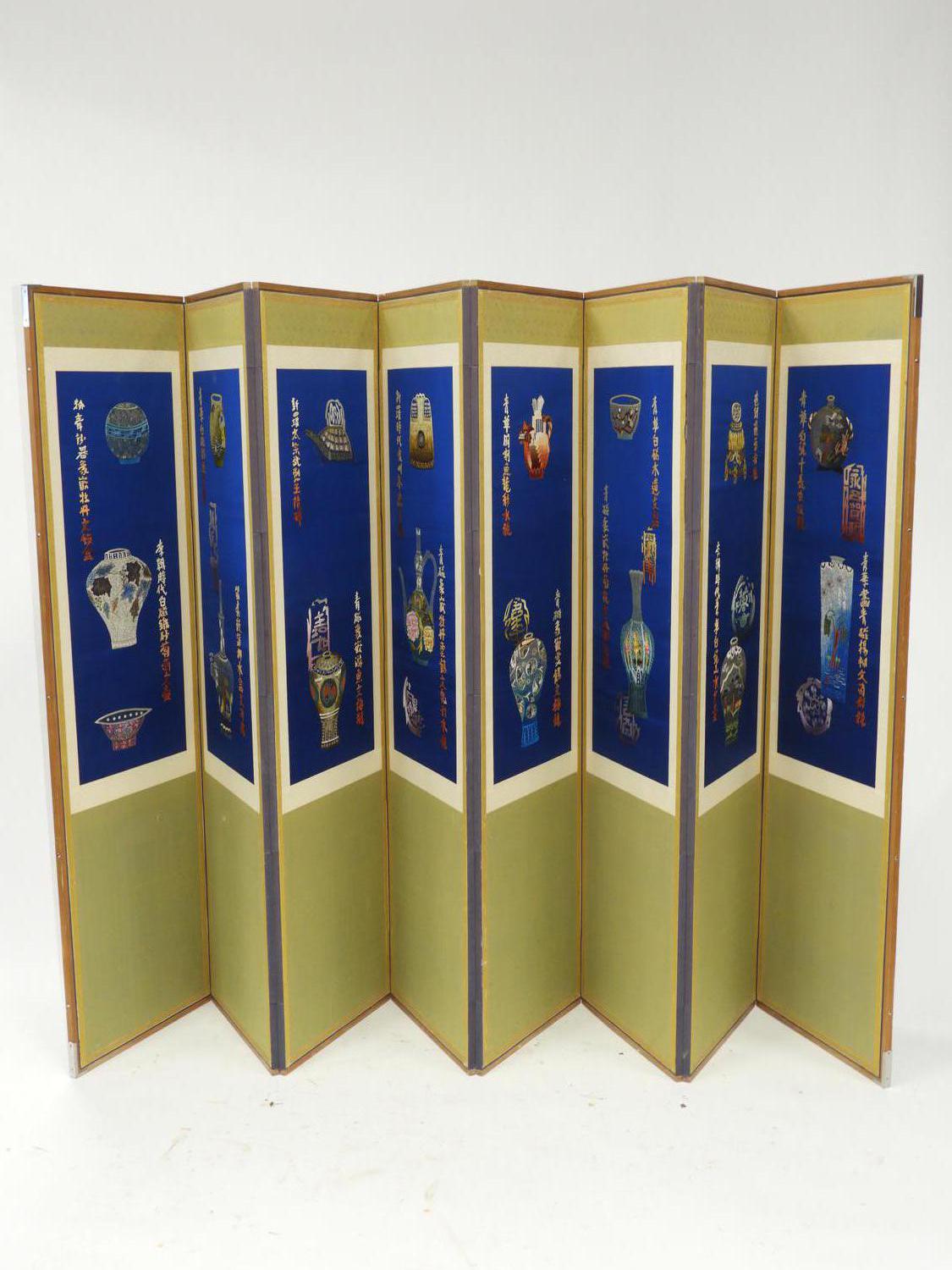 chinese eight panel silk embroidered screen, early 20th century, 65 1/2" x 144"