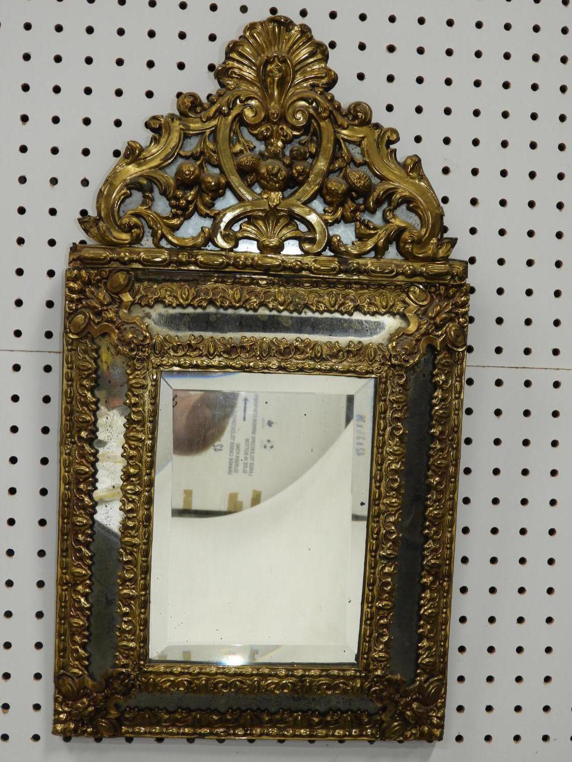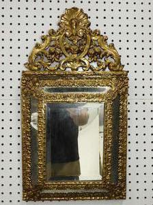 dutch brass repousse mirror, 19th century, 22 1/2" x 13"