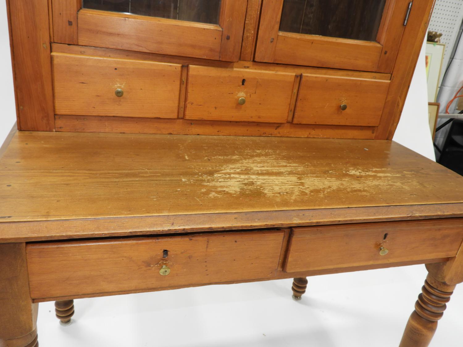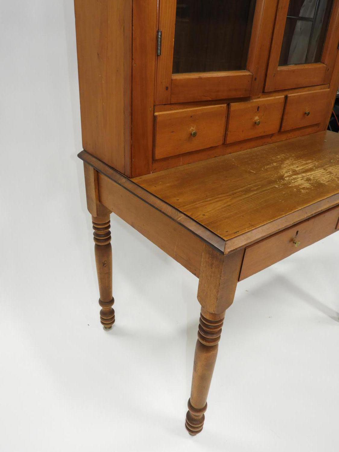 pine writing table bookcase, ontario, c.1900, 75 1/2" x 36 1/2" x 23 1/2"