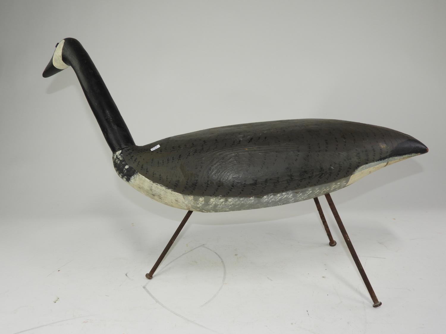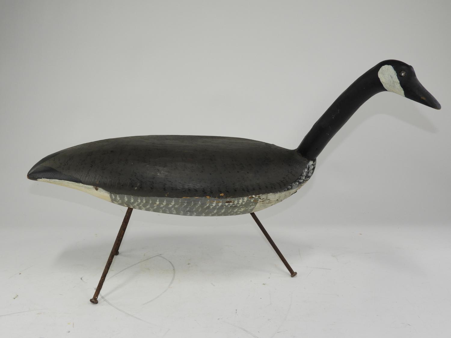 carved and painted canada goose decoy, incsribed l.n. oliveer, pei