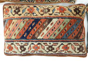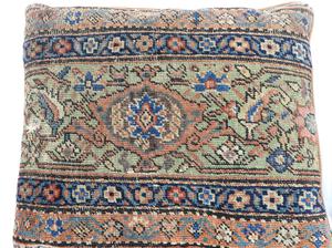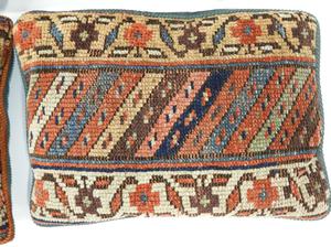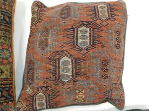 four rug cushions, antique persian and caucasian fragments, 20" x 18" and smaller