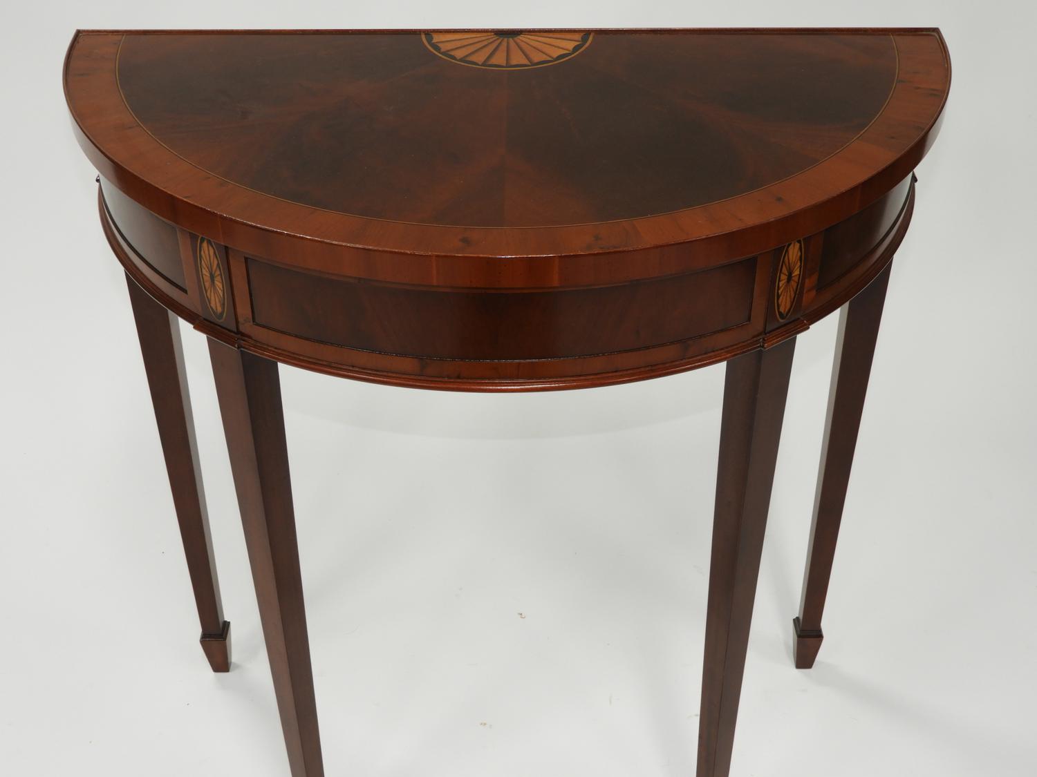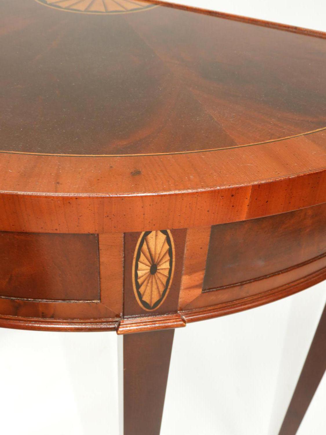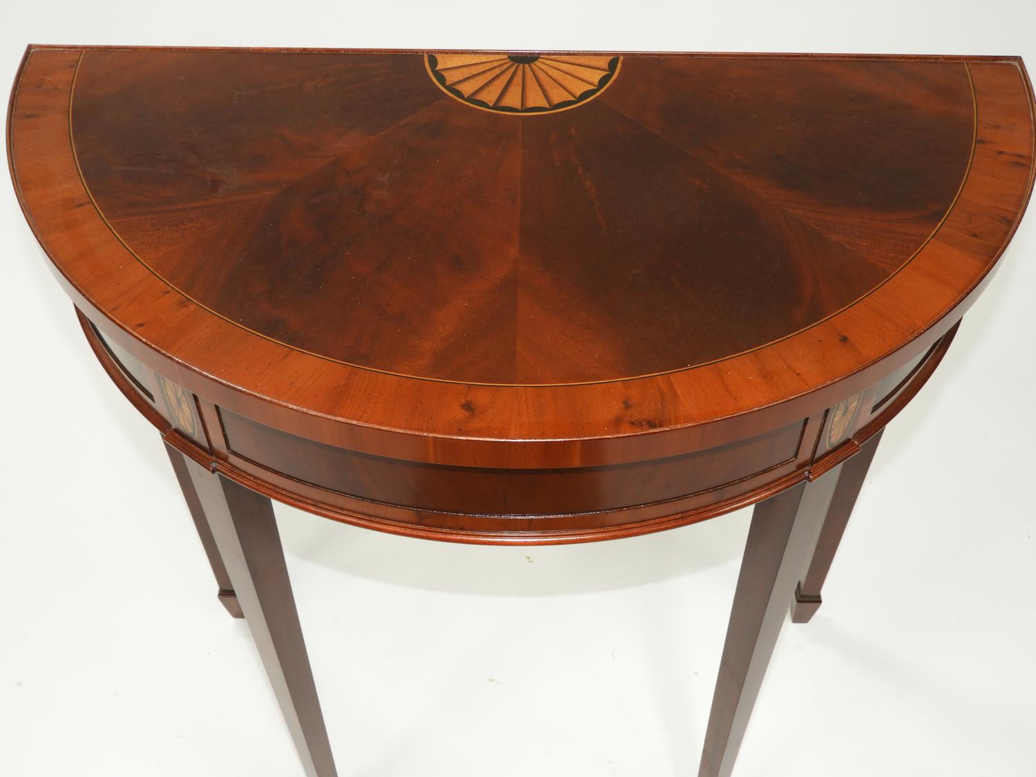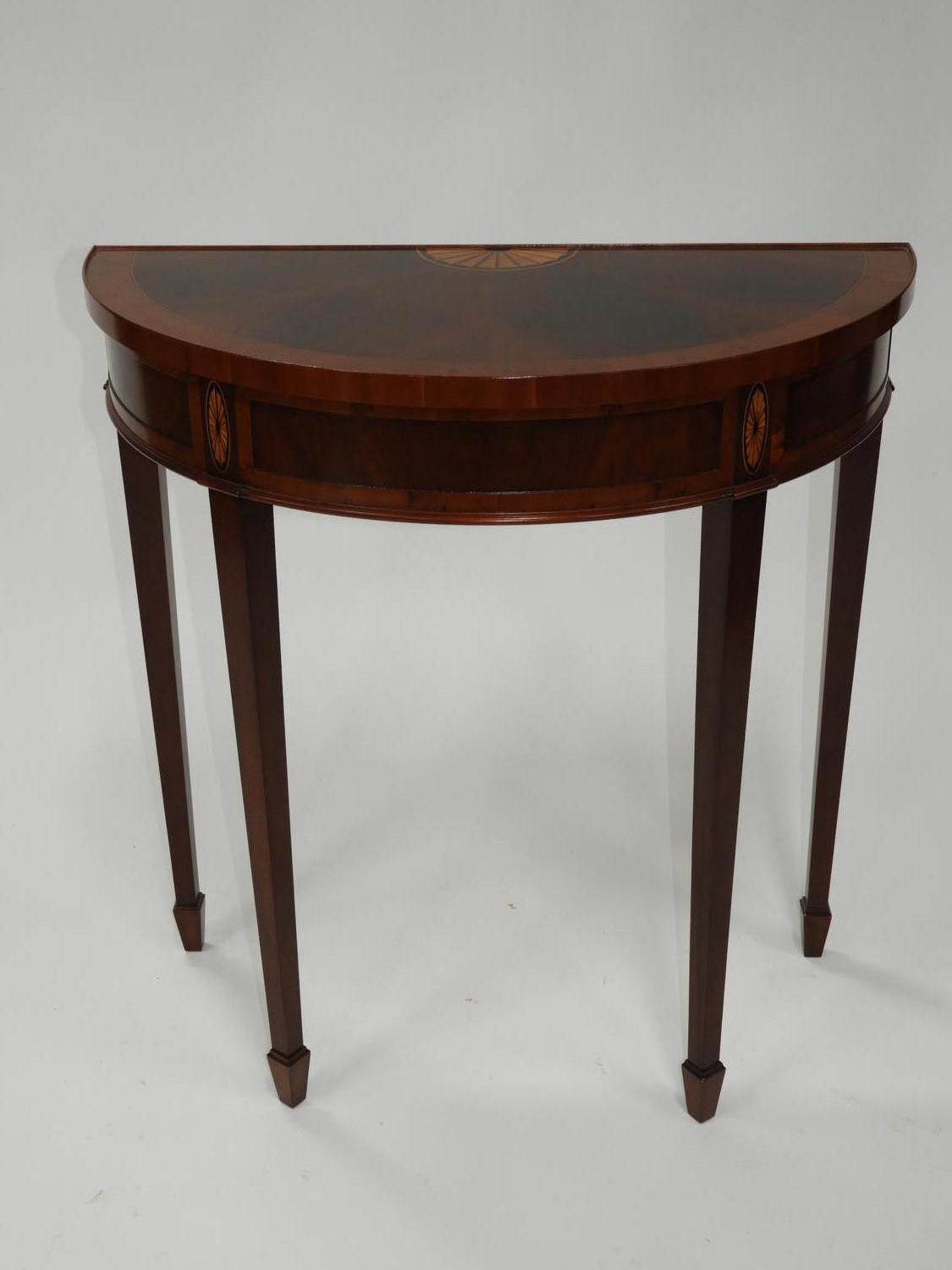 inlaid mahogany demi-lune console table, 31" x 30" x 15"