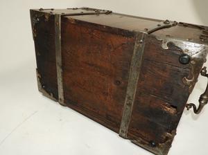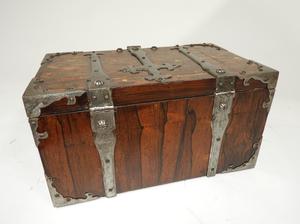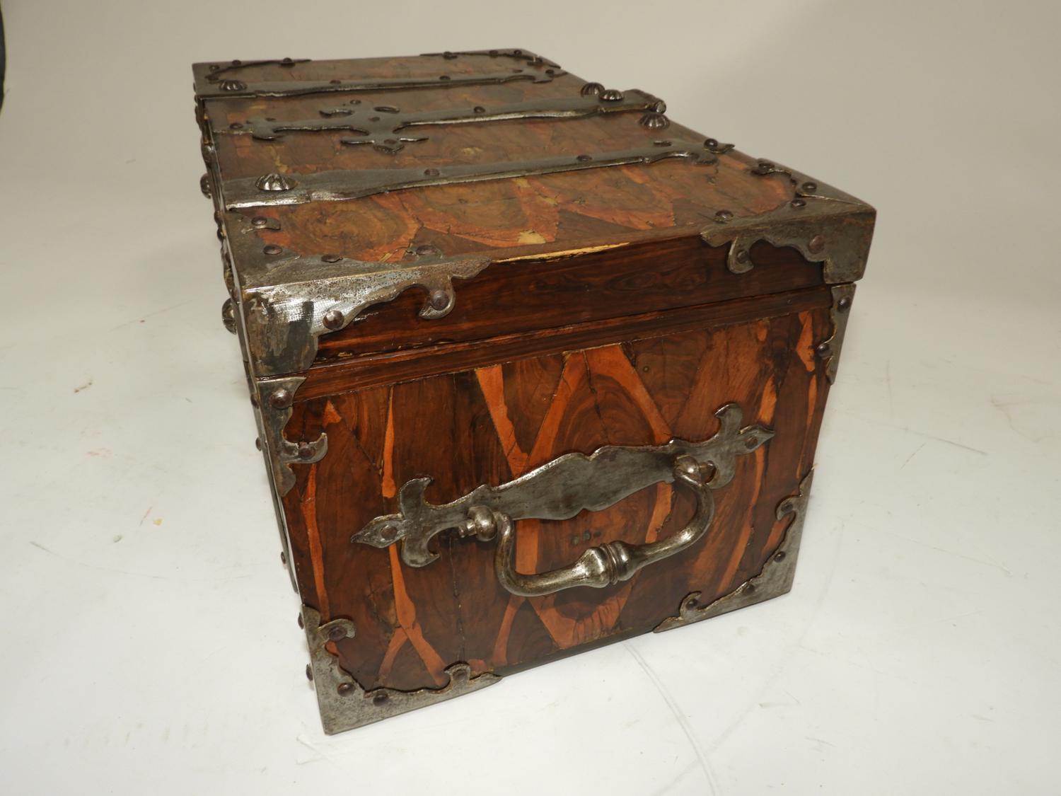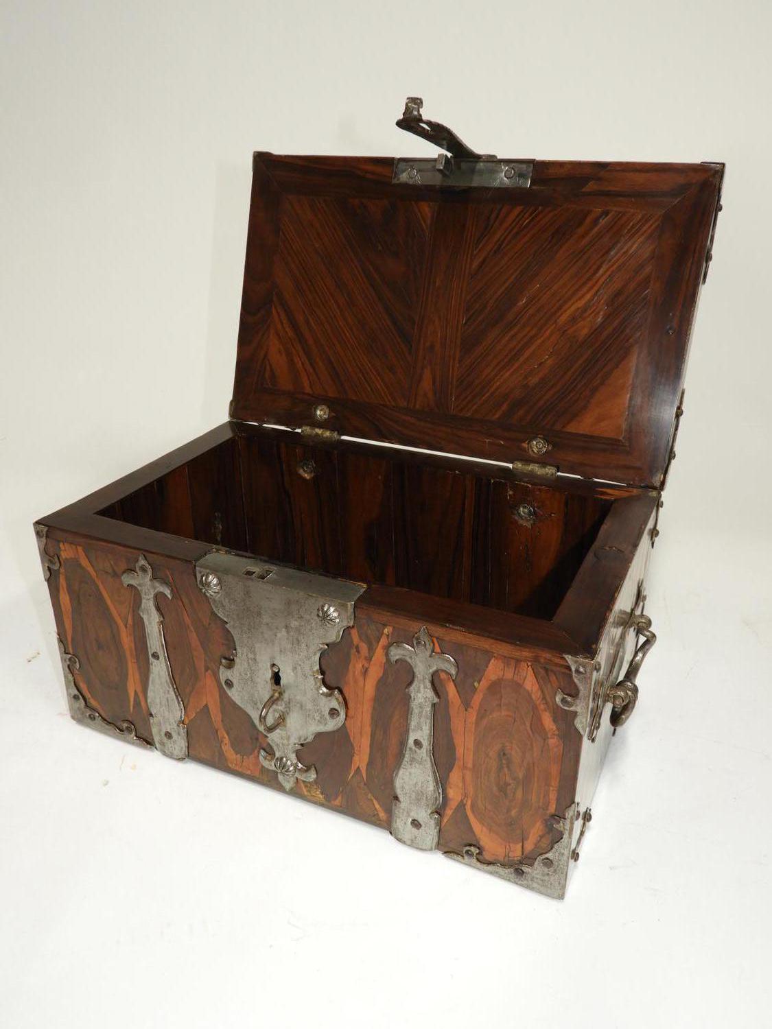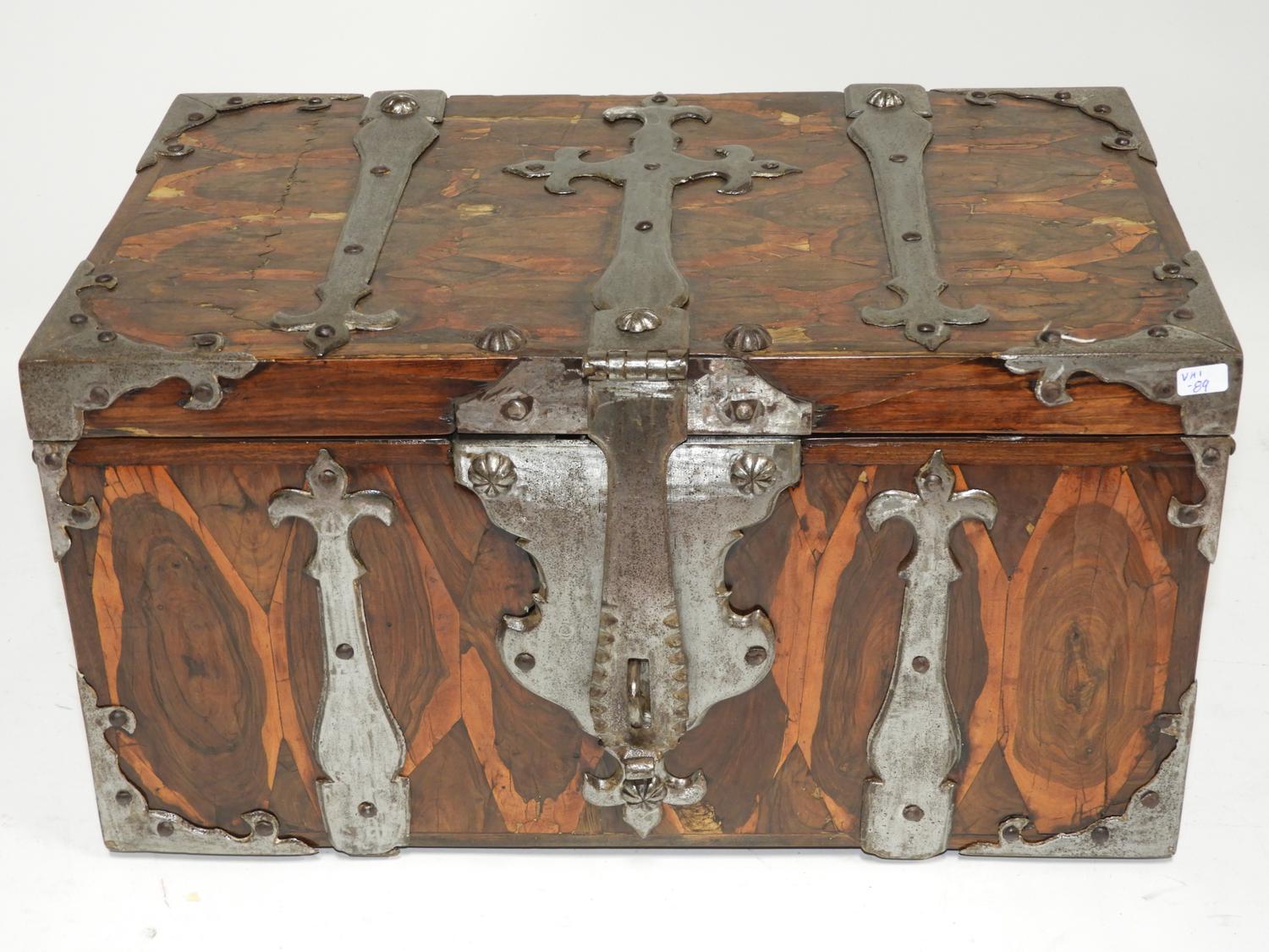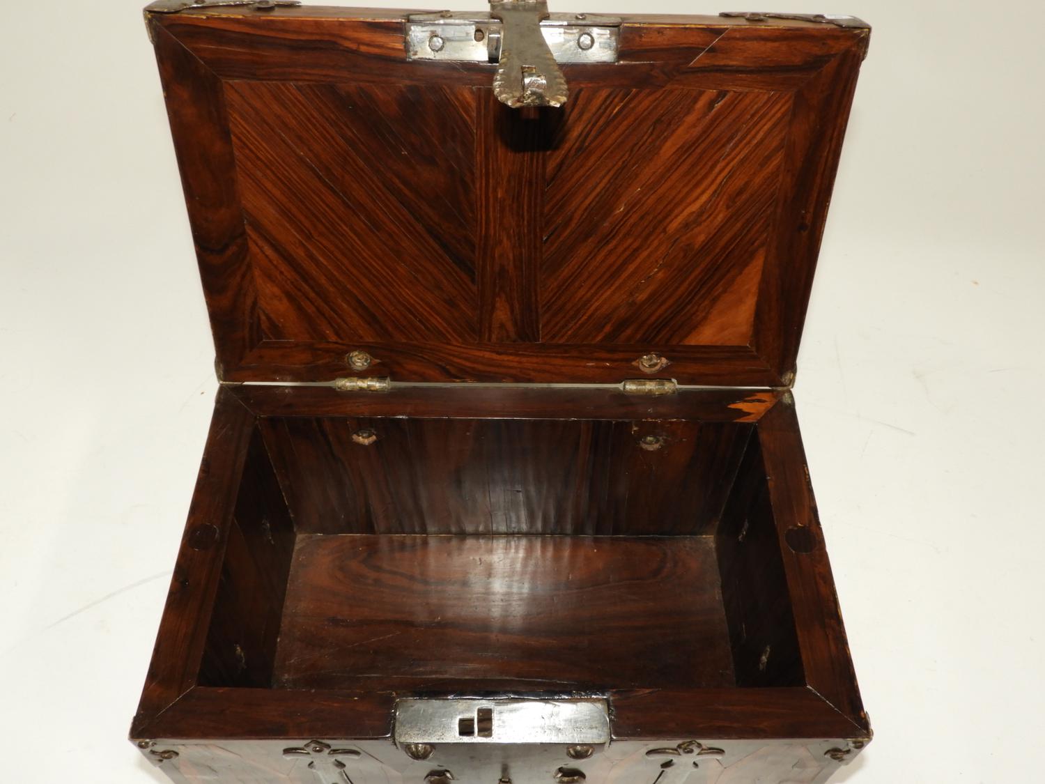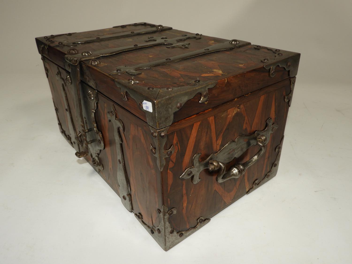 continental iron bound inlaid rosewood strong box, 18th/19th century, 8 1/2" x 16" x 9 1/2"