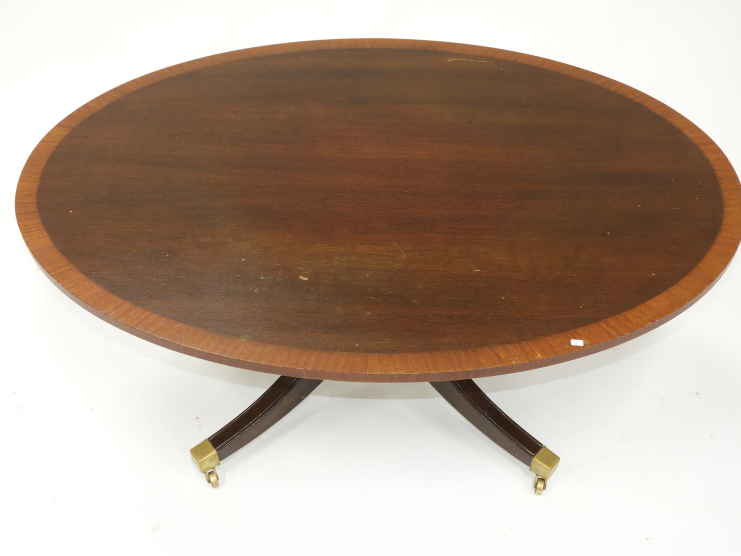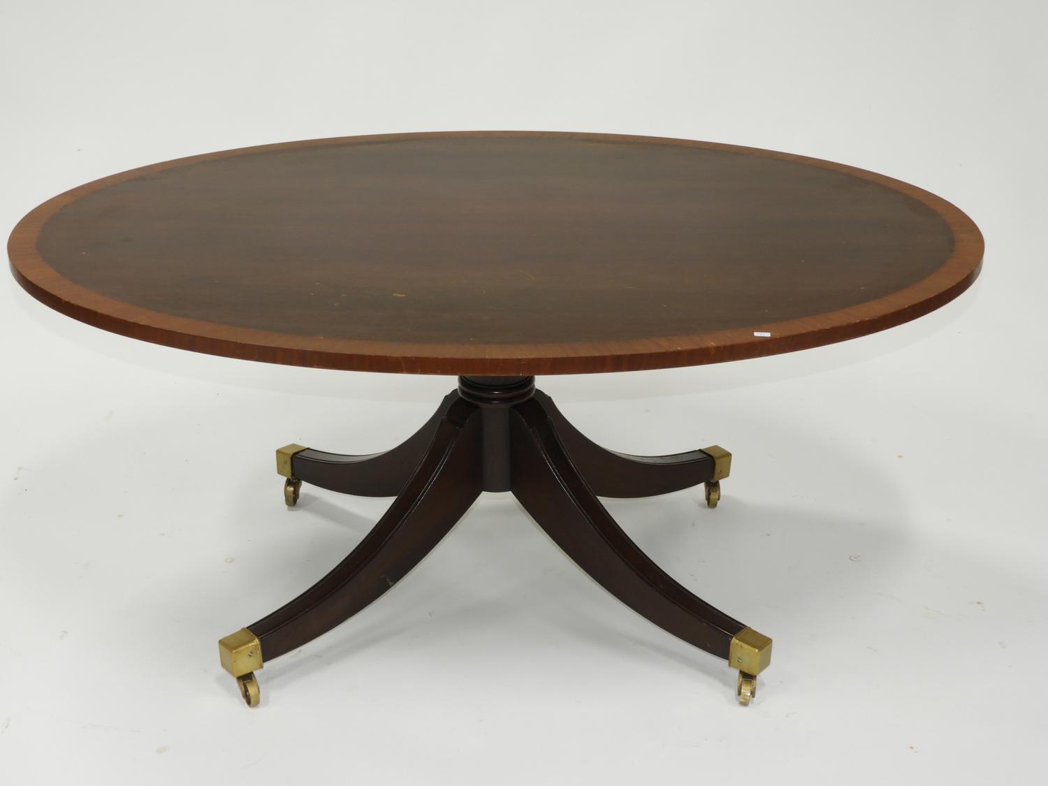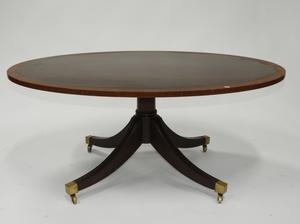 mahogany pedestal coffee table, in the 18th century english manner, mid 20th century, 19" x 44" x 30 1/2"