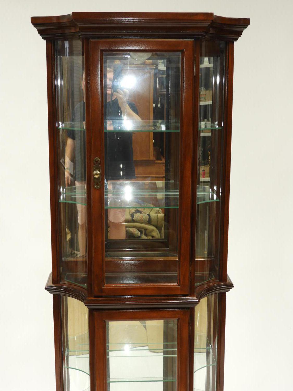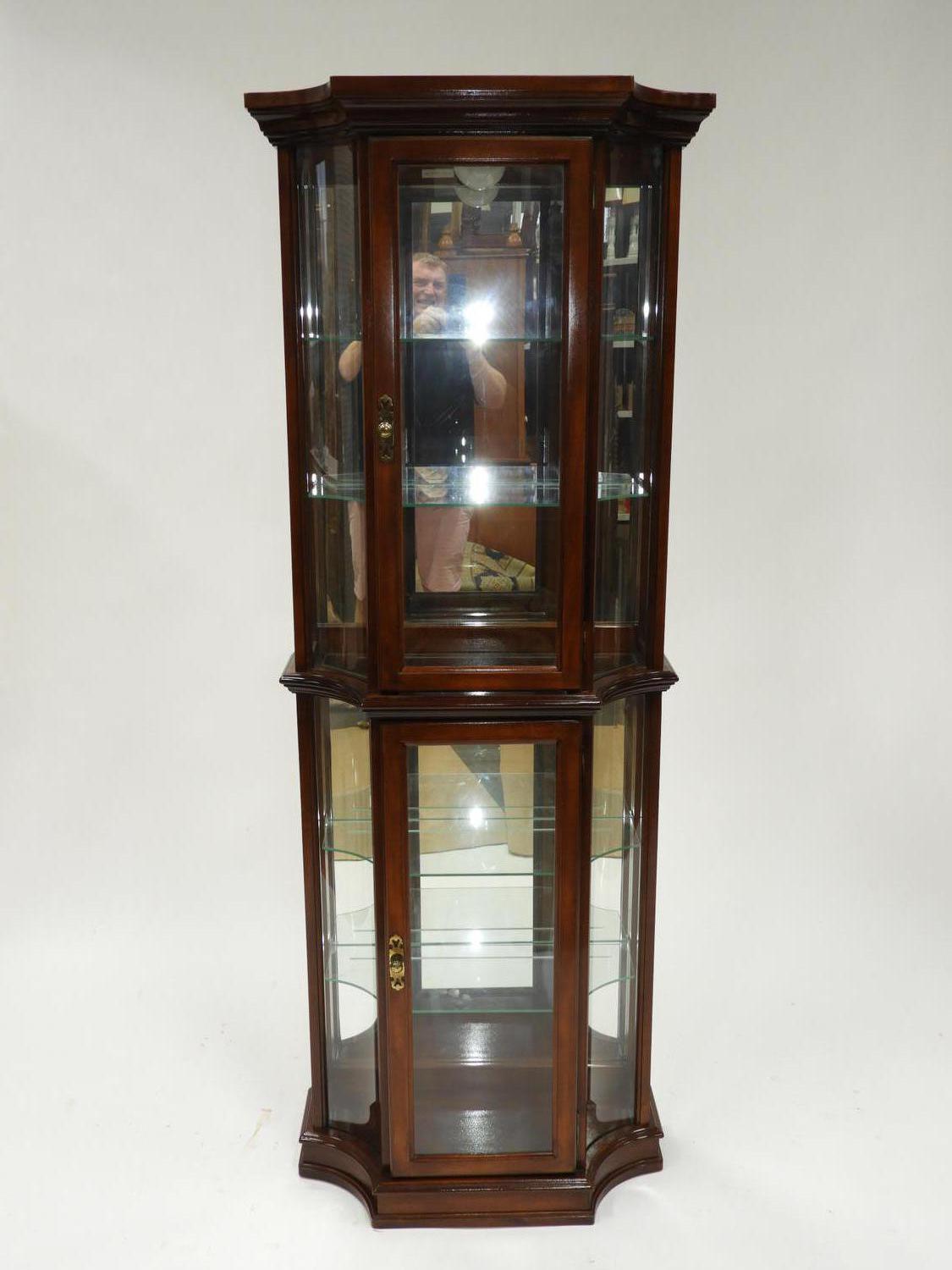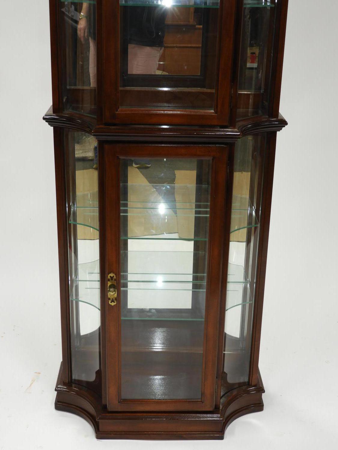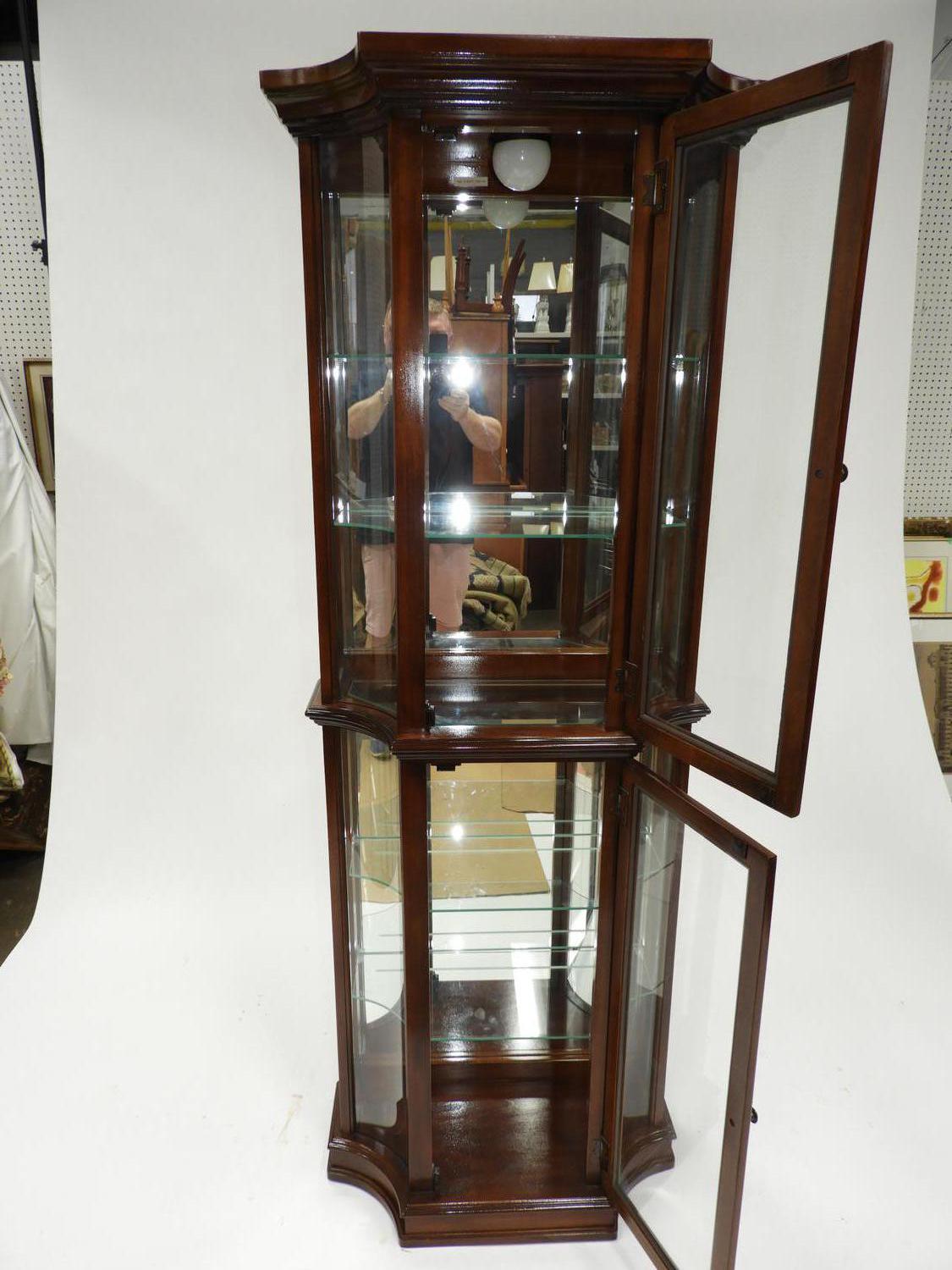 fruitwood glazed curio cabinet, electrified, mid/late 20th century, 72" x 27 1/2" x 17"
