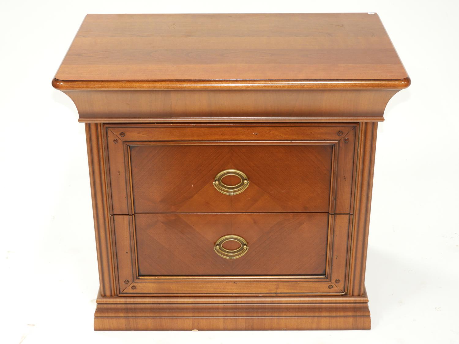 fruitwood parquetry inlaid two drawer side table, 27" x 29 1/2" x 18 1/2"