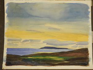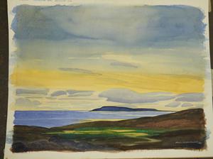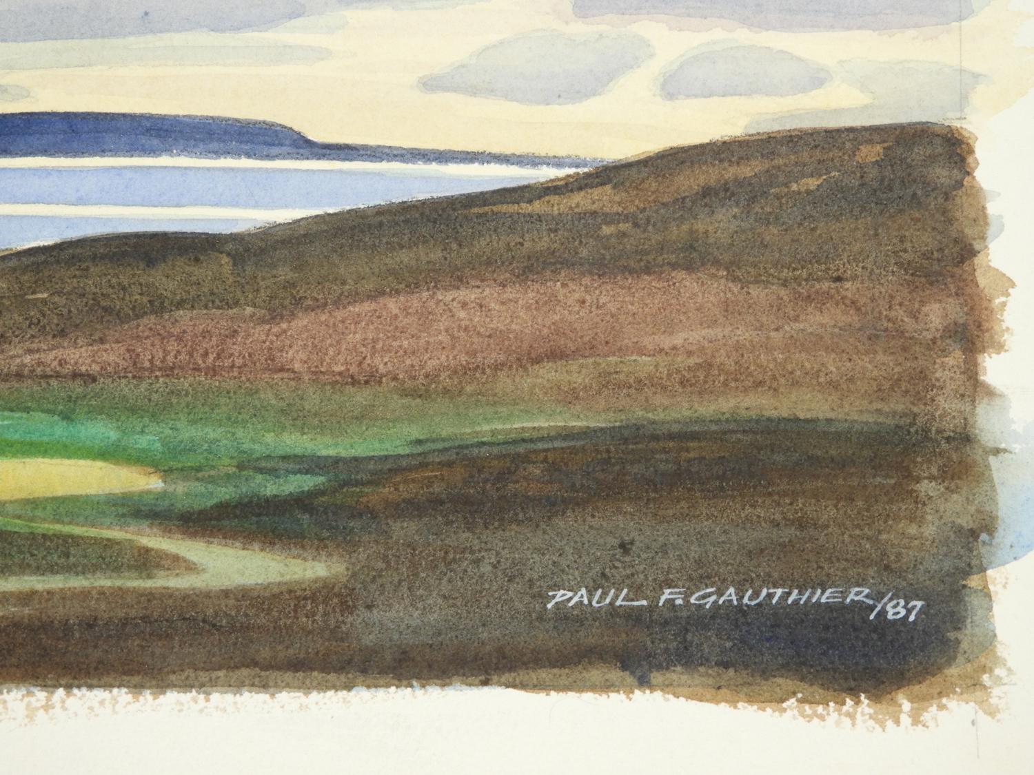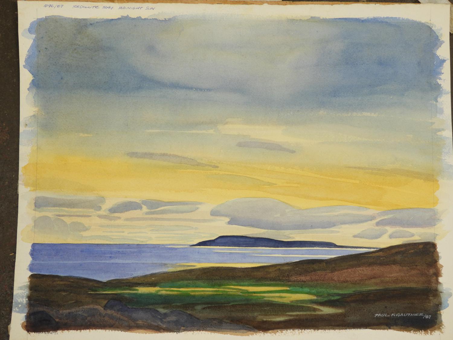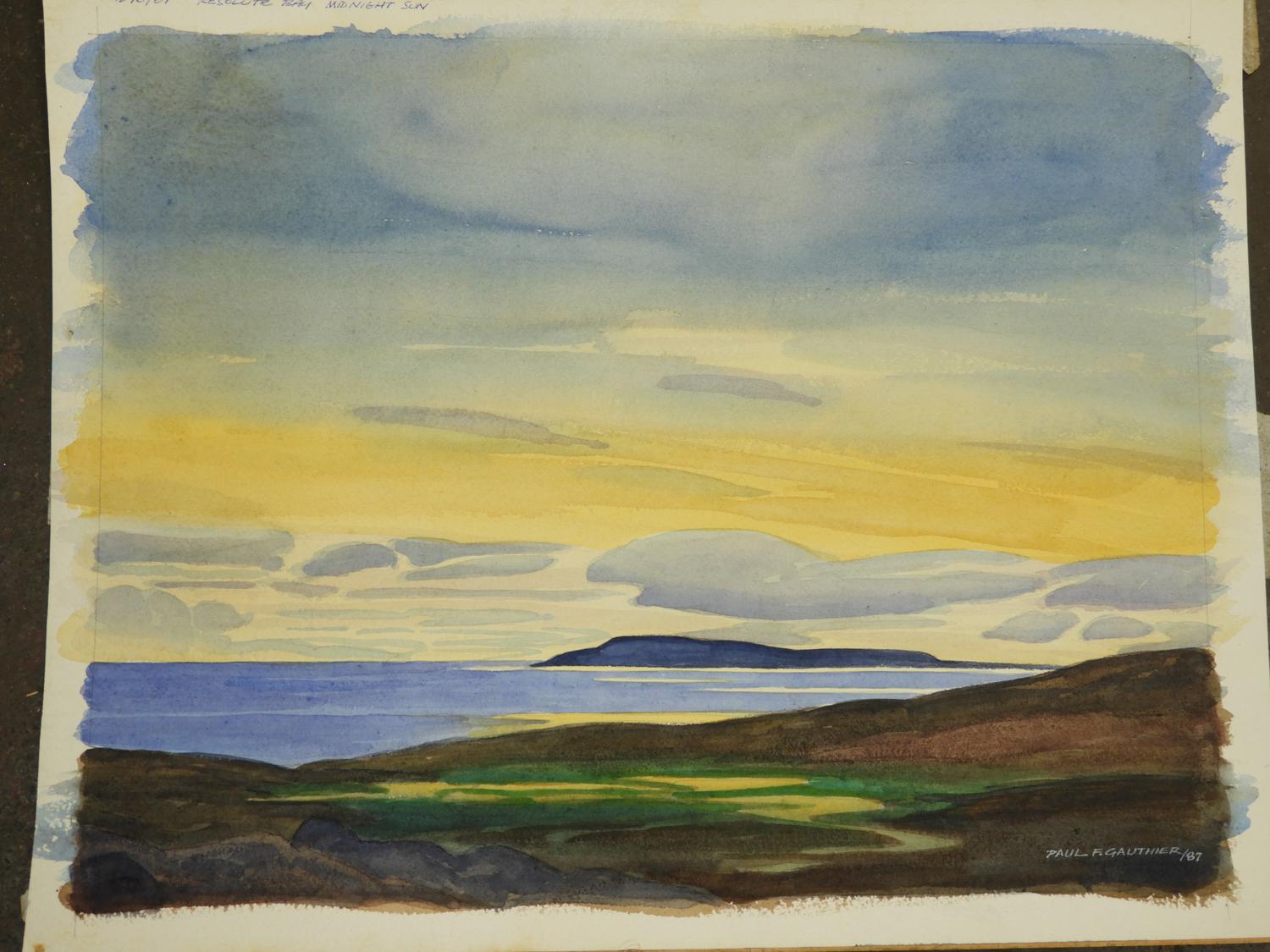 paul f. gauthier (b. 1937), d.1987, unframed watercolour, 15 1/4" x 20", "resolute bay, midnight sun"