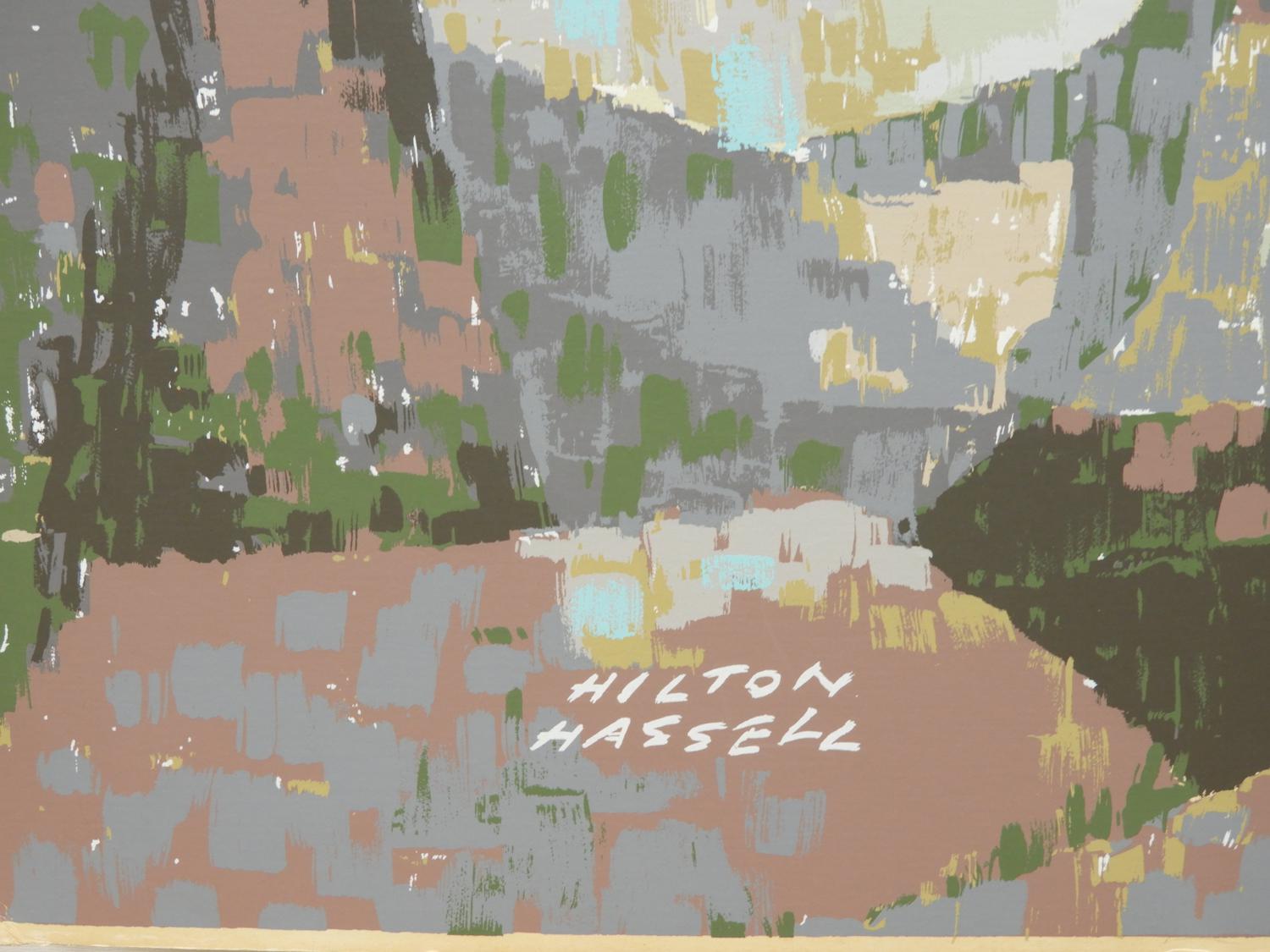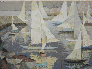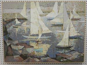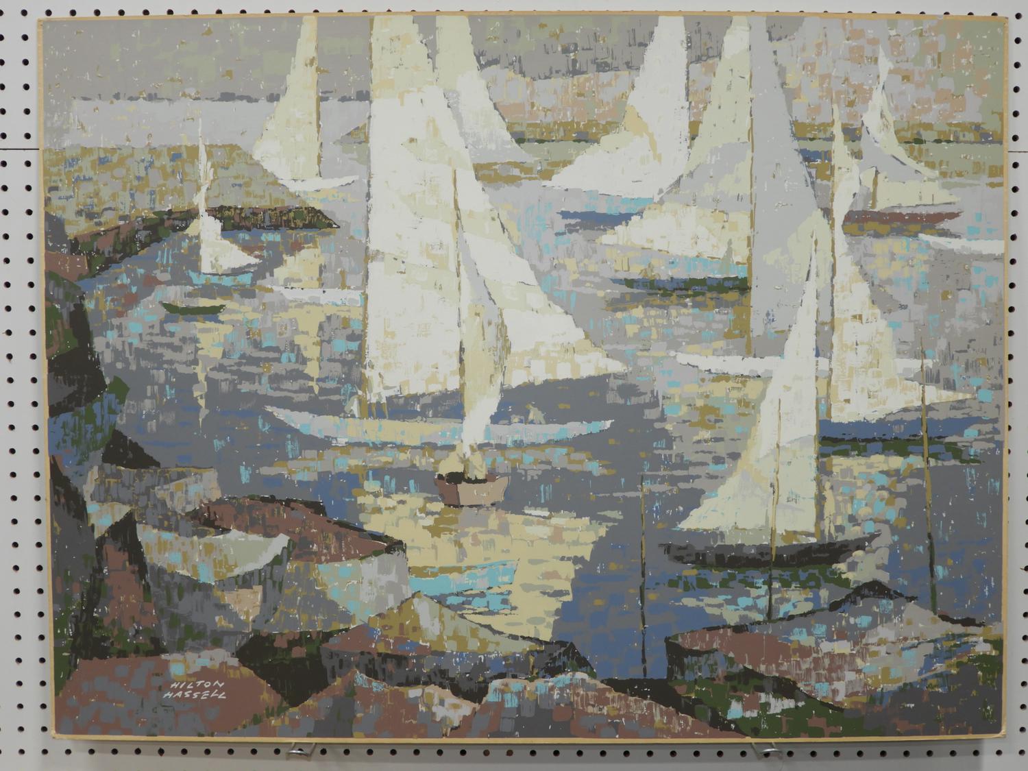 hilton macdonald hassel (1910-1980), silkscreen, 30" x 40", "decending sails - olympic sailing"