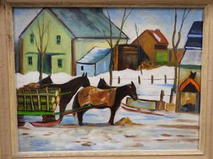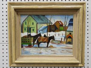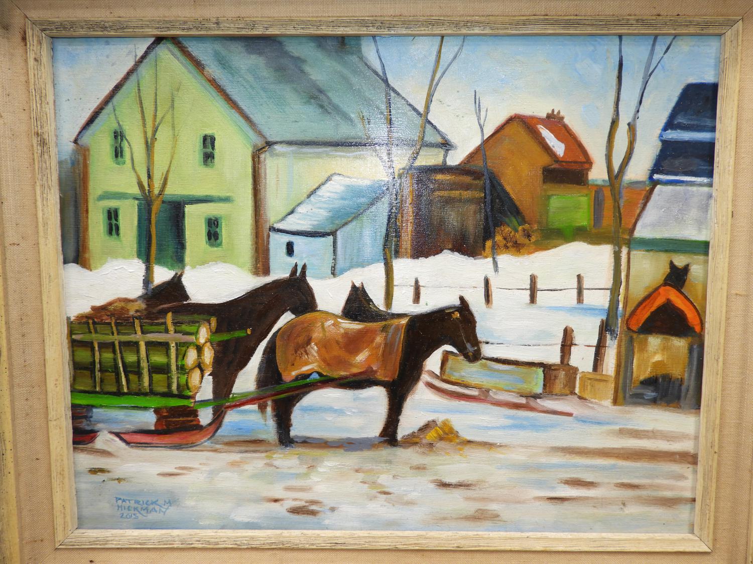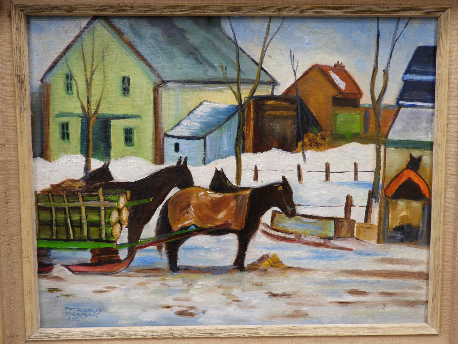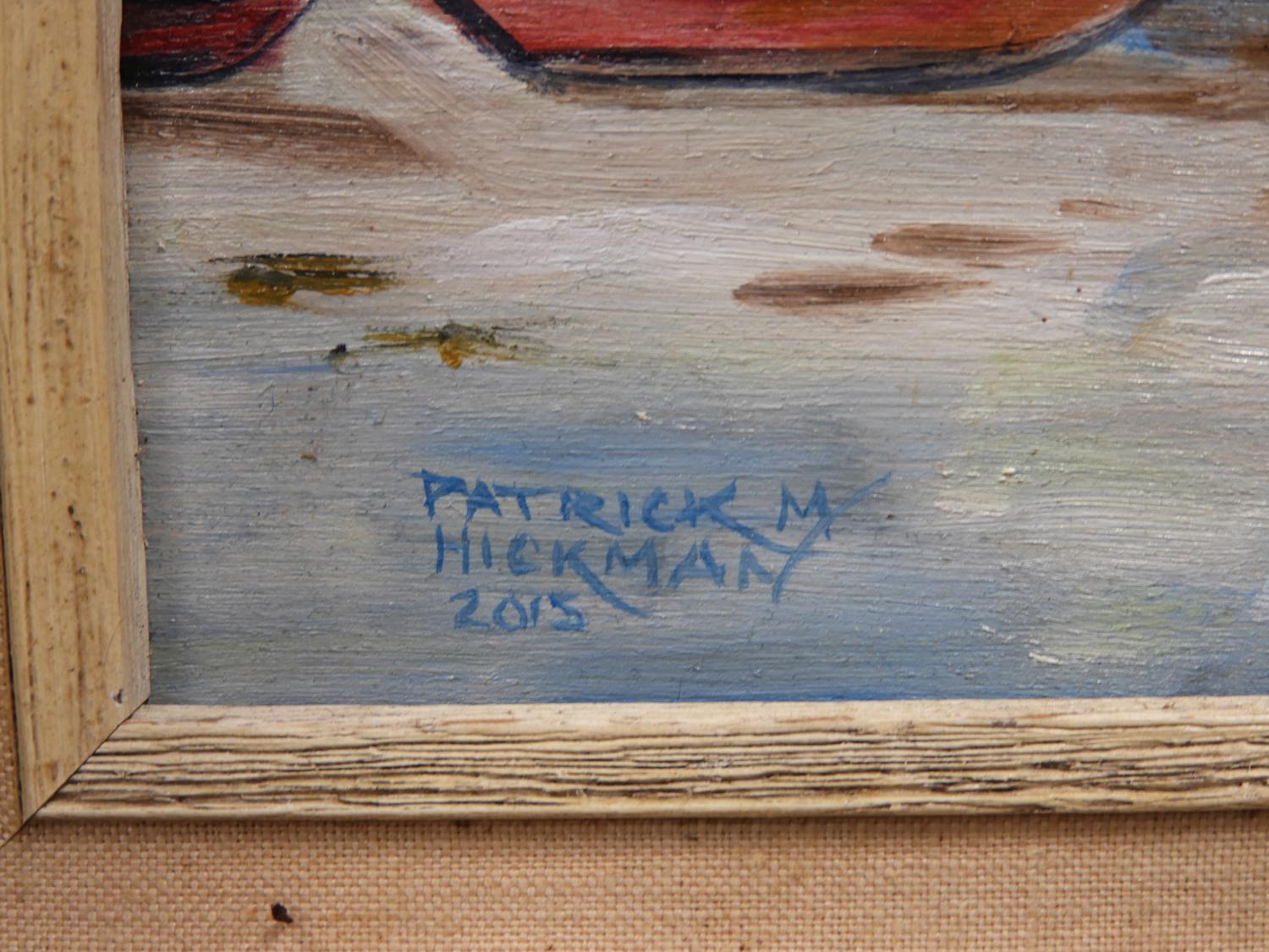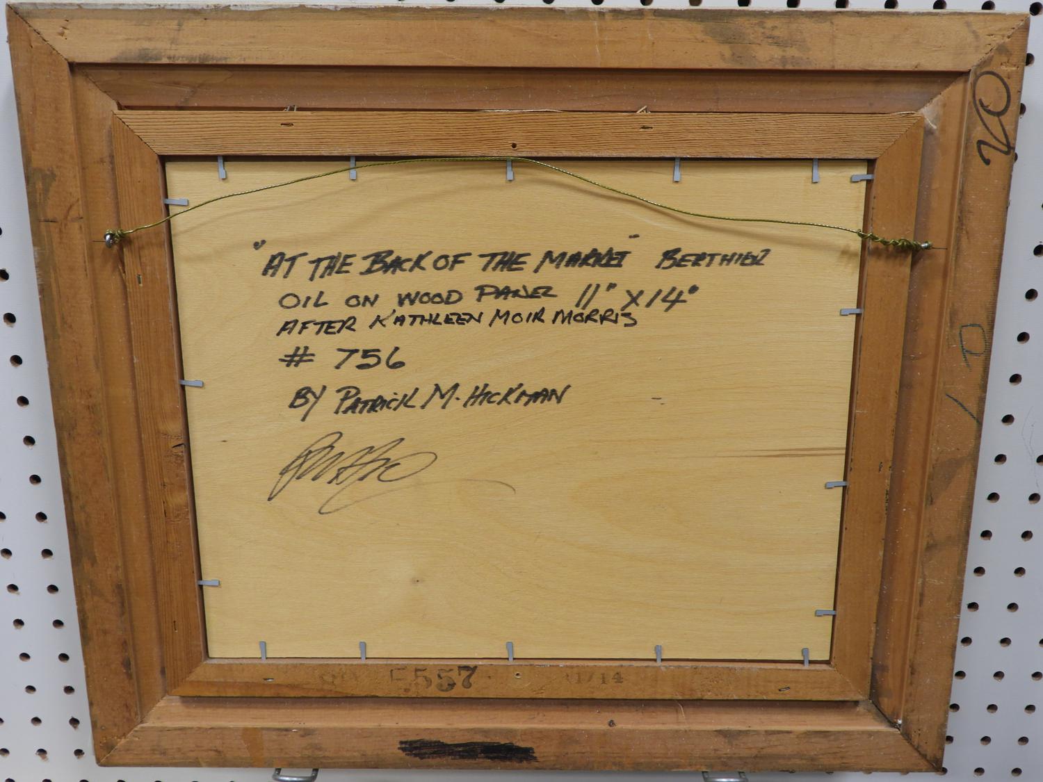 patrick hickman, d.2015, oil on board, 11" x 14", "after kathleen moir morris - at the back of the market"
