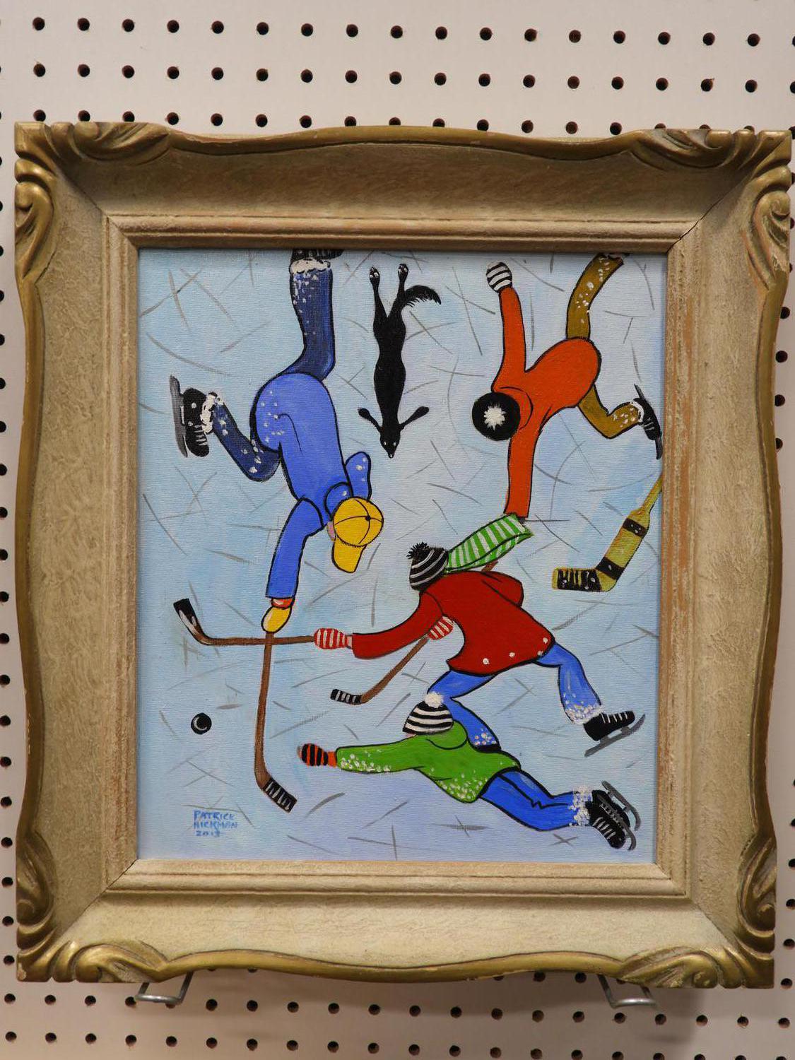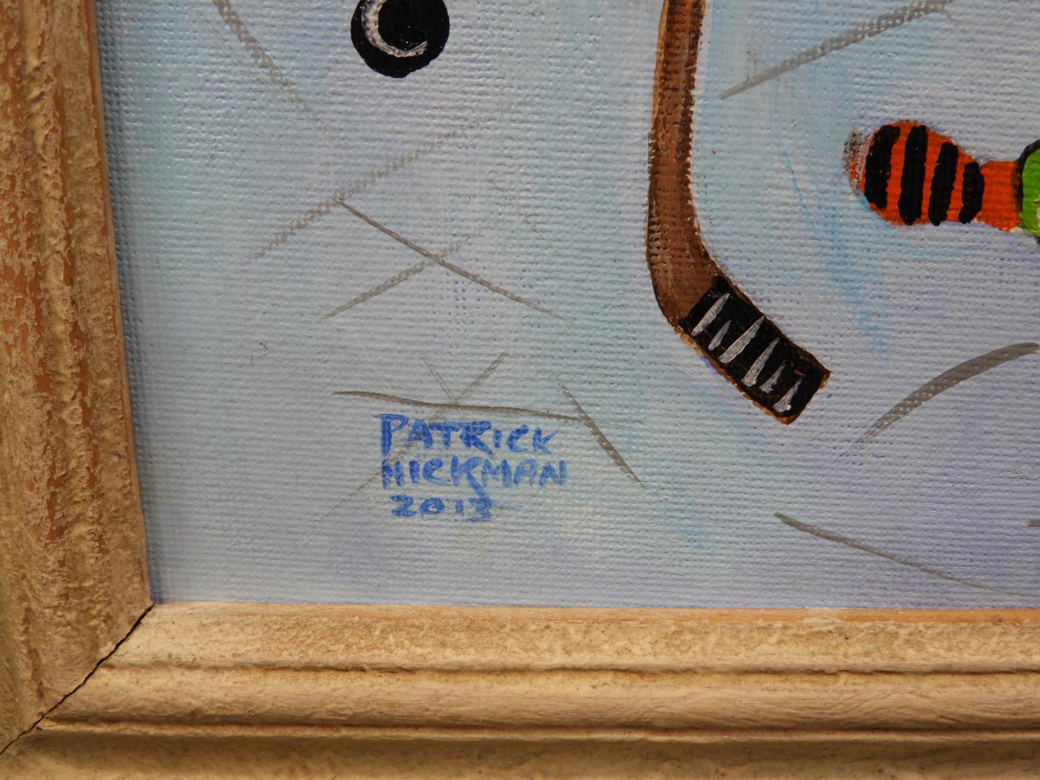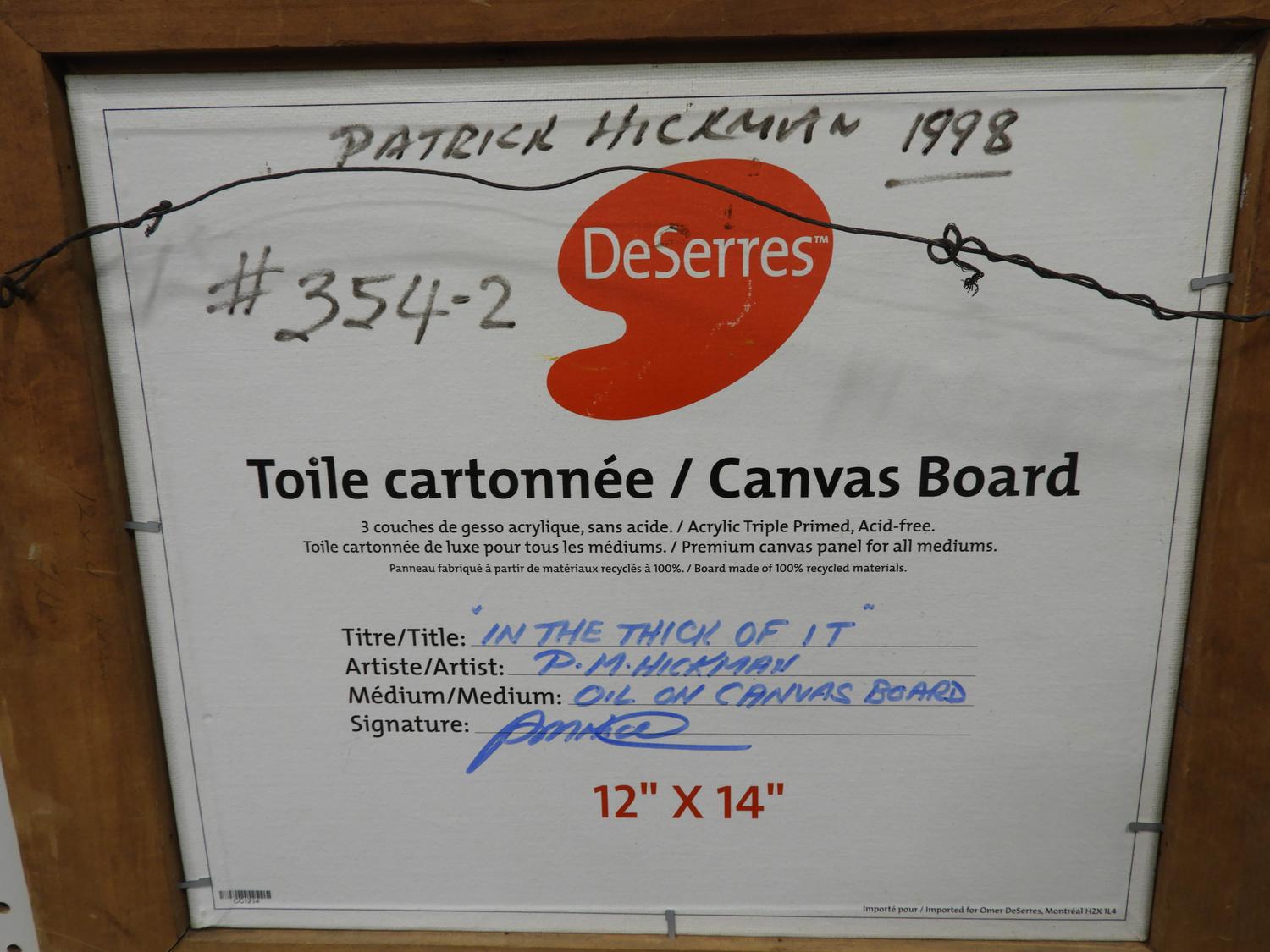patrick morris hickman (b.1946), d.2013, oil on board, 12" x 14", "in the thick of it"
