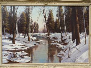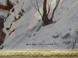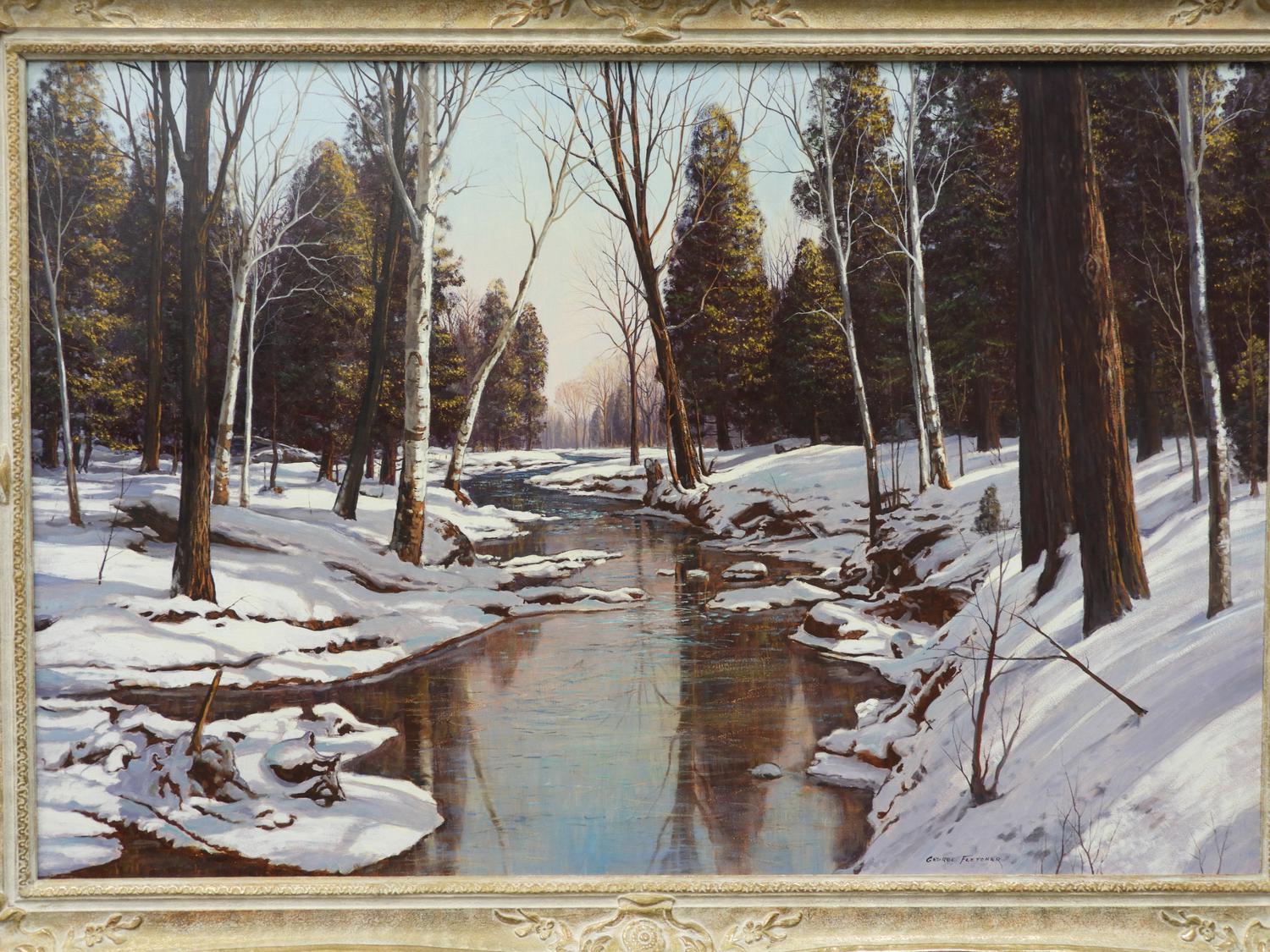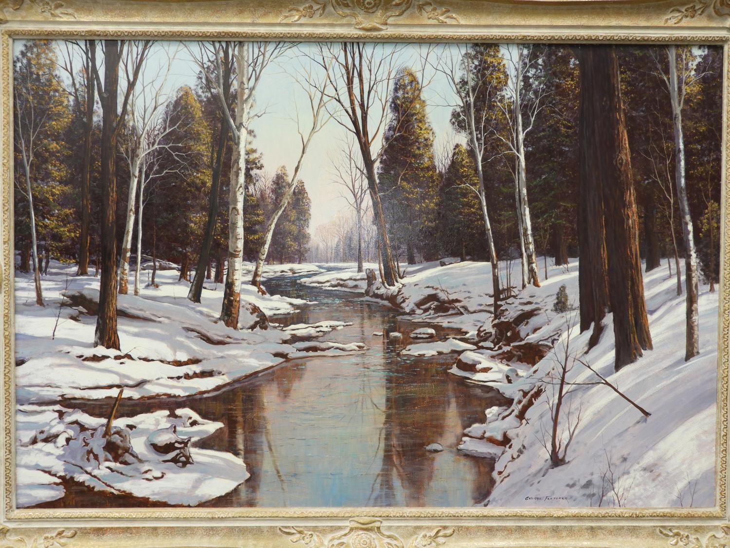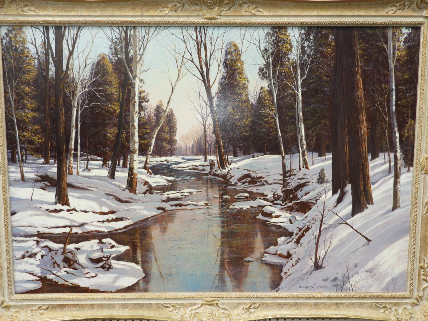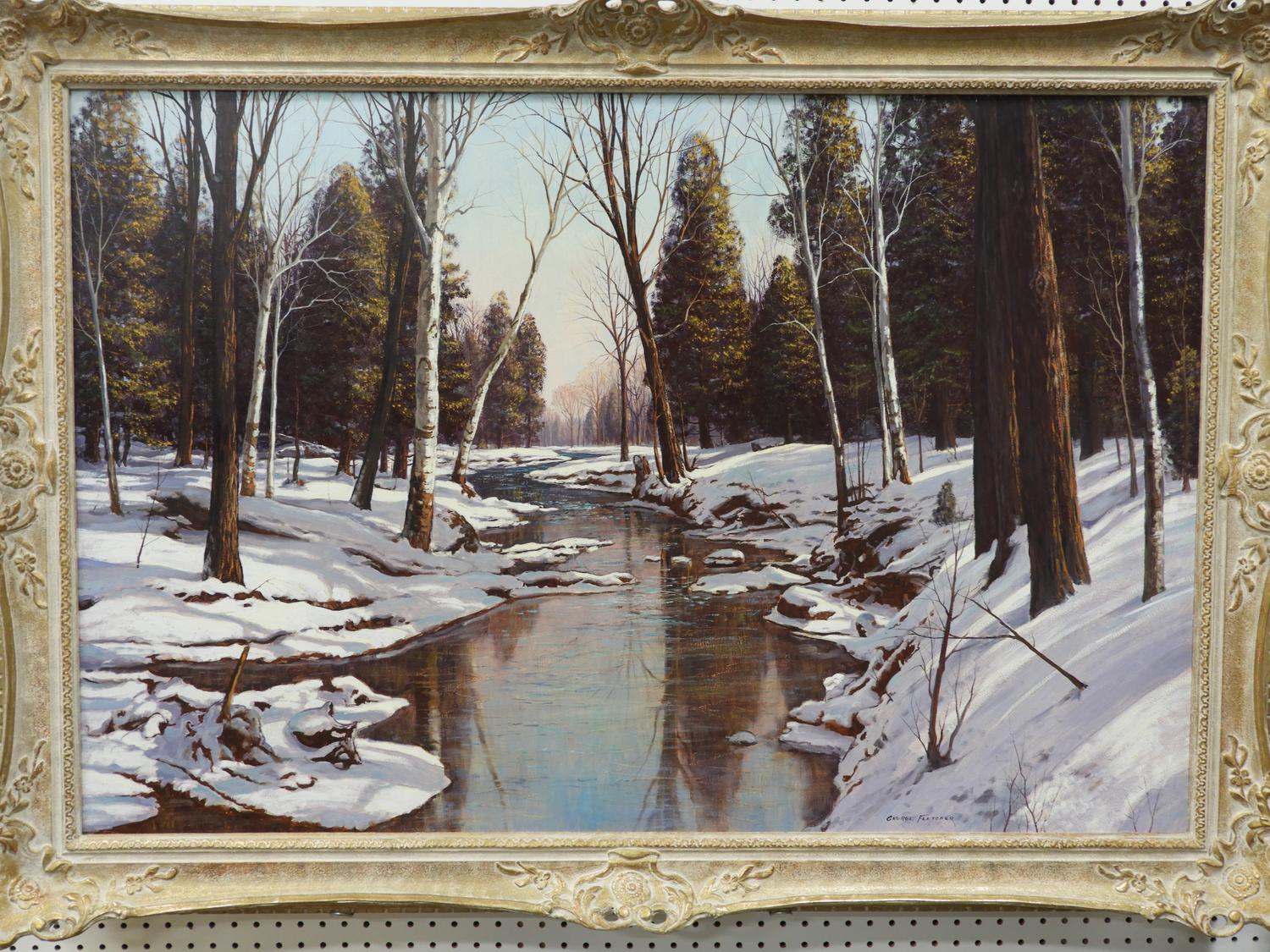 george fletcher (1914-1987), oil on masonite 32" x 48", "peaceful river"