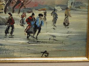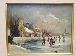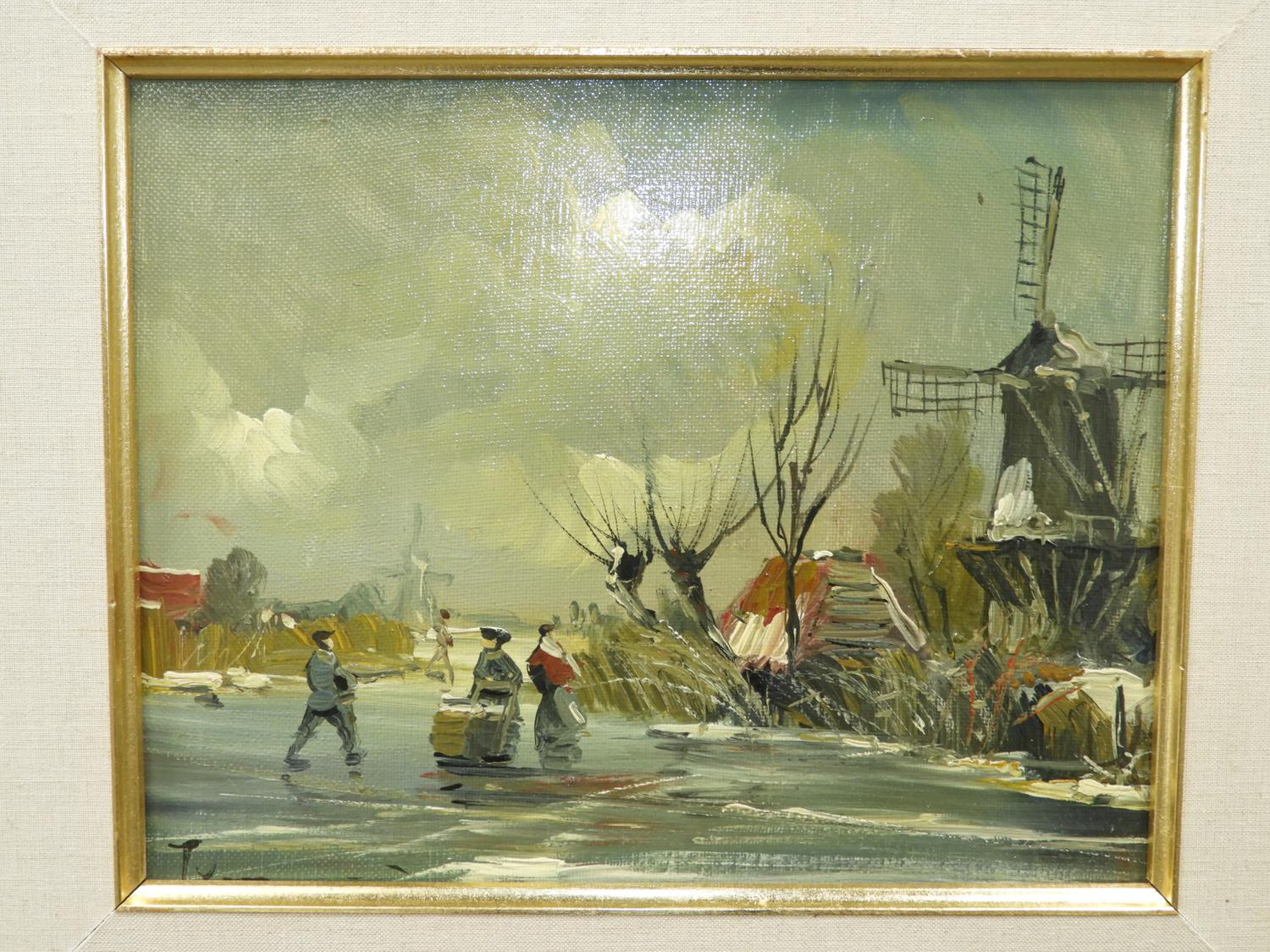 20th century dutch school, pair of oil on canvas, 8" x 10", "winter scenes"